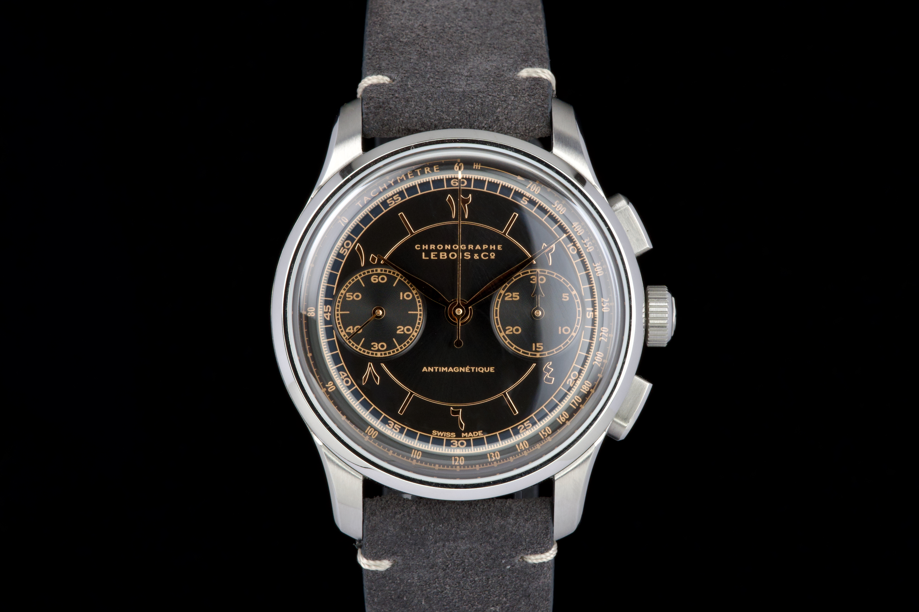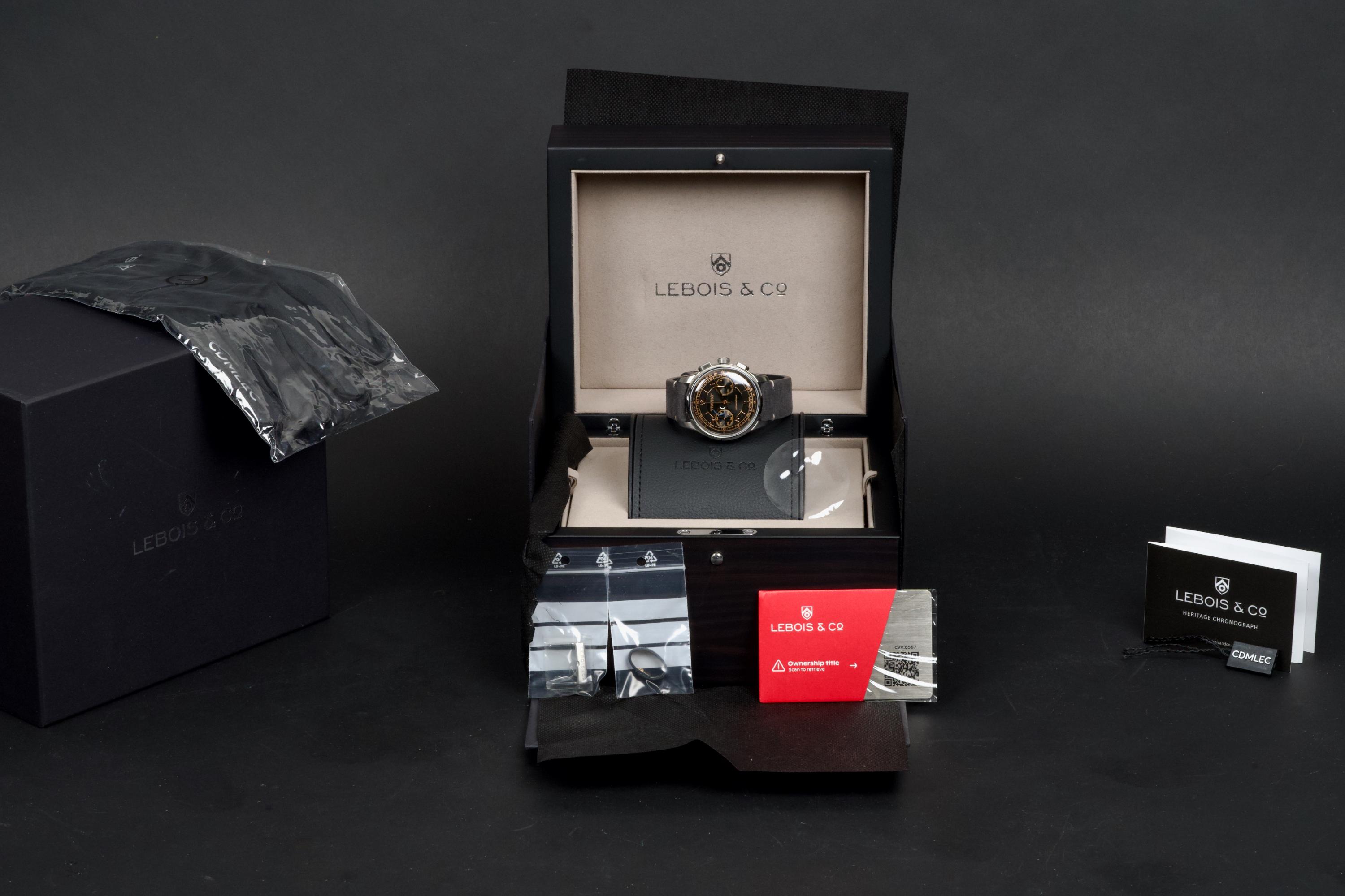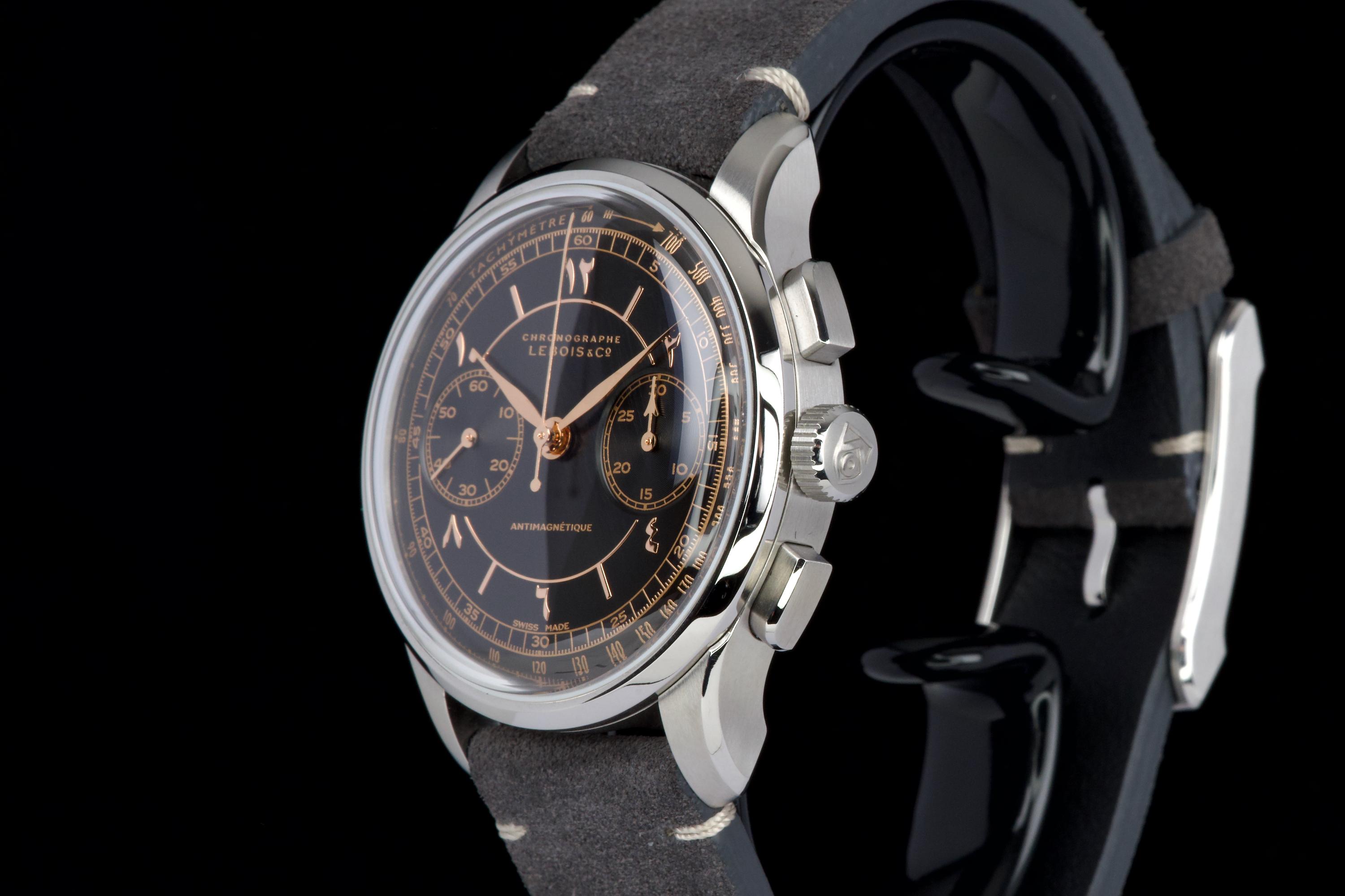 A very special limited edition of only 50 pieces worldwide, created exclusively for Time Keeper in Kuwait. This watch is presented in excellent, like-new condition and shows virtually no signs of wear. Housed in a 39 mm 316L stainless steel case measuring 13.9 mm thick (10.5 mm without crystal), with 47.35 mm lug-to-lug and 20 mm lug width, it features a screwed-down caseback and a double-domed sapphire crystal with internal AR coating. Water resistant to 5 ATM (50 m). Inside beats the hand-wound LC-450 column-wheel chronograph caliber, operating at 28,800 vph with a 60-hour power reserve and 23 jewels. This movement offers crisp chronograph engagement and finishing worthy of a modern heritage piece. Complete with its original box, papers, and accessories. A rare opportunity to acquire one of just 50 examples of this Kuwait-exclusive chronograph — a true collector’s piece combining vintage-inspired design, robust specifications, and a beautiful manually-wound movement.