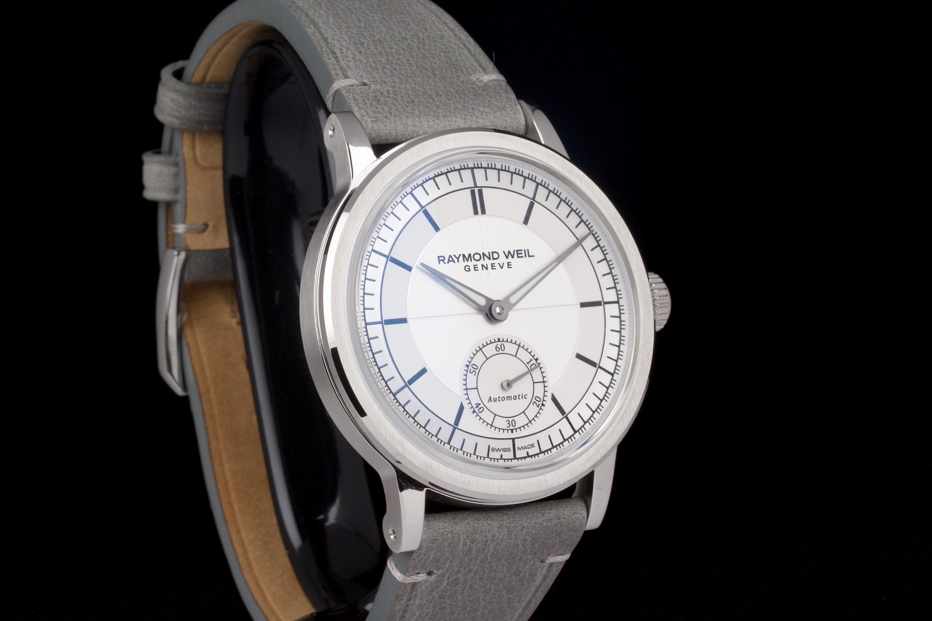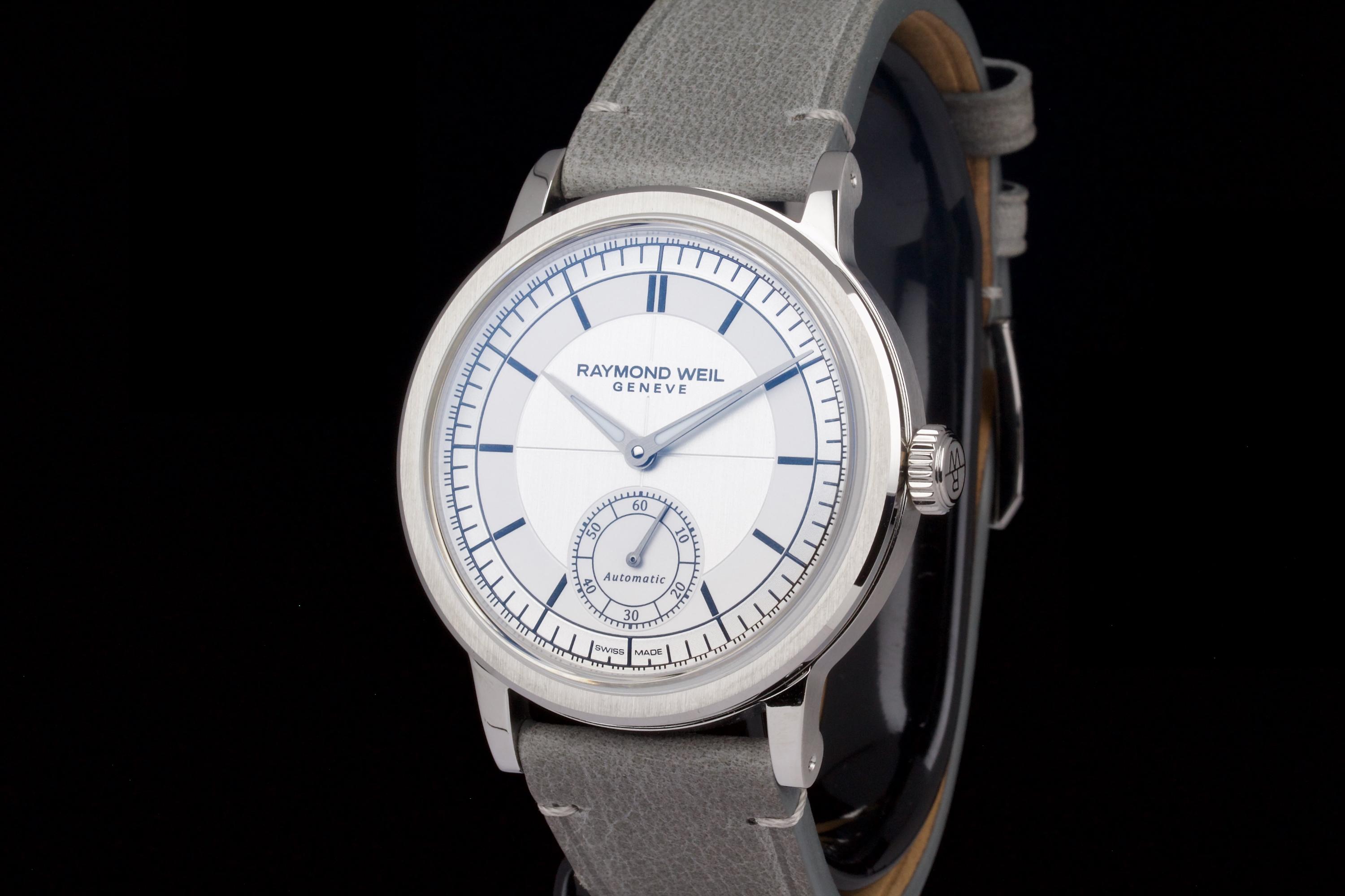 Raymond Weil Millesime Small Seconds, Full Set 2025. This example is presented in like-new condition and shows virtually no signs of wear. Featuring a clean and refined dial layout with small seconds at 6 o’clock, the Millesime line is Raymond Weil’s contemporary take on classic watchmaking, offering vintage-inspired charm with modern reliability. Complete with its original box, warranty card and accessories. A perfect choice for those seeking a versatile, elegant, and near-new timepiece at exceptional value.