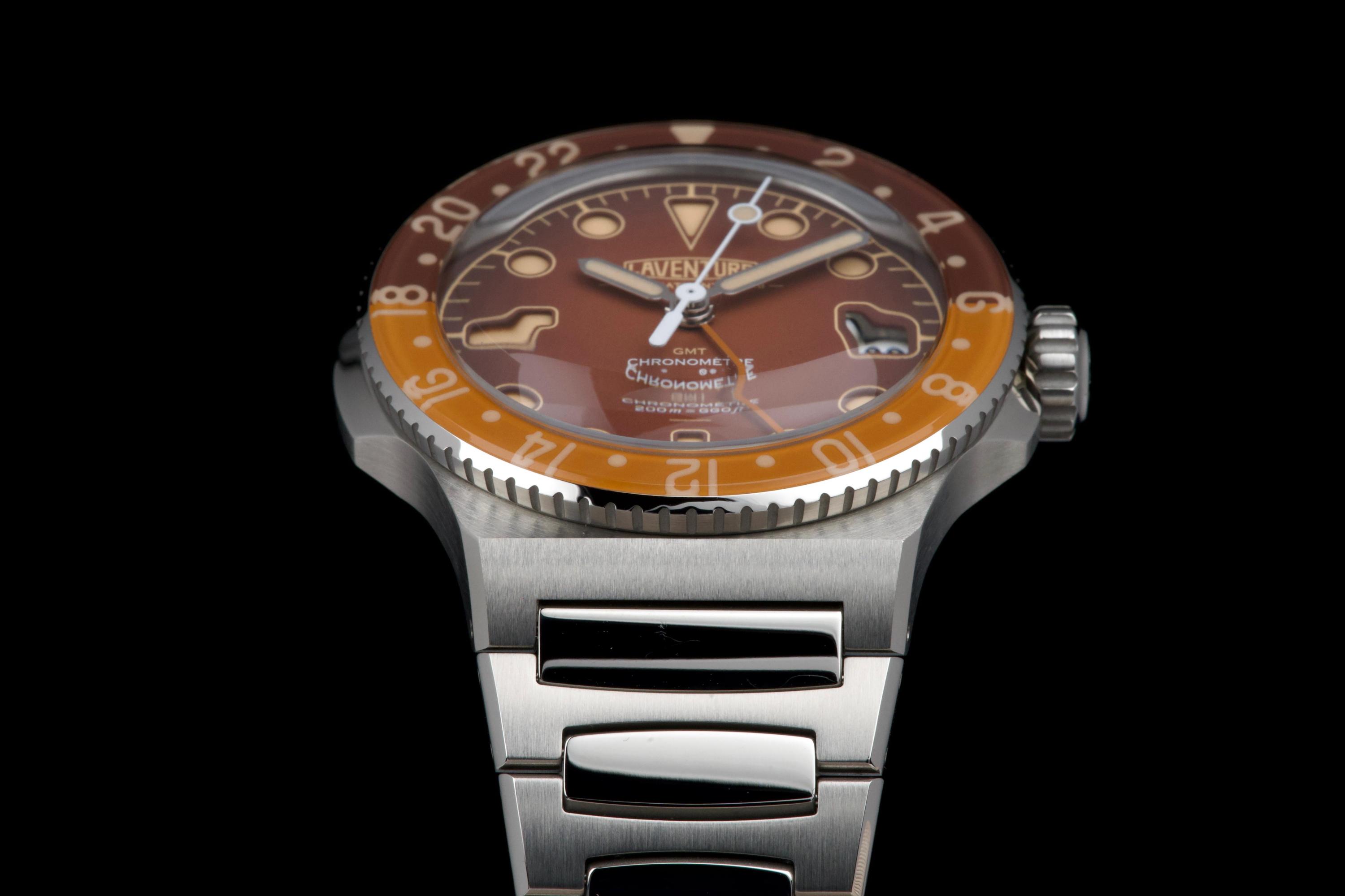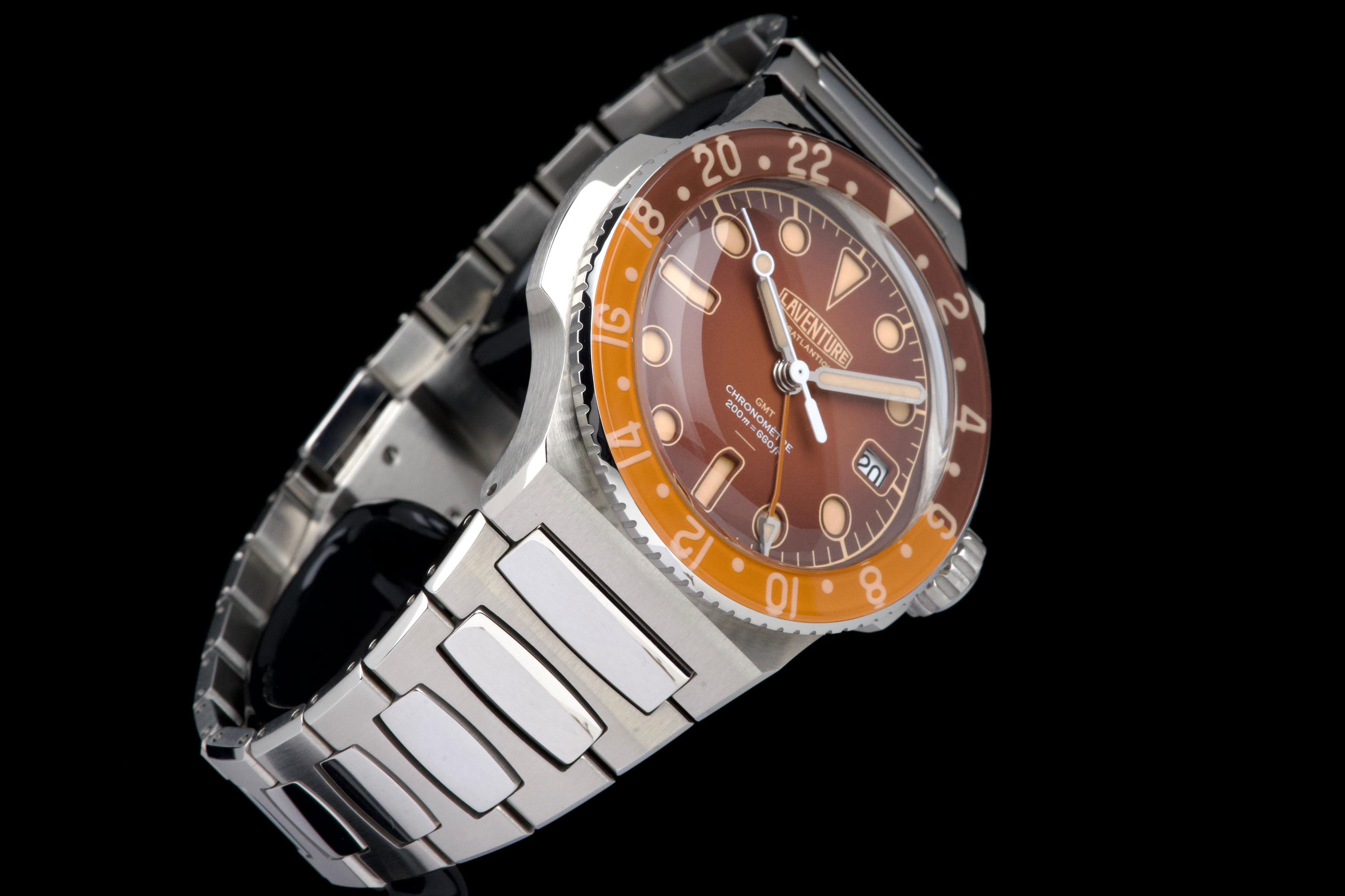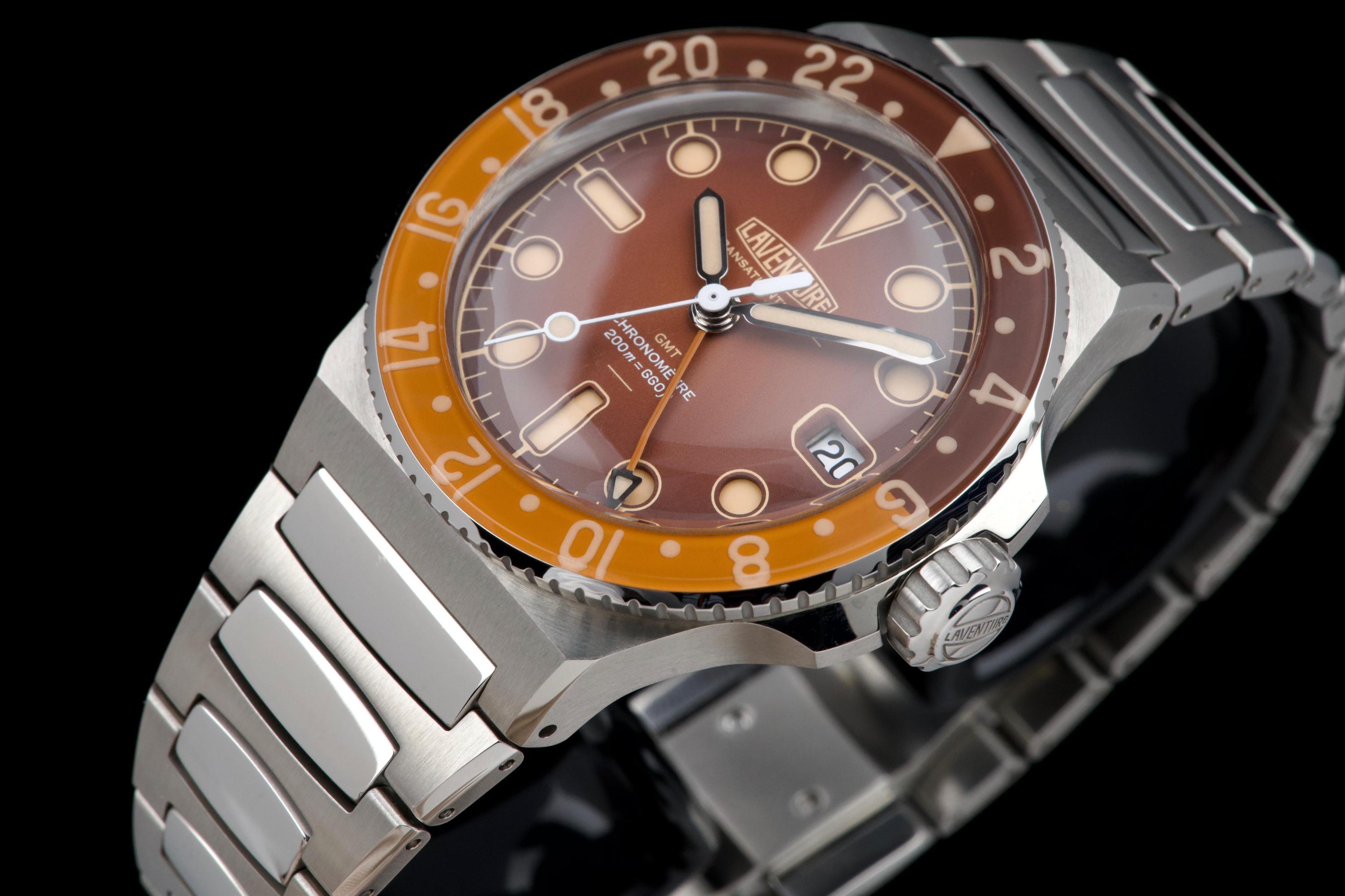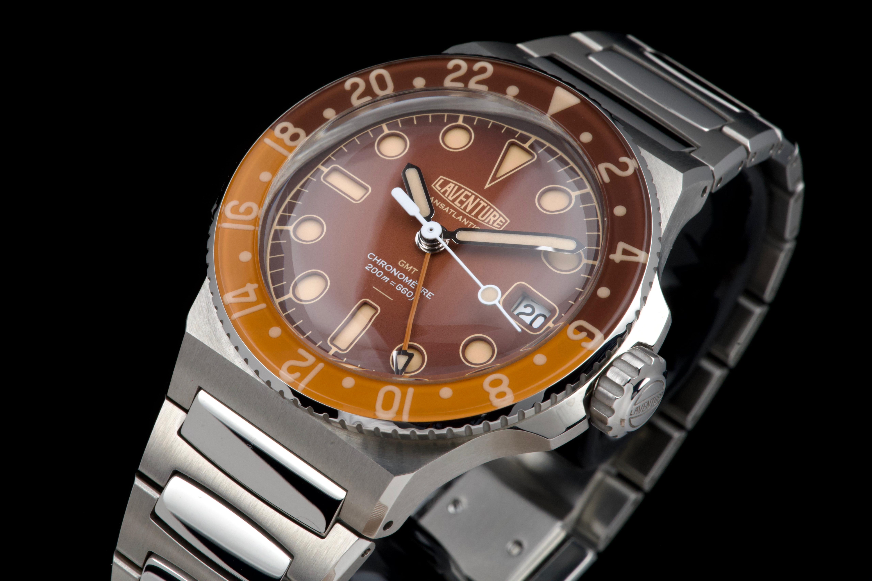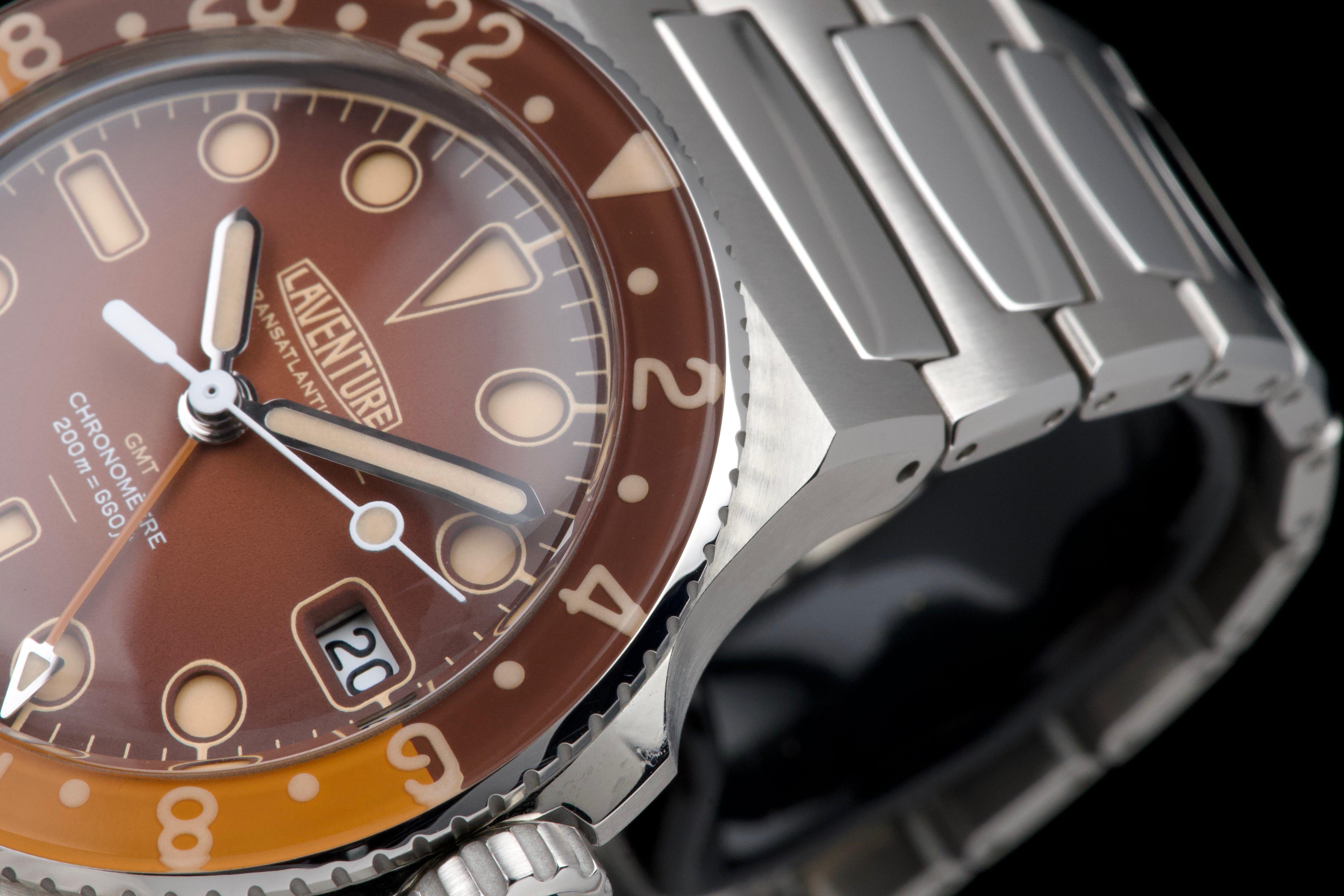 The present Laventure Transatlantique II GMT in brown, dating to 2024, is offered here as a complete full set and is preserved in near-new condition. Measuring 39.80 mm in diameter, the watch combines compact, well-balanced proportions with a distinctly utilitarian and adventurous aesthetic, true to Laventure’s design philosophy. The stainless-steel case presents flawlessly, showing no visible signs of wear. The brown dial configuration adds warmth and depth, reinforcing the model’s vintage-inspired character while remaining highly legible. The watch is fitted with a plexiglass crystal, chosen deliberately to evoke the spirit of mid-century tool watches and to enhance the overall visual softness and charm of the piece. Powering the watch is an automatic Sellita movement, offering reliable GMT functionality for tracking a second time zone, making the Transatlantique II both practical and travel-ready. The watch is delivered as a full set from 2024 and remains in essentially new condition. Modern, thoughtfully designed, and increasingly sought after, this Laventure Transatlantique II GMT represents an excellent opportunity to acquire a contemporary independent watch in outstanding, collector-grade condition.