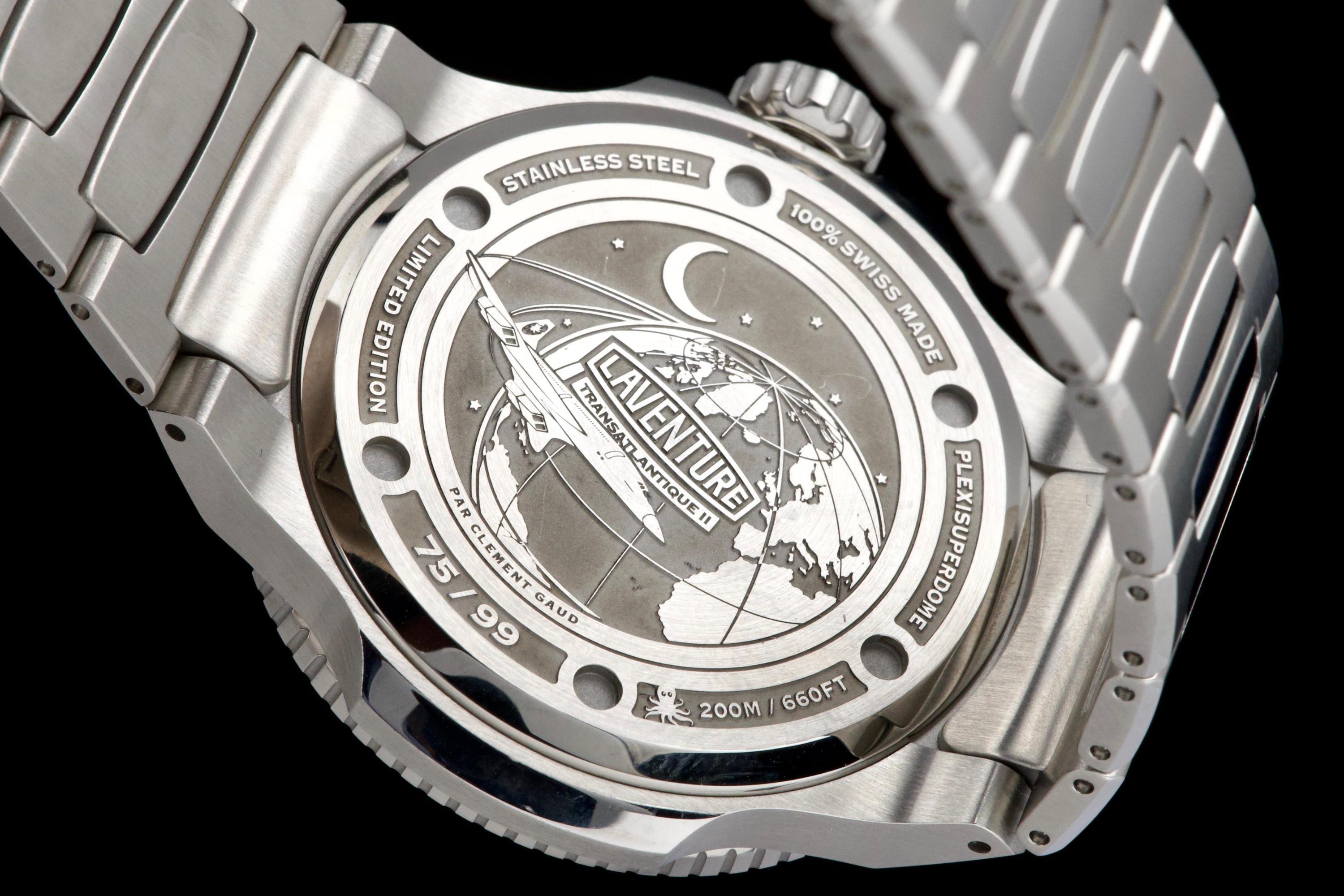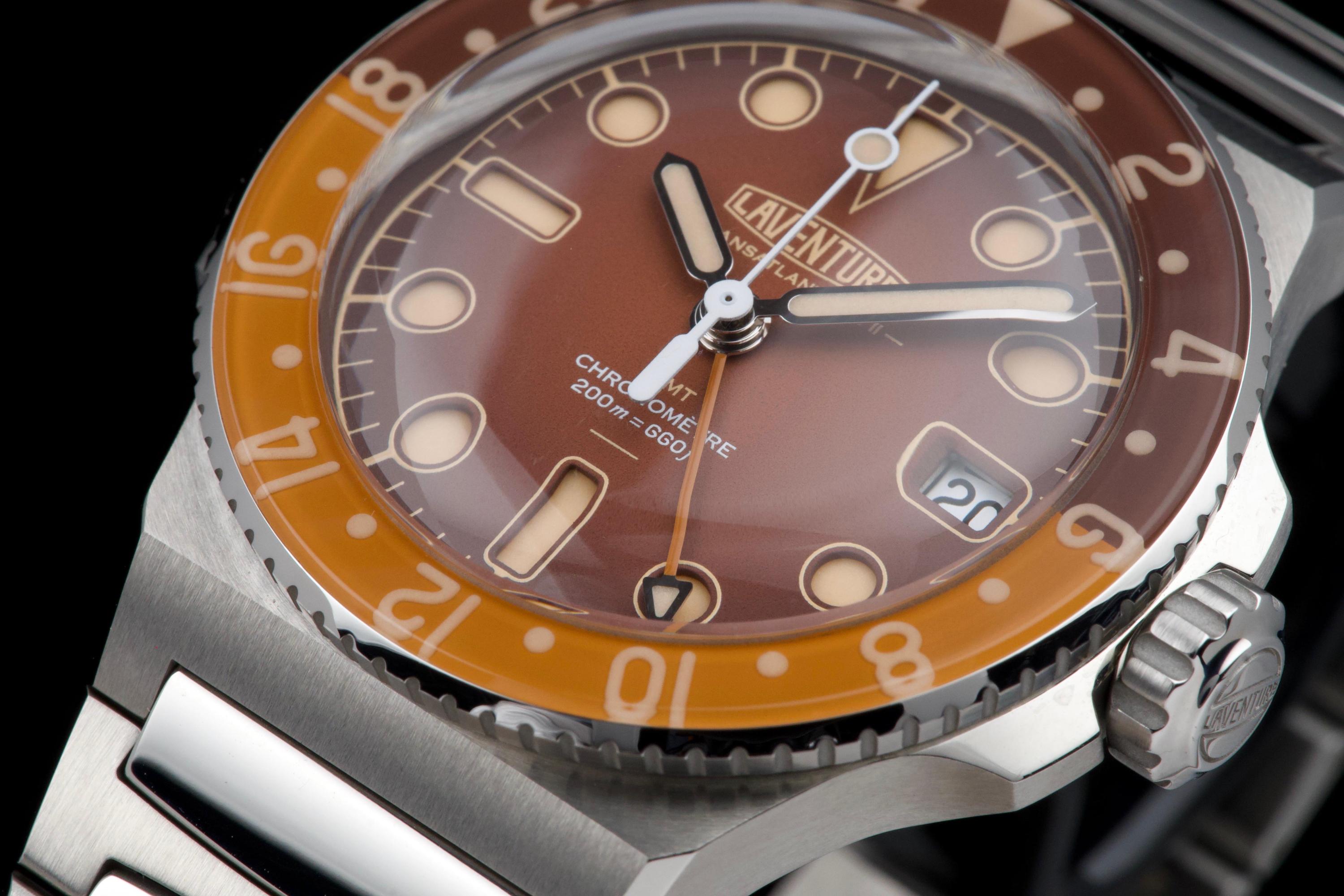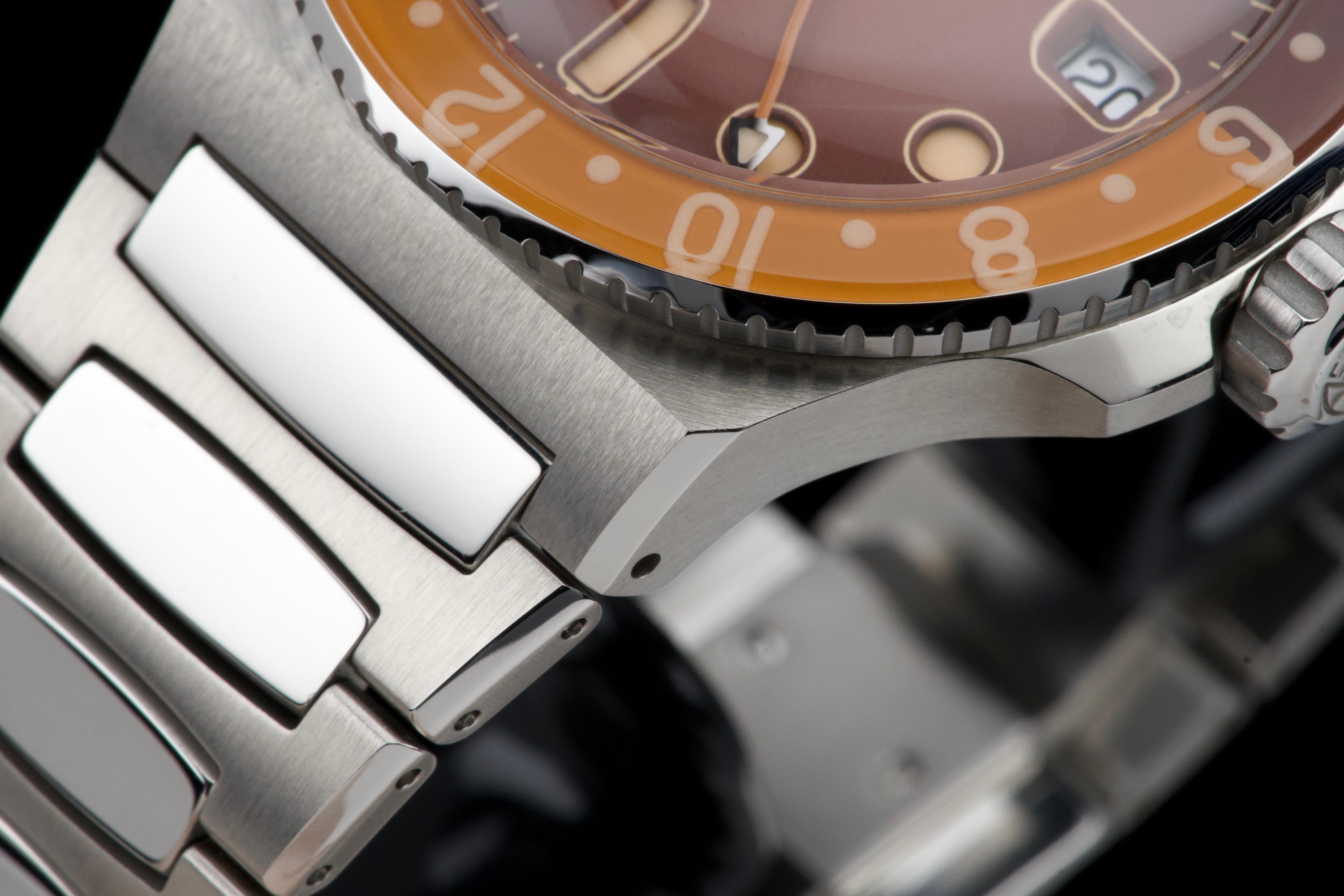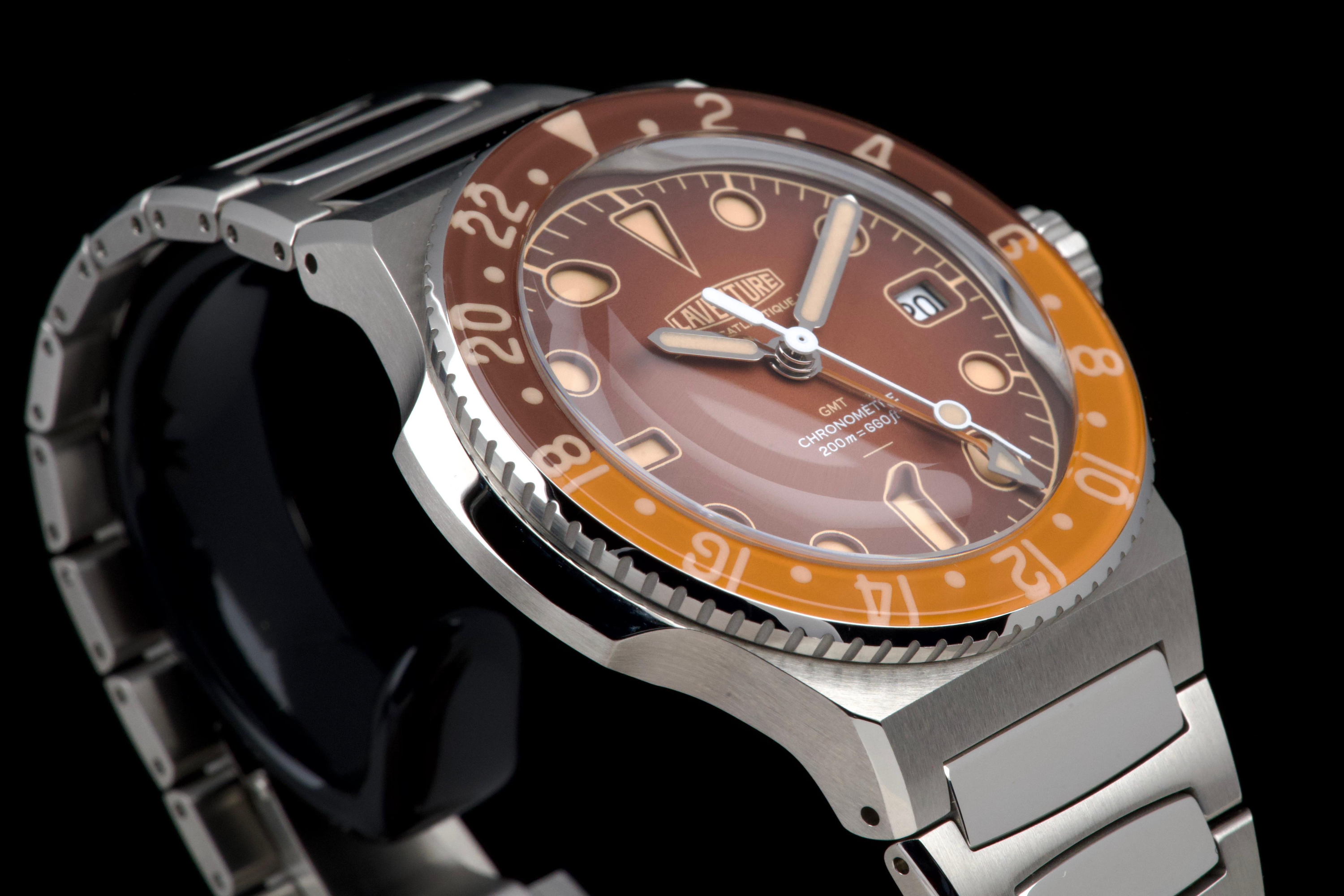 The present Laventure Transatlantique II GMT in brown, dating to 2024, is offered here as a complete full set and is preserved in near-new condition. Measuring 39.80 mm in diameter, the watch combines compact, well-balanced proportions with a distinctly utilitarian and adventurous aesthetic, true to Laventure’s design philosophy. The stainless-steel case presents flawlessly, showing no visible signs of wear. The brown dial configuration adds warmth and depth, reinforcing the model’s vintage-inspired character while remaining highly legible. The watch is fitted with a plexiglass crystal, chosen deliberately to evoke the spirit of mid-century tool watches and to enhance the overall visual softness and charm of the piece. Powering the watch is an automatic Sellita movement, offering reliable GMT functionality for tracking a second time zone, making the Transatlantique II both practical and travel-ready. The watch is delivered as a full set from 2024 and remains in essentially new condition. Modern, thoughtfully designed, and increasingly sought after, this Laventure Transatlantique II GMT represents an excellent opportunity to acquire a contemporary independent watch in outstanding, collector-grade condition.