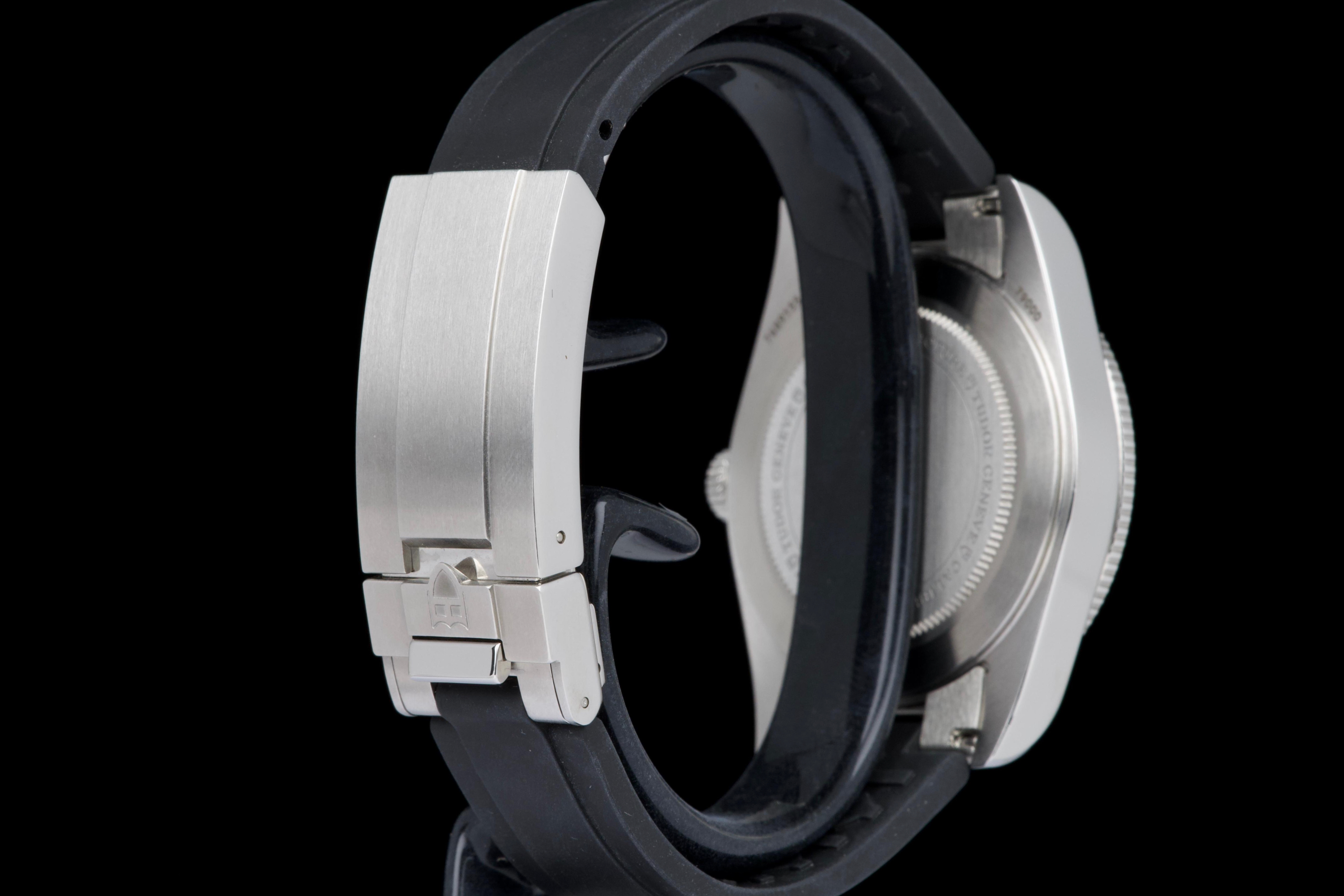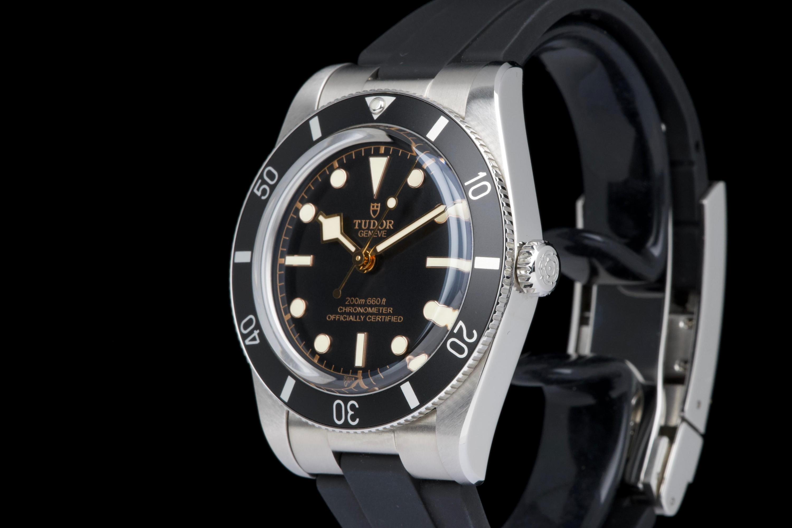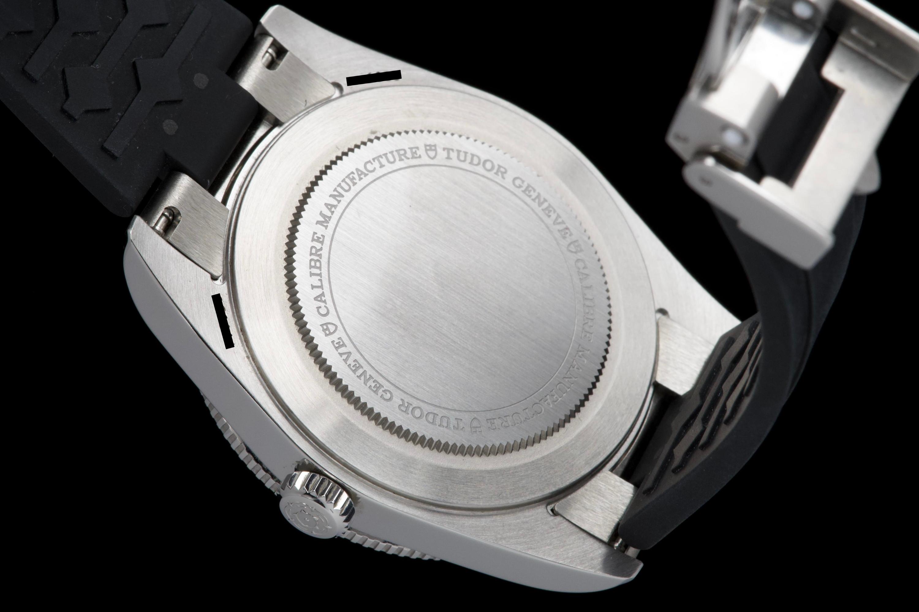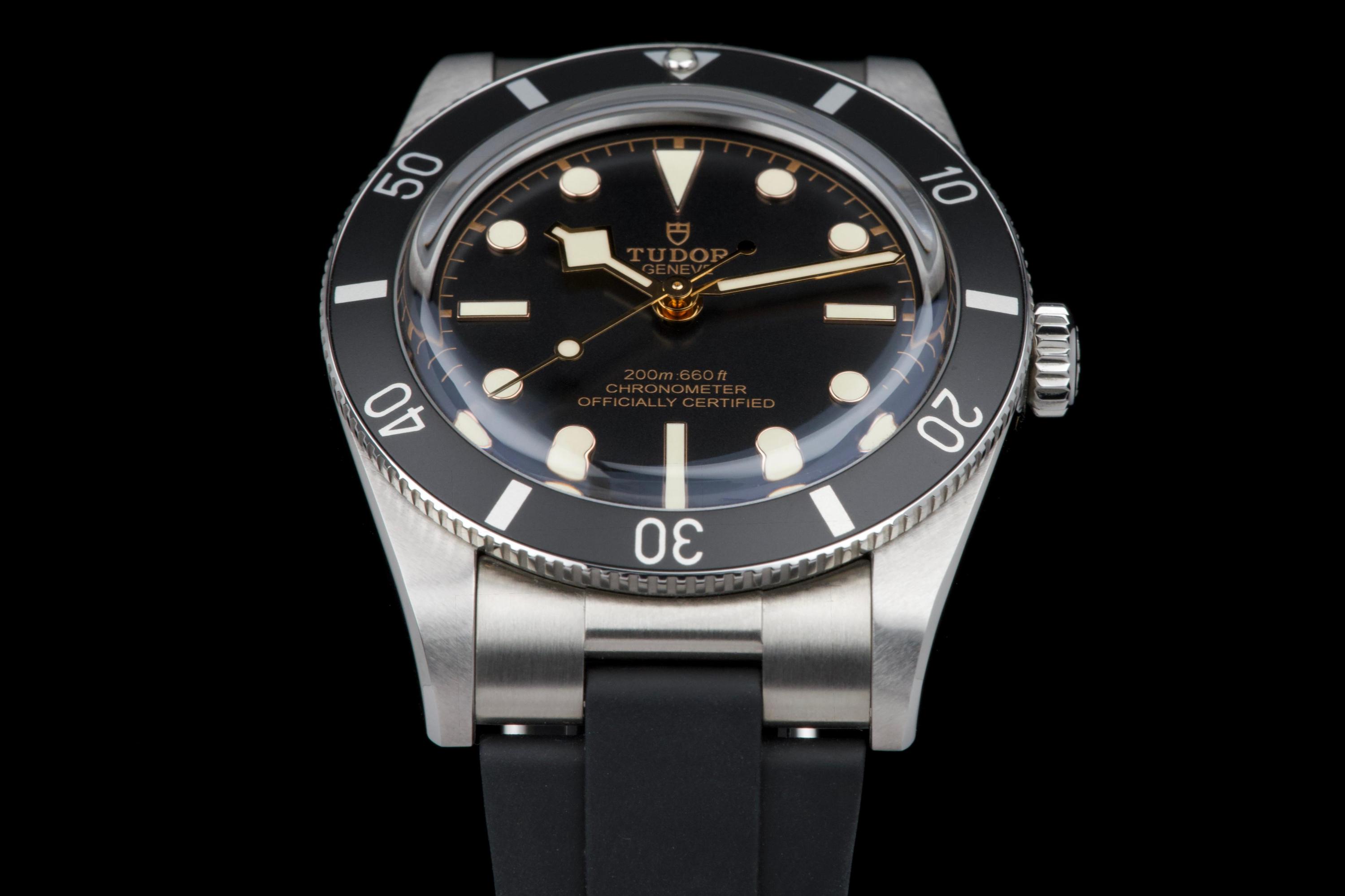 The present Tudor Black Bay 54, dating to 2023 and offered as a complete full set, is a superb modern interpretation of Tudor’s earliest dive watches, combining vintage-inspired proportions with contemporary performance. Measuring 37 mm in diameter, the Black Bay 54 pays direct homage to the original Tudor Submariner references of the 1950s while incorporating modern materials and technical reliability. This example is preserved in mint condition and appears to be unworn, retaining a virtually untouched overall presentation. The watch is fitted with its black rubber strap, providing a clean and versatile aesthetic well suited to everyday wear. The matte black dial and gilt accents offer excellent legibility and a warm, vintage-inspired character, while the unidirectional bezel completes the classic diver configuration. Powered by Tudor’s in-house automatic movement, the Black Bay 54 delivers robust performance and modern precision in a compact and highly wearable format. Delivered as a full set from 2023, this example represents an appealing opportunity to acquire a near-new piece from one of Tudor’s most celebrated contemporary collections.