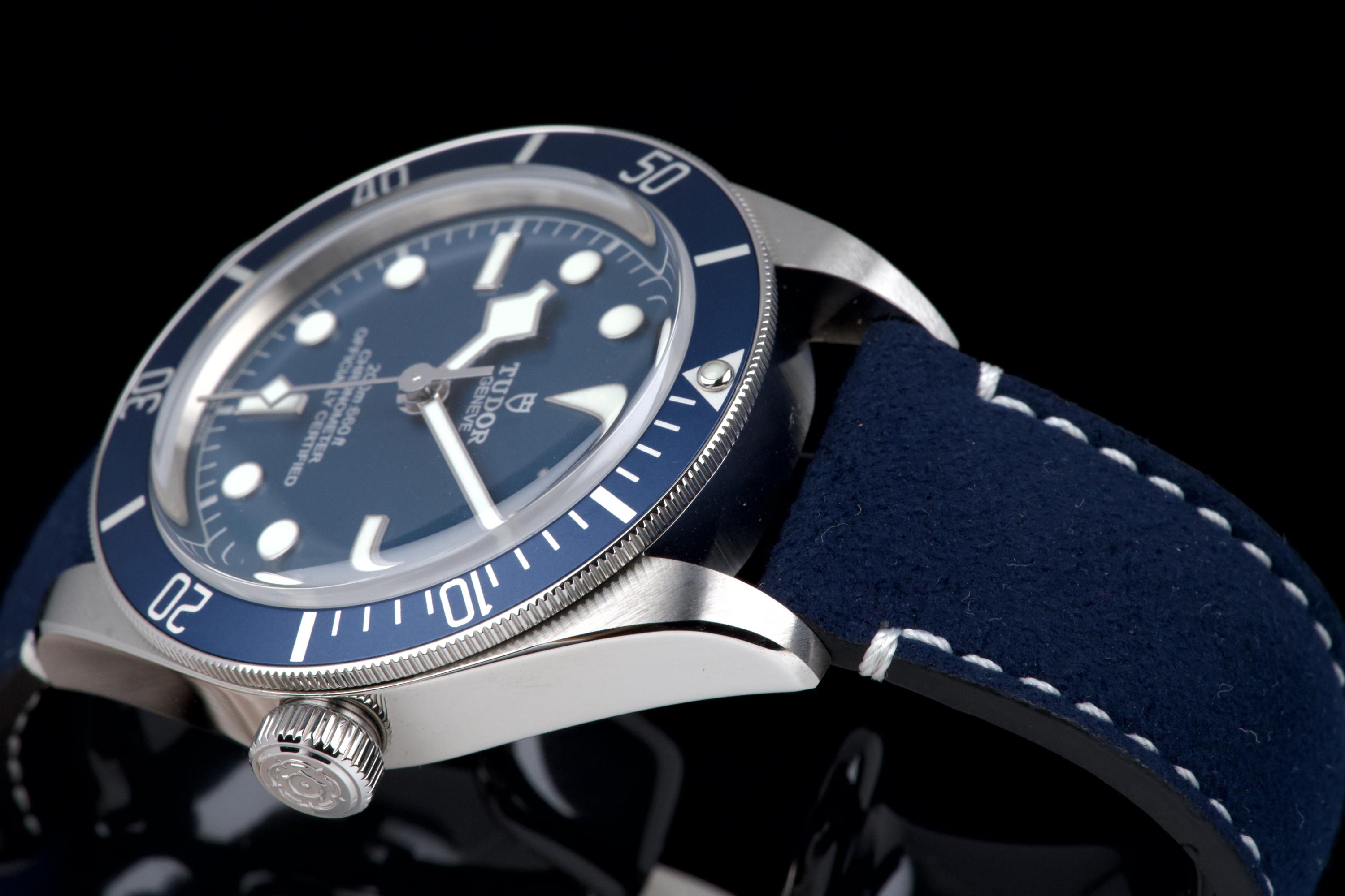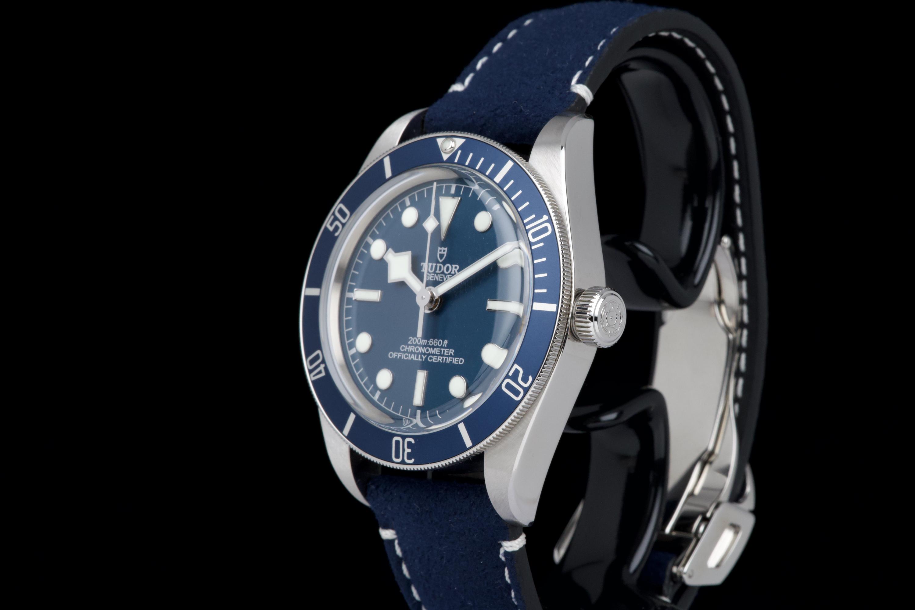 The Tudor Black Bay 58 Blue Full Set 2021 is a beautifully balanced modern dive watch that captures the charm of Tudor’s vintage Submariners while offering contemporary performance and reliability. Presented here in excellent overall condition, this example comes complete with its original box, papers, and accessories. The 39mm stainless steel case is paired with a rich navy blue dial and matching unidirectional bezel, both featuring crisp white luminous markers for superb legibility. Powered by Tudor’s in-house caliber MT5402, the watch offers COSC-certified precision, a robust 70-hour power reserve, and 200 meters of water resistance, making it as functional as it is stylish. This example is offered with both a blue suede strap and a matching blue NATO-style fabric strap, providing versatility for different occasions. Light, comfortable, and perfectly proportioned, the Black Bay 58 Blue is a modern classic that seamlessly blends heritage-inspired design with everyday wearability.