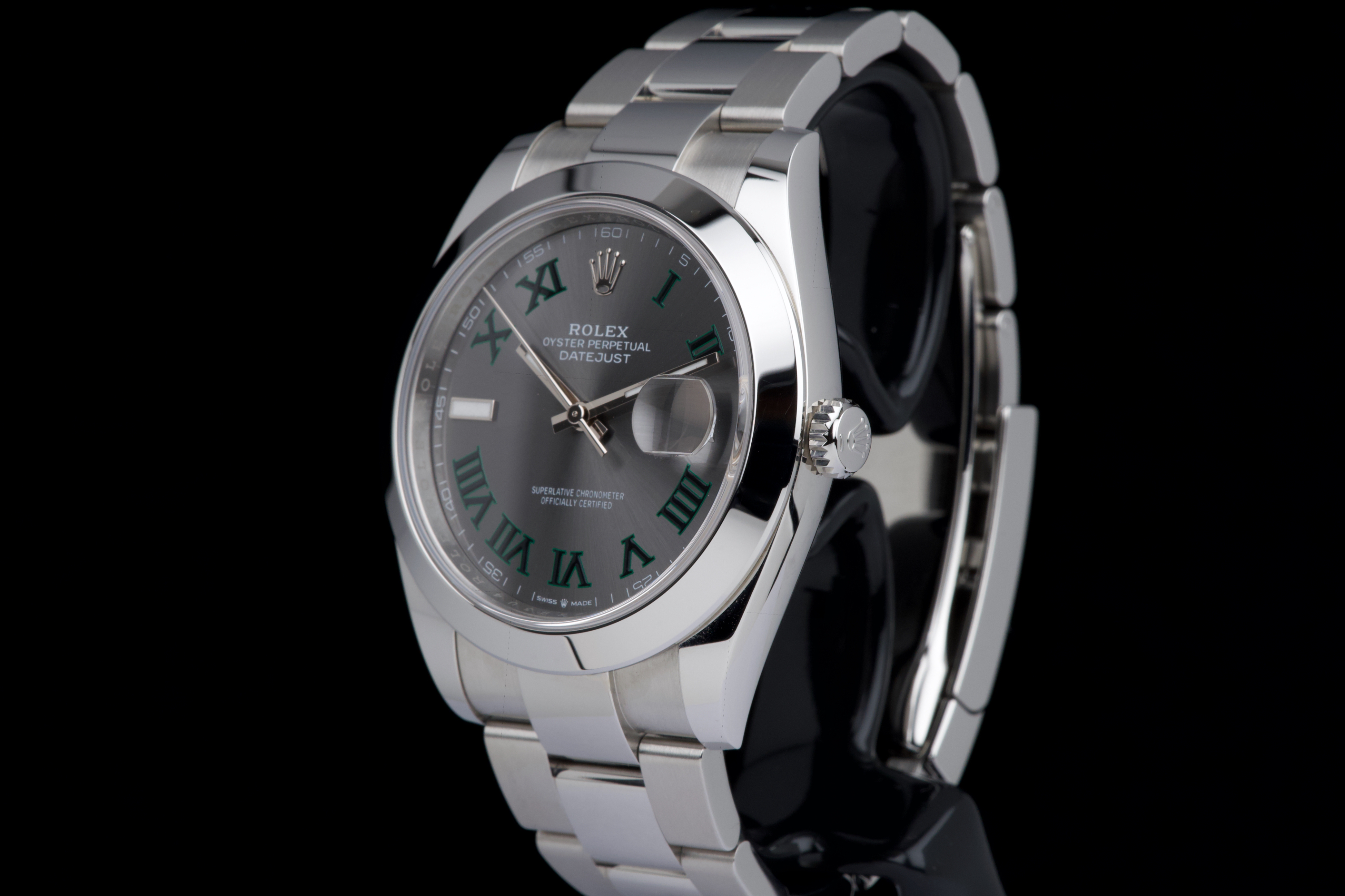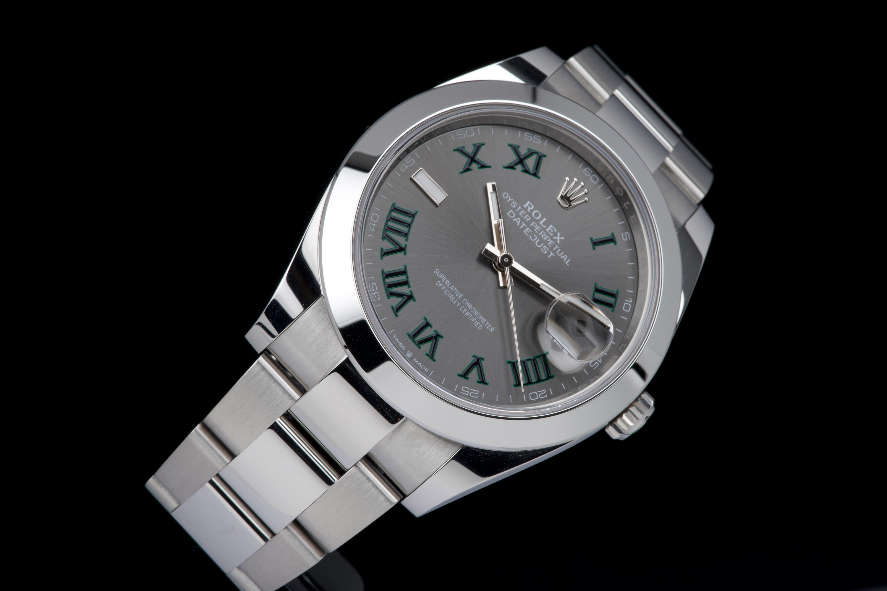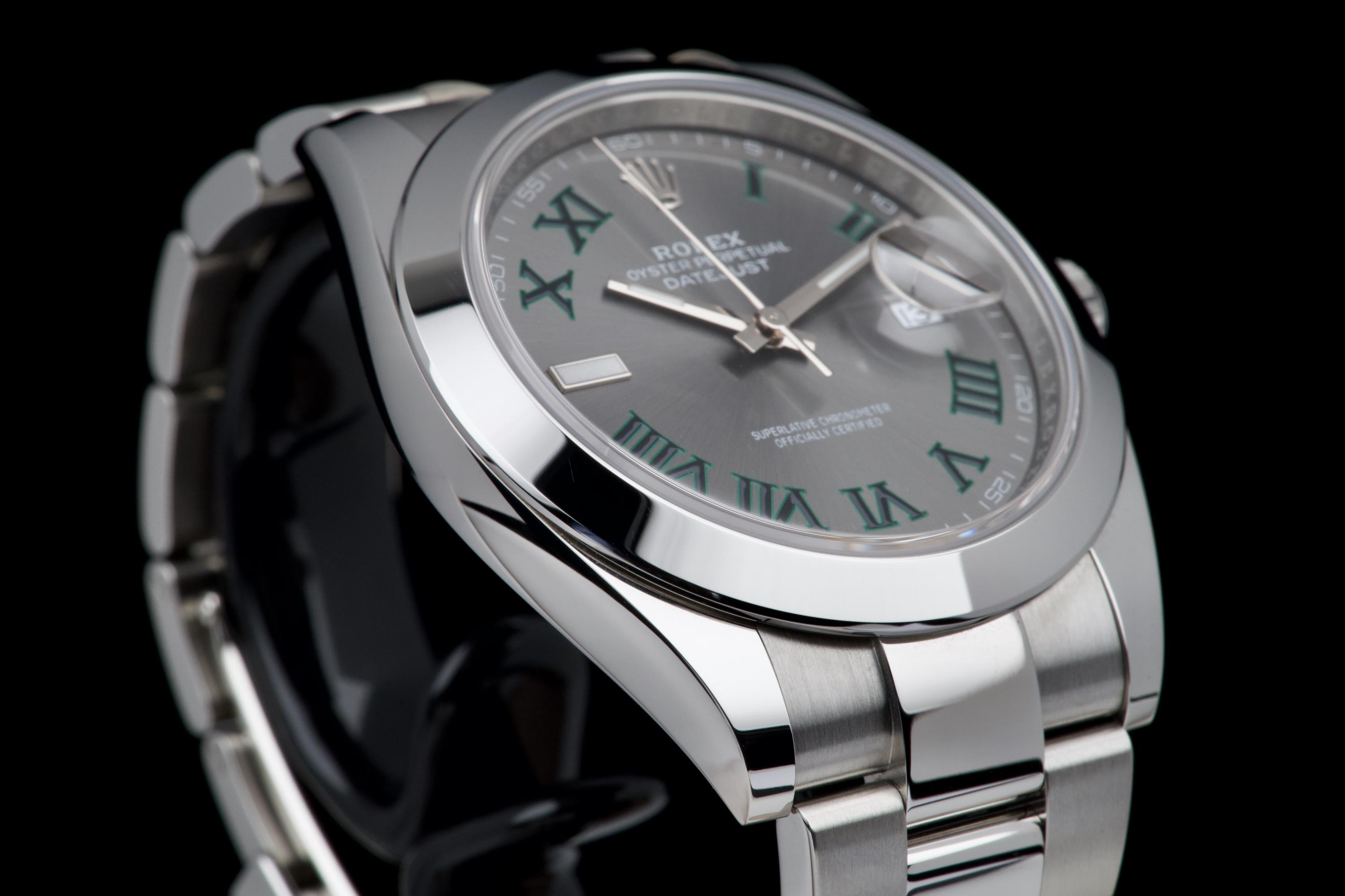 An unworn example of the latest Rolex Datejust 41 “Wimbledon,” featuring the distinctive slate grey dial with green Roman numerals and fitted on the Oyster bracelet. Crafted in stainless steel, this reference combines sporty elegance with one of Rolex’s most recognizable dial designs. Powered by the automatic Rolex caliber 3235 with 70-hour power reserve and Chronergy escapement, ensuring exceptional precision and reliability. Complete with its full 2025 set, including box, warranty card, booklets, and accessories. A brand-new and highly desirable example of the modern Datejust “Wimbledon” in unworn condition.