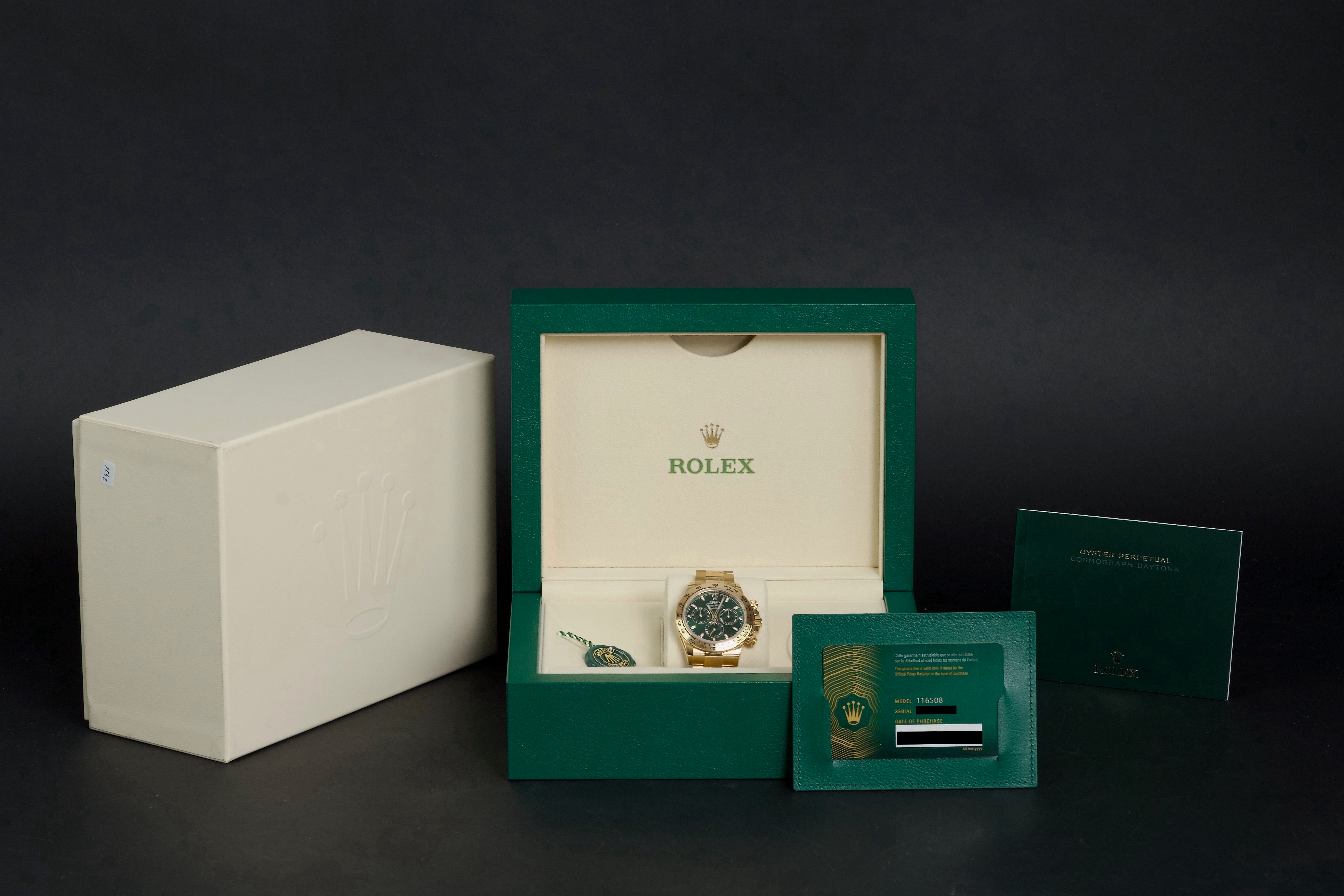 Rolex Daytona 116508 John Mayer Green Dial Full Set 2024 from the original owner, unpolished watch in near mint conditions (very little wear on the clasp)