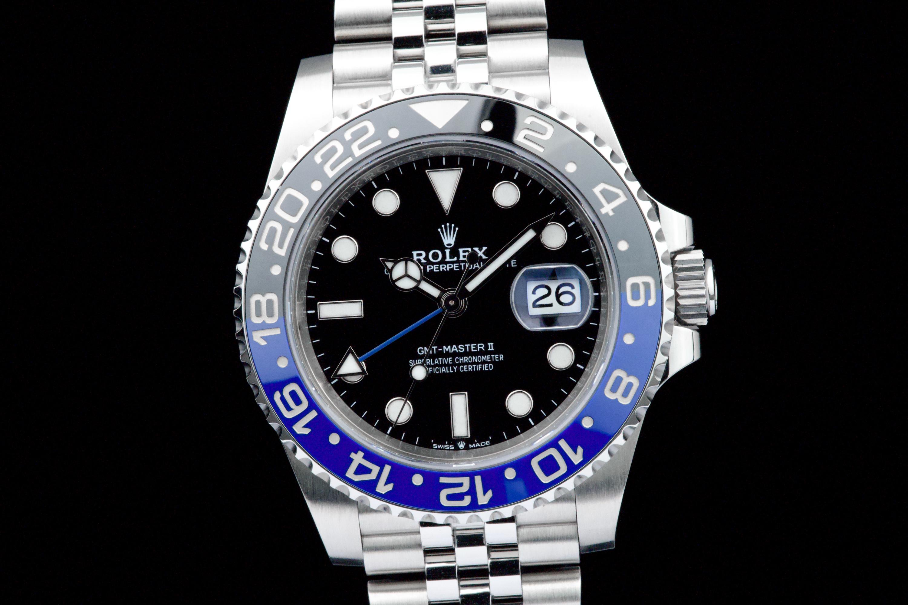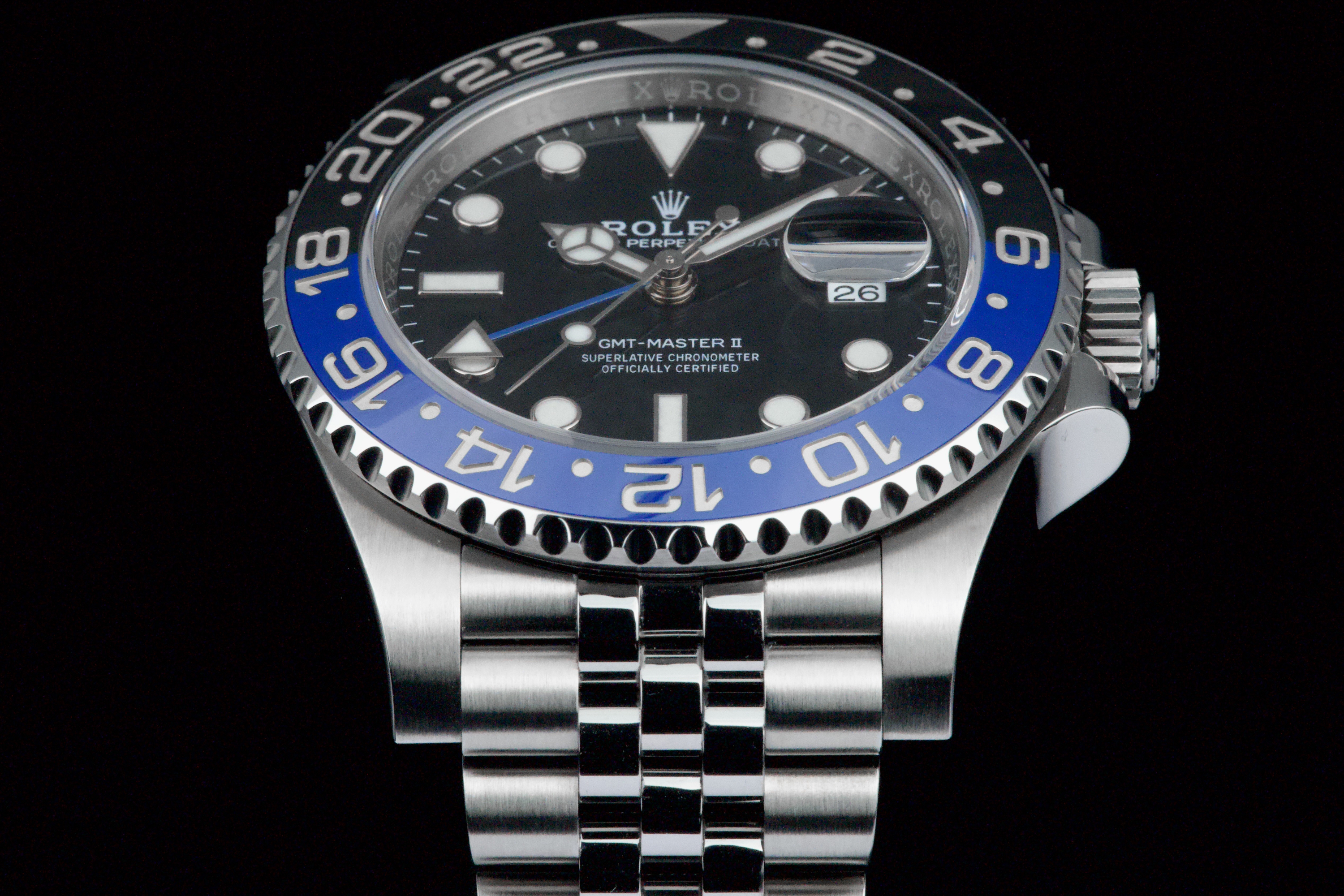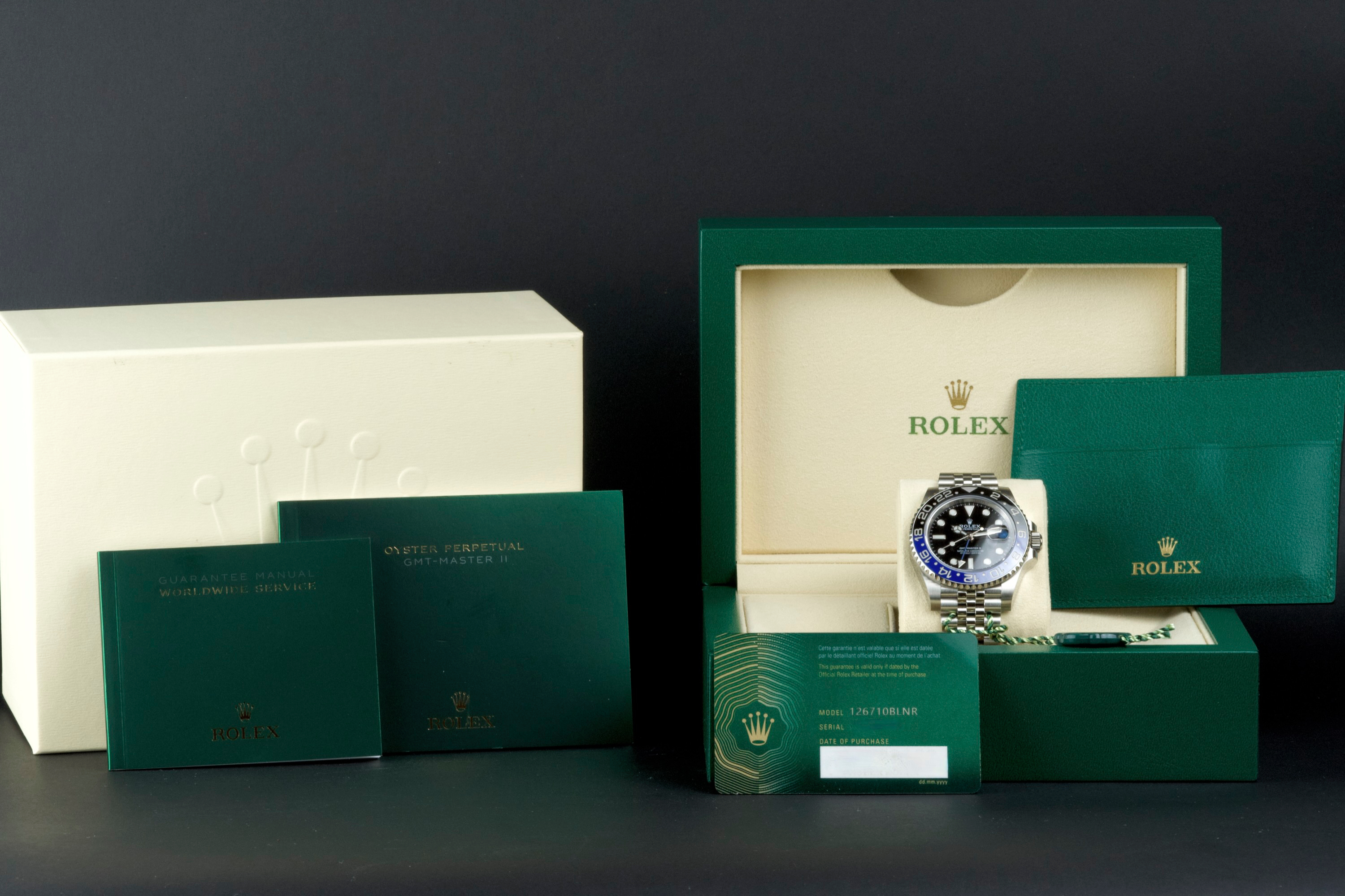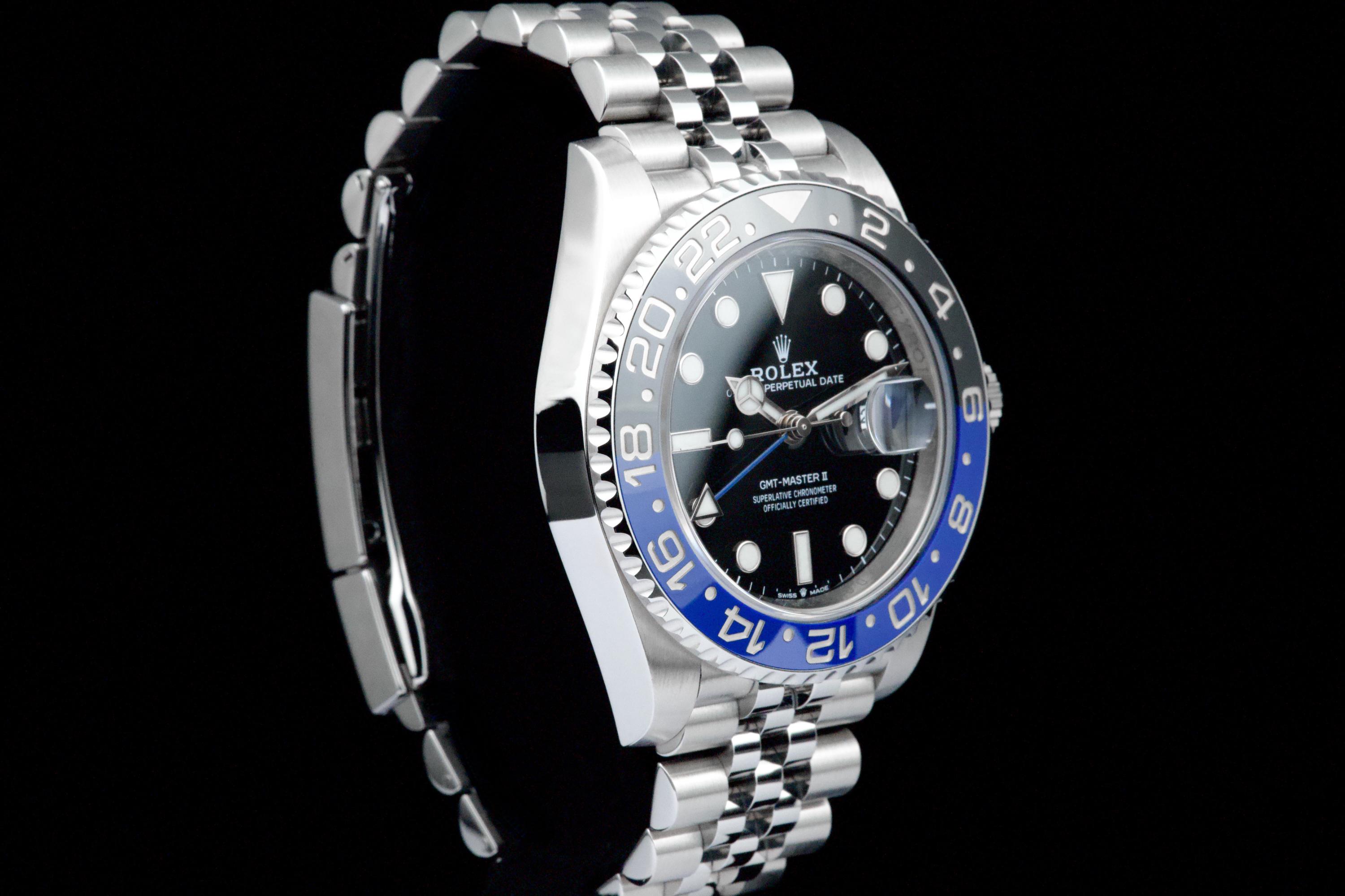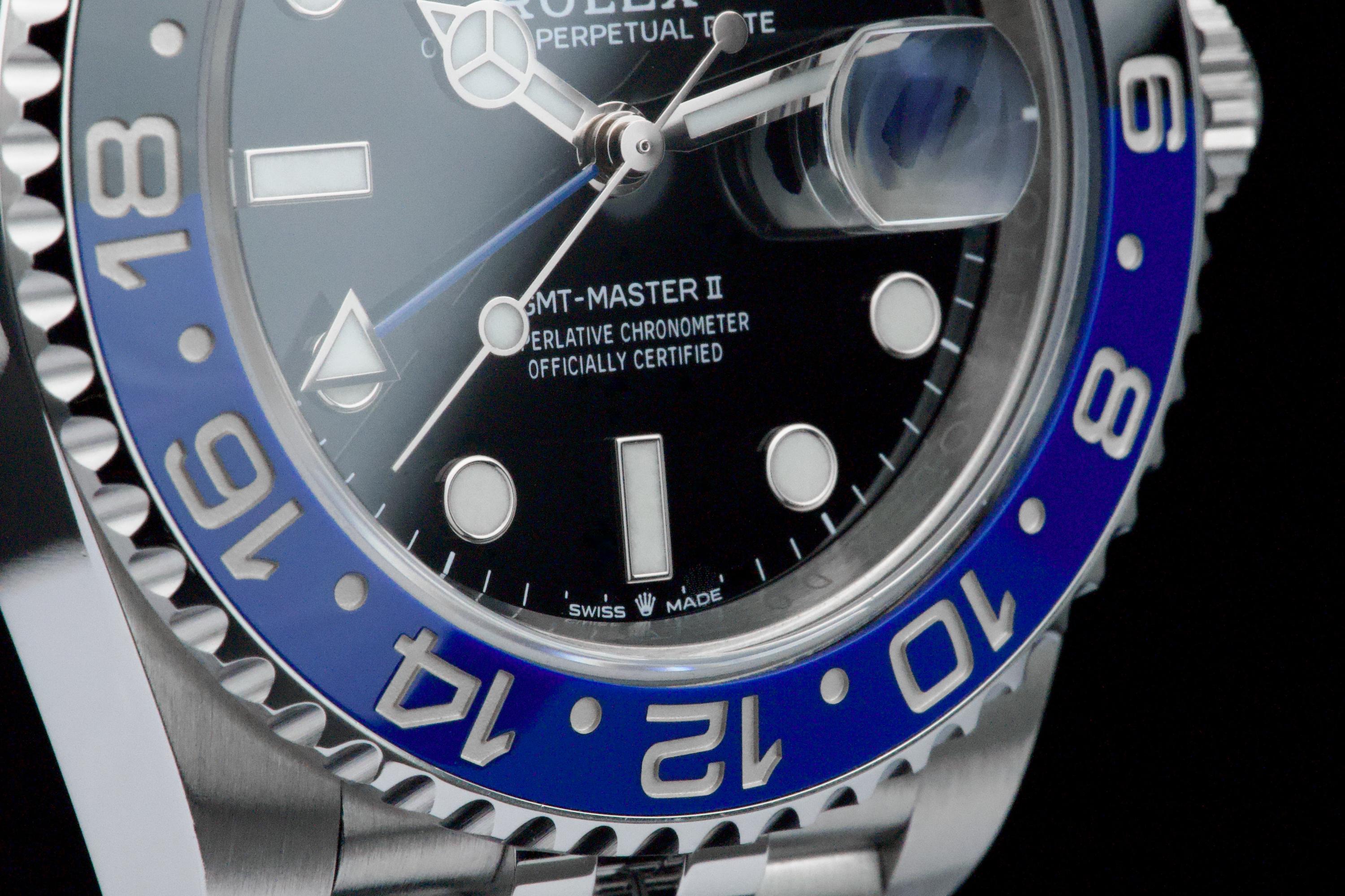 A superb example of the modern GMT-Master II “Batman” on Jubilee bracelet, coming from its original owner. The watch has just returned from being professionally polished and is presented in top overall condition. Featuring the black and blue Cerachrom bezel and black dial, this reference combines modern Rolex design with iconic GMT aesthetics. Powered by the automatic caliber 3285 with 70-hour power reserve and Chronergy escapement. Complete with its original box, 2023 warranty card, booklets, and accessories. A sharp and clean example of one of the most sought-after modern GMT-Master II models.