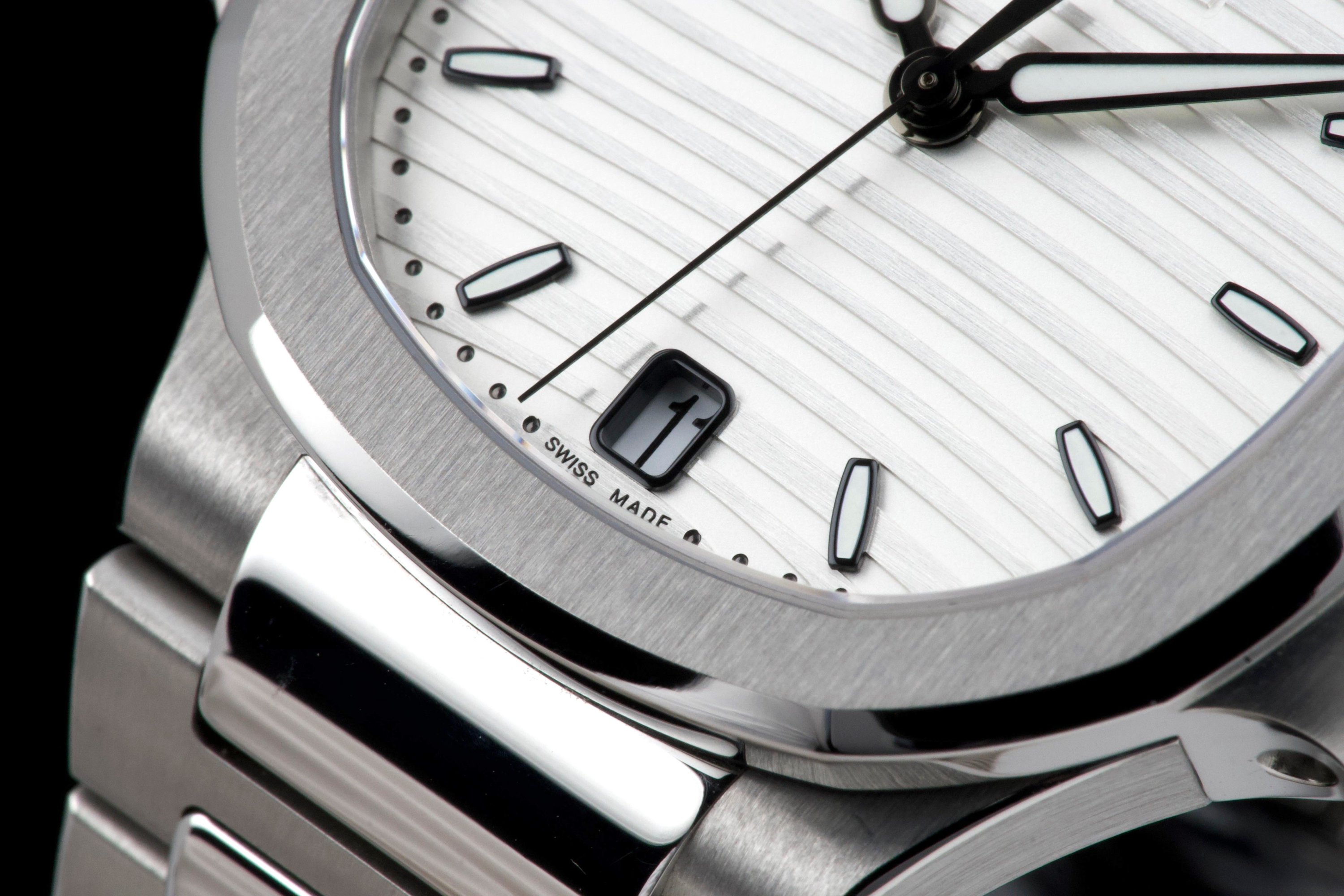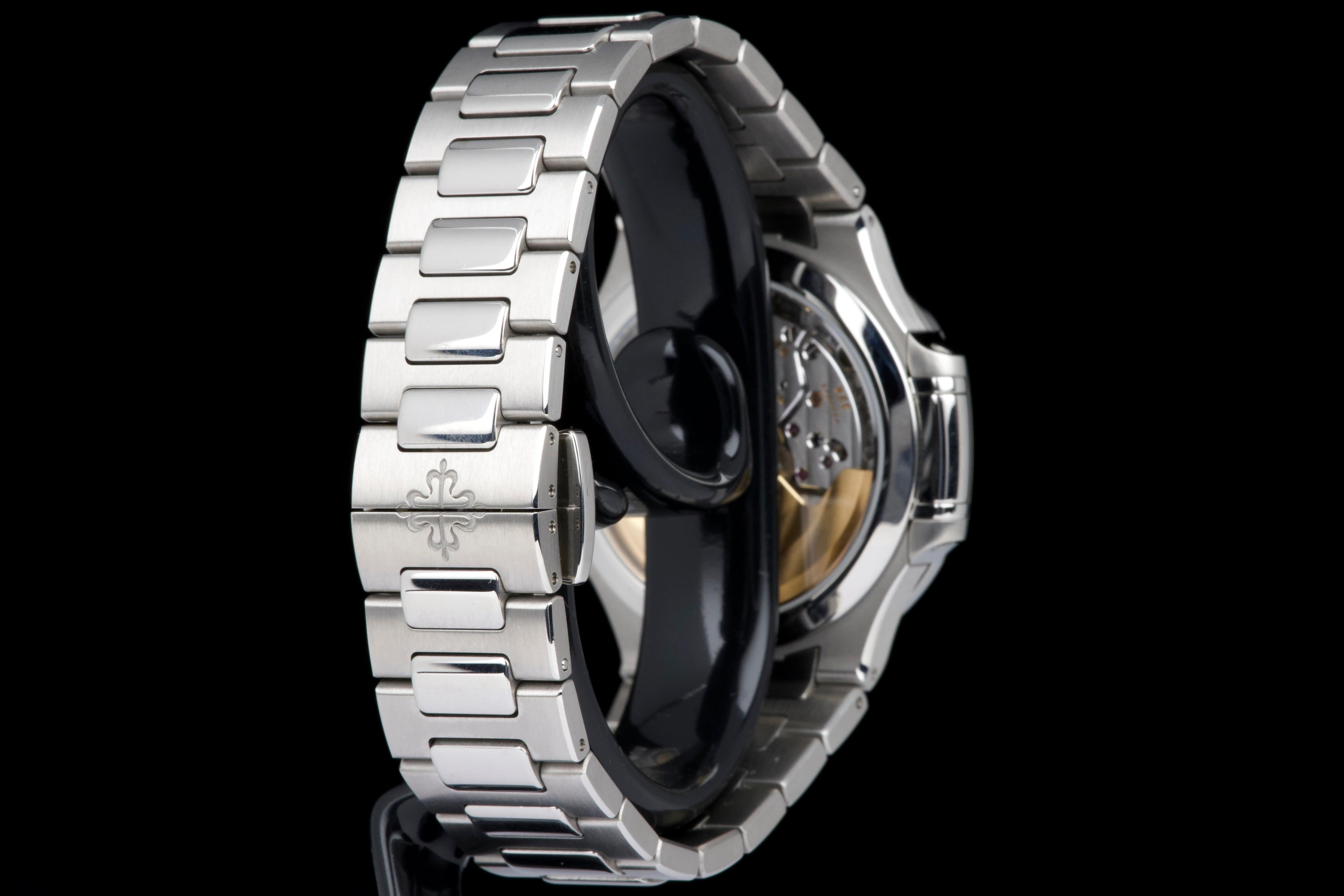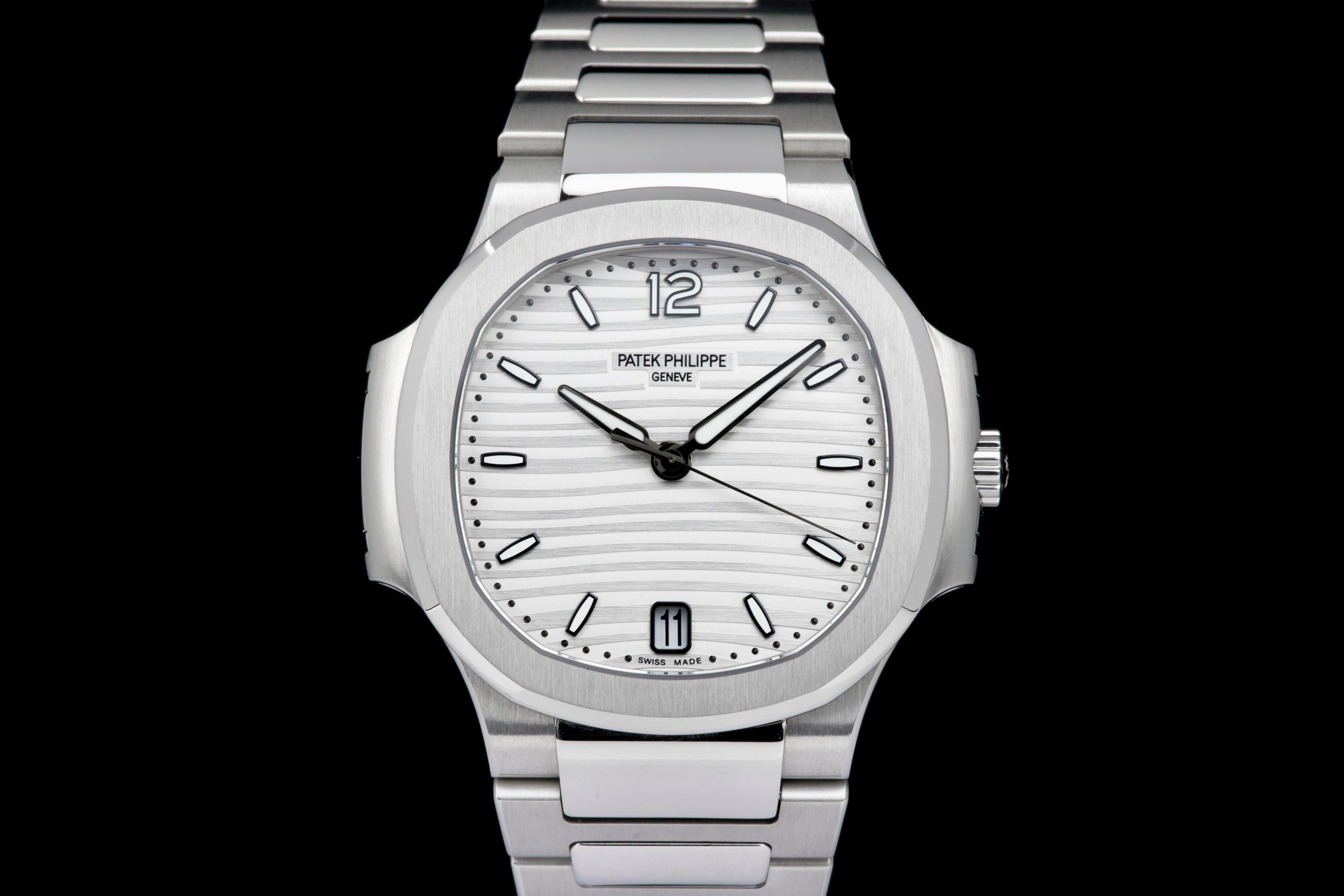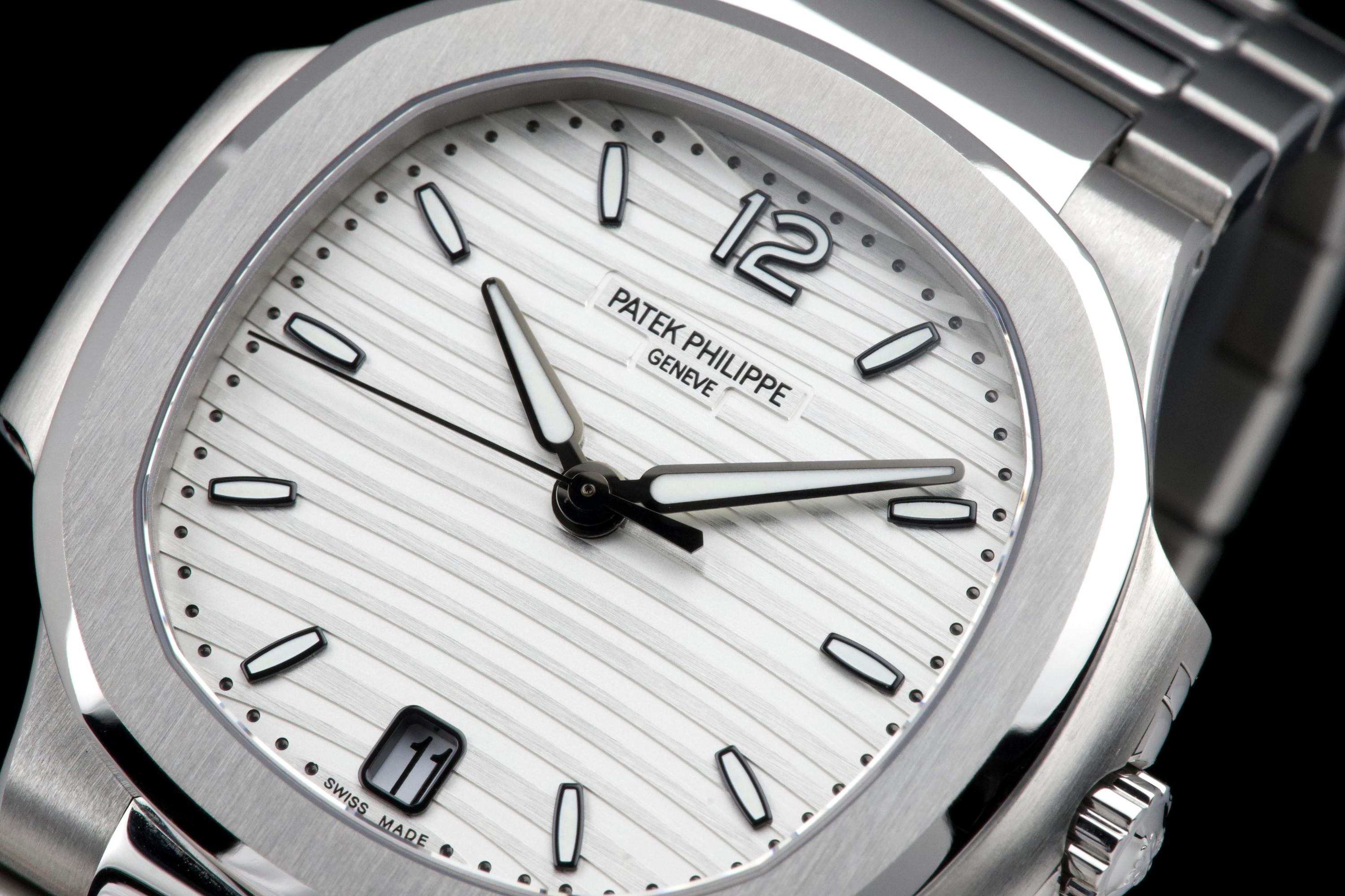 Presented is an exceptional and highly desirable example of one of Patek Philippe’s most iconic creations: the Nautilus reference 7118/1A-010. Crafted in stainless steel and measuring 36mm, this elegantly proportioned Nautilus offers a refined interpretation of Gérald Genta’s legendary design, combining sportiness with unmistakable sophistication. This particular watch dates to 2019 and is offered in unworn condition, retaining its original factory finish throughout. The luminous white dial, adorned with the signature horizontal embossing, provides a striking yet timeless contrast against the steel case and integrated bracelet. Accompanied by its full set, including box and Swiss-issued papers, this example represents a rare opportunity to acquire a pristine Nautilus in outstanding condition. A compelling and enduring timepiece, highly sought after by collectors for its elegance, versatility, and unquestionable horological pedigree.