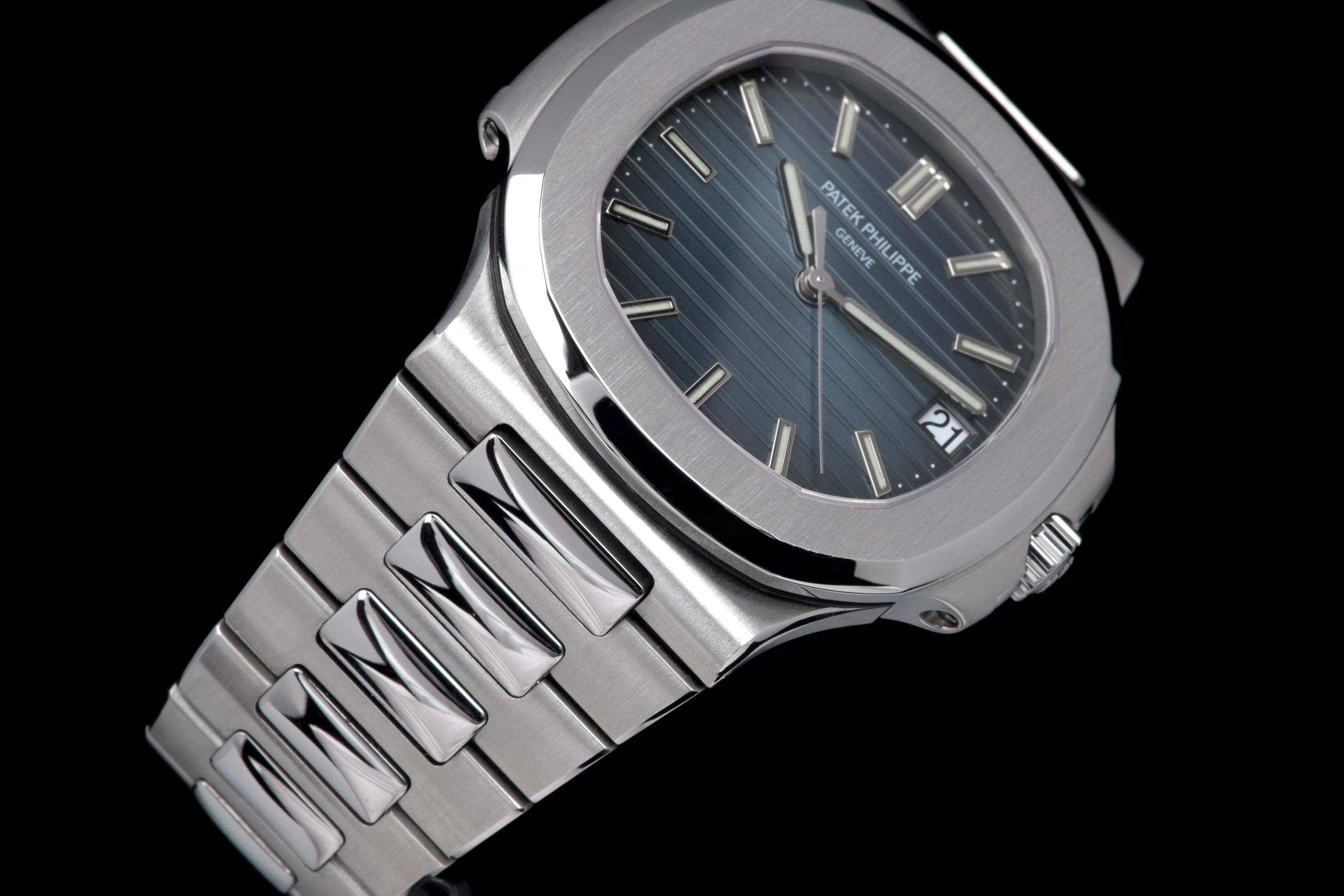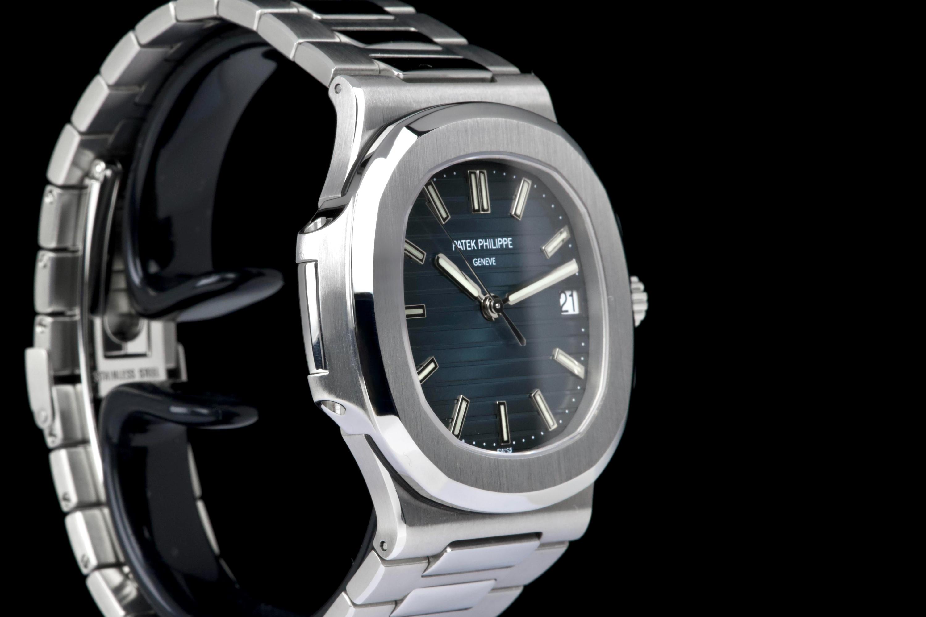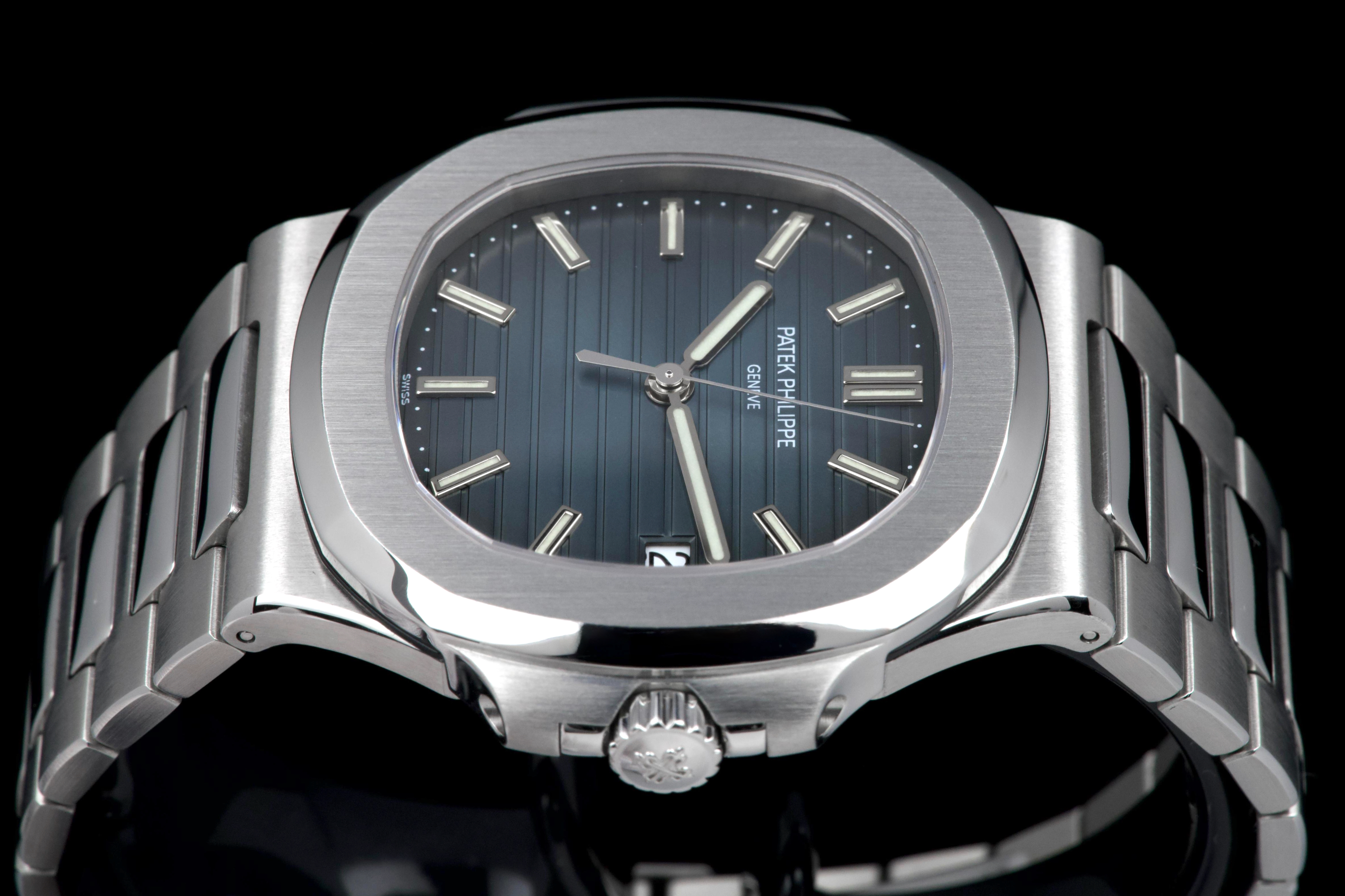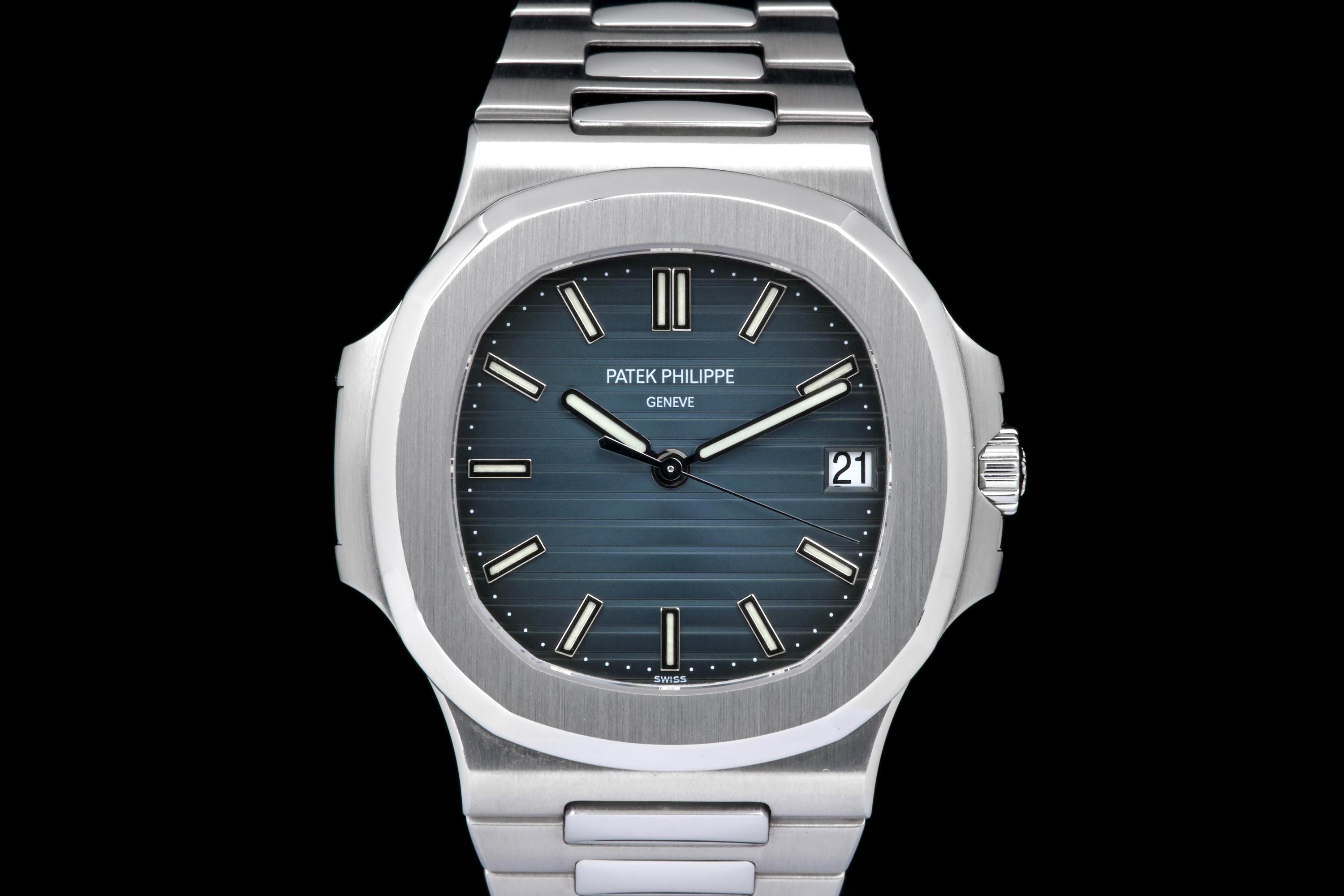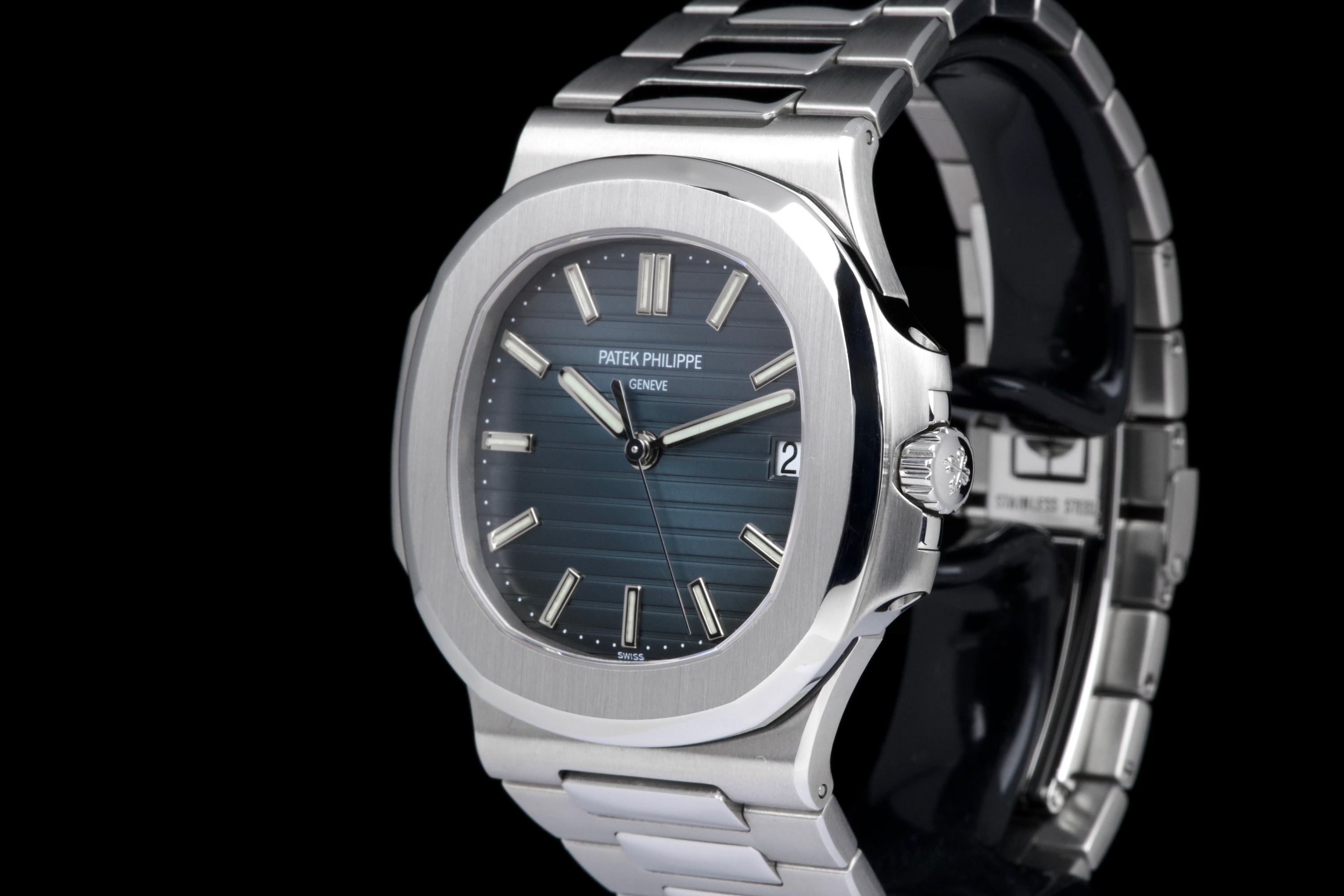 The present Patek Philippe Nautilus reference 5711/1A, fitted with the highly desirable blue dial, dating to 2012, is offered here as a complete full set and represents one of the most iconic and sought-after luxury sports watches of the modern era. Originally sold new in Oklahoma in 2012, this example combines strong provenance with excellent overall presentation. The stainless-steel case has been recently polished and is preserved in very attractive condition, showing crisp lines and a clean overall appearance. The integrated bracelet is in excellent condition with no visible stretch, an important and increasingly rare attribute for this reference, further underscoring the careful ownership the watch has enjoyed. The watch is powered by the automatic Patek Philippe calibre 324 SC, which is in perfect working order at the time of cataloguing. While no service history accompanies the watch, its mechanical performance is excellent. The signature blue dial remains superb, offering the rich, horizontally embossed finish that has become emblematic of the 5711 and a key driver of its enduring desirability. Delivered as a full set, this Nautilus 5711 from 2012 represents a compelling opportunity to acquire a cornerstone modern Patek Philippe, combining timeless Gérald Genta design, outstanding wearability, and continued strong collector demand.