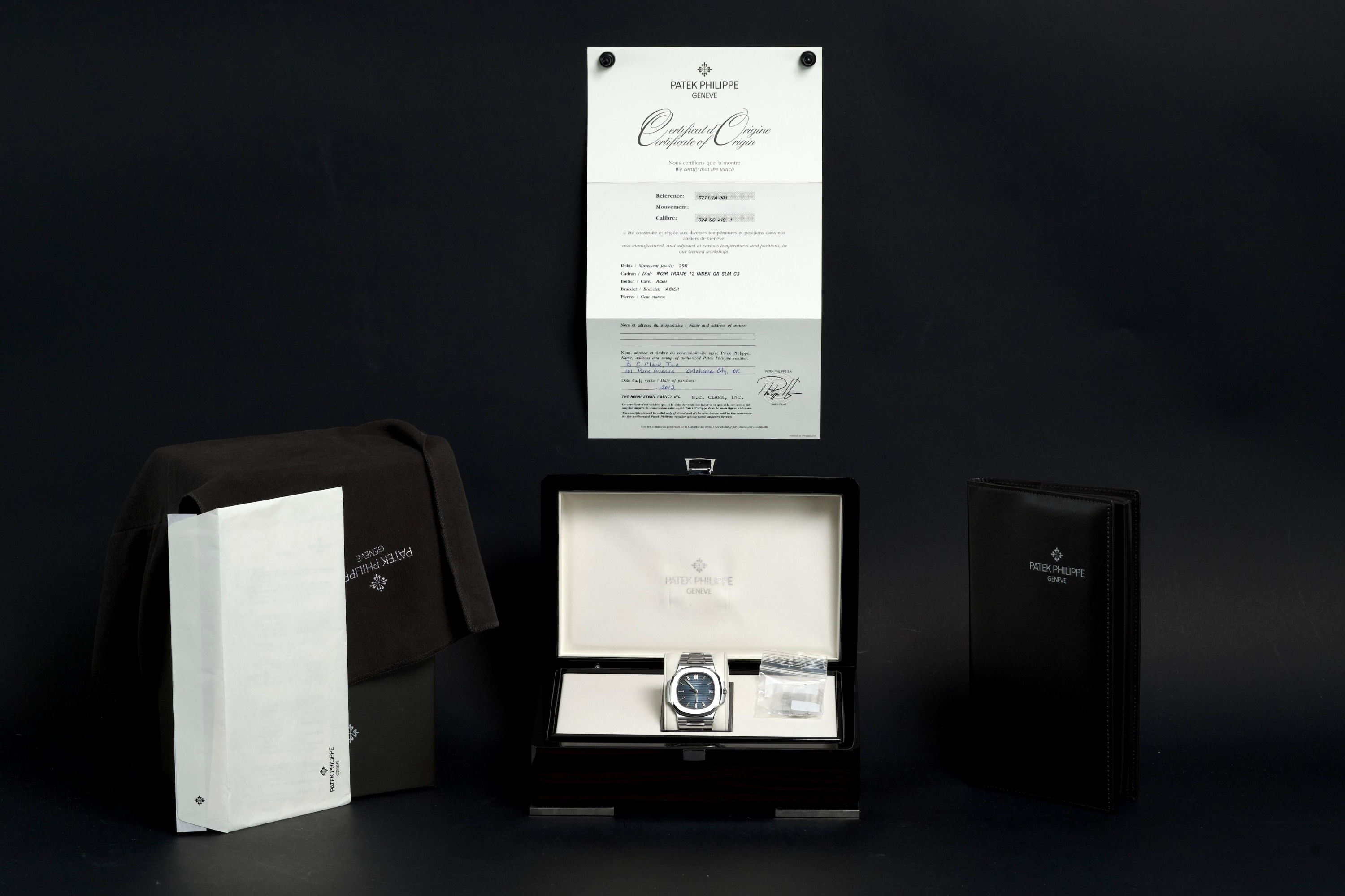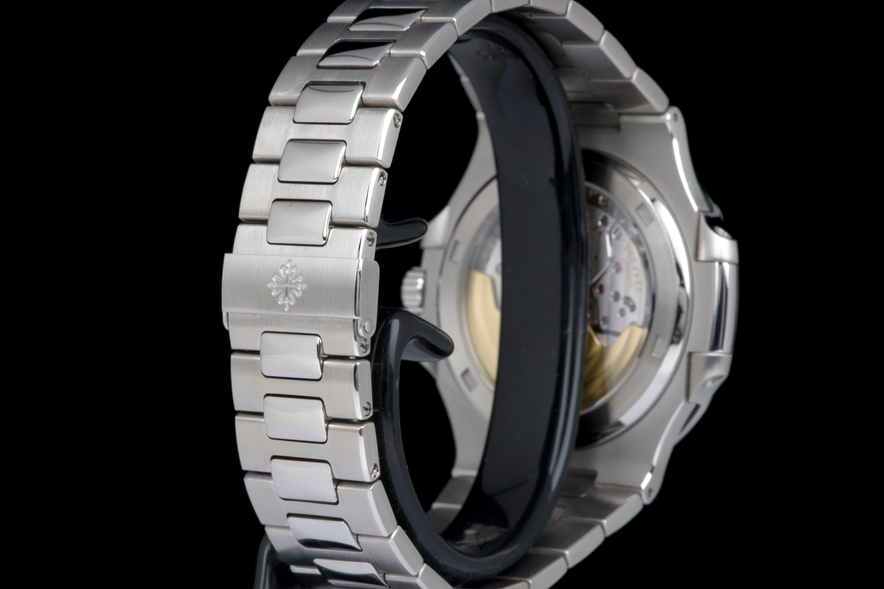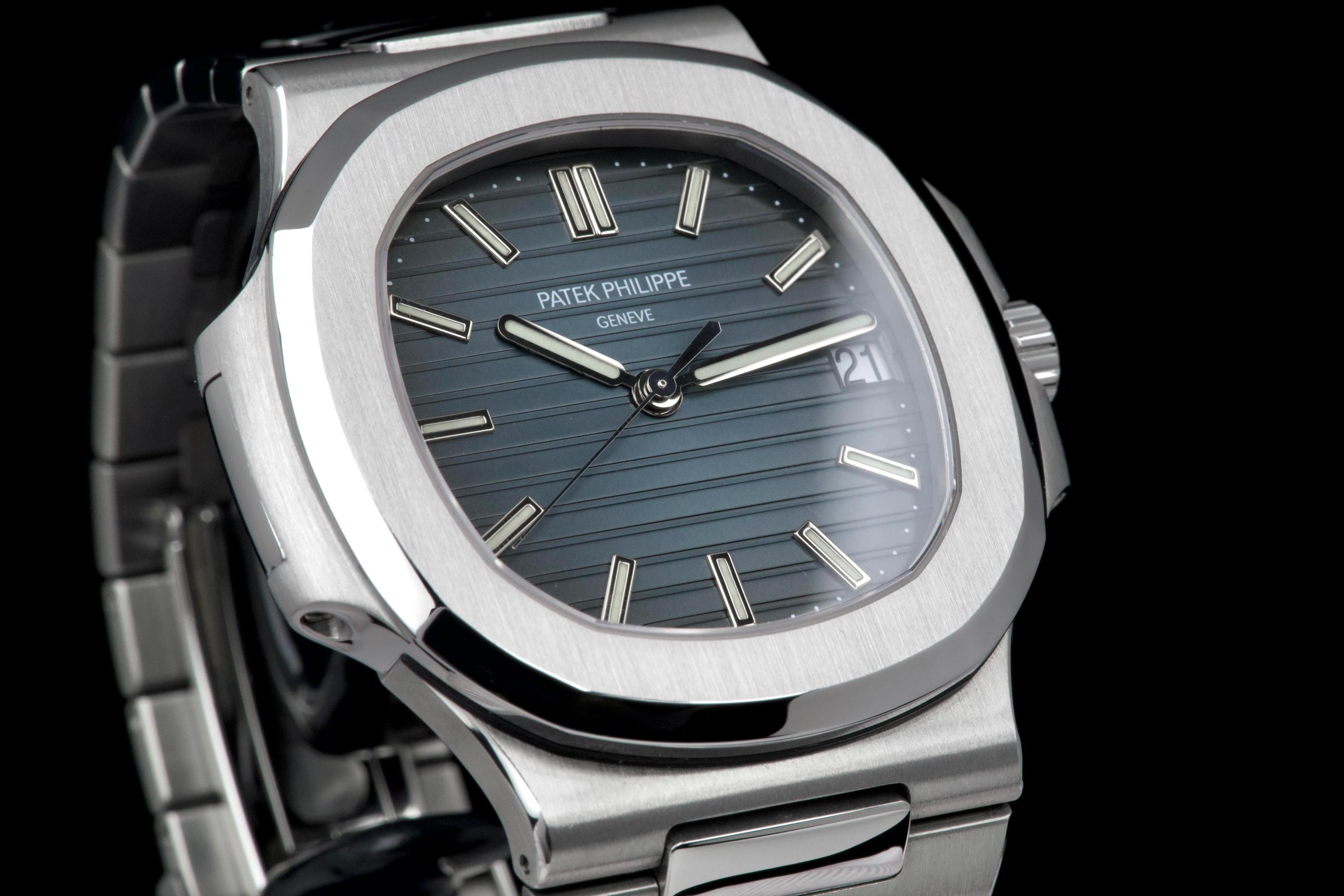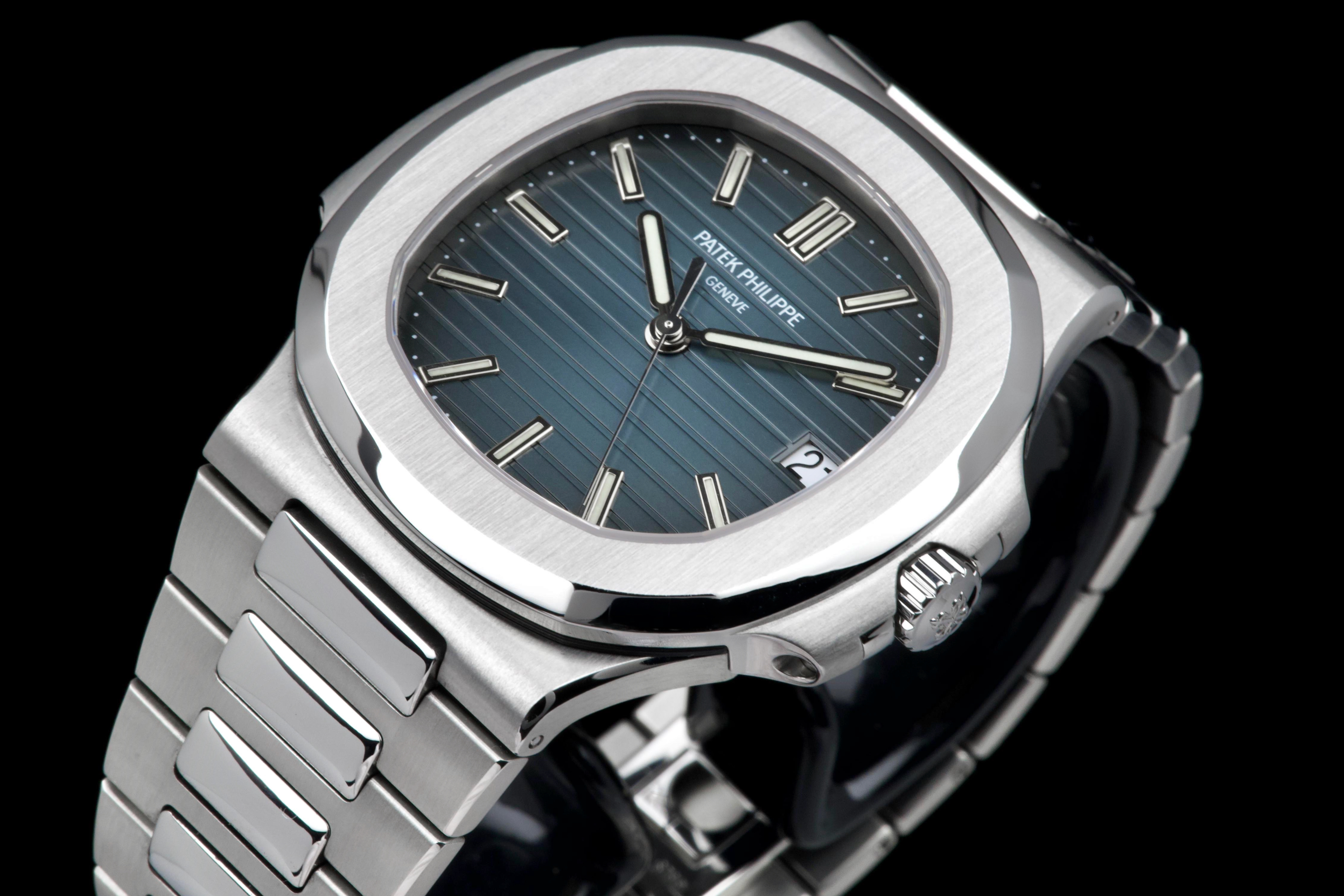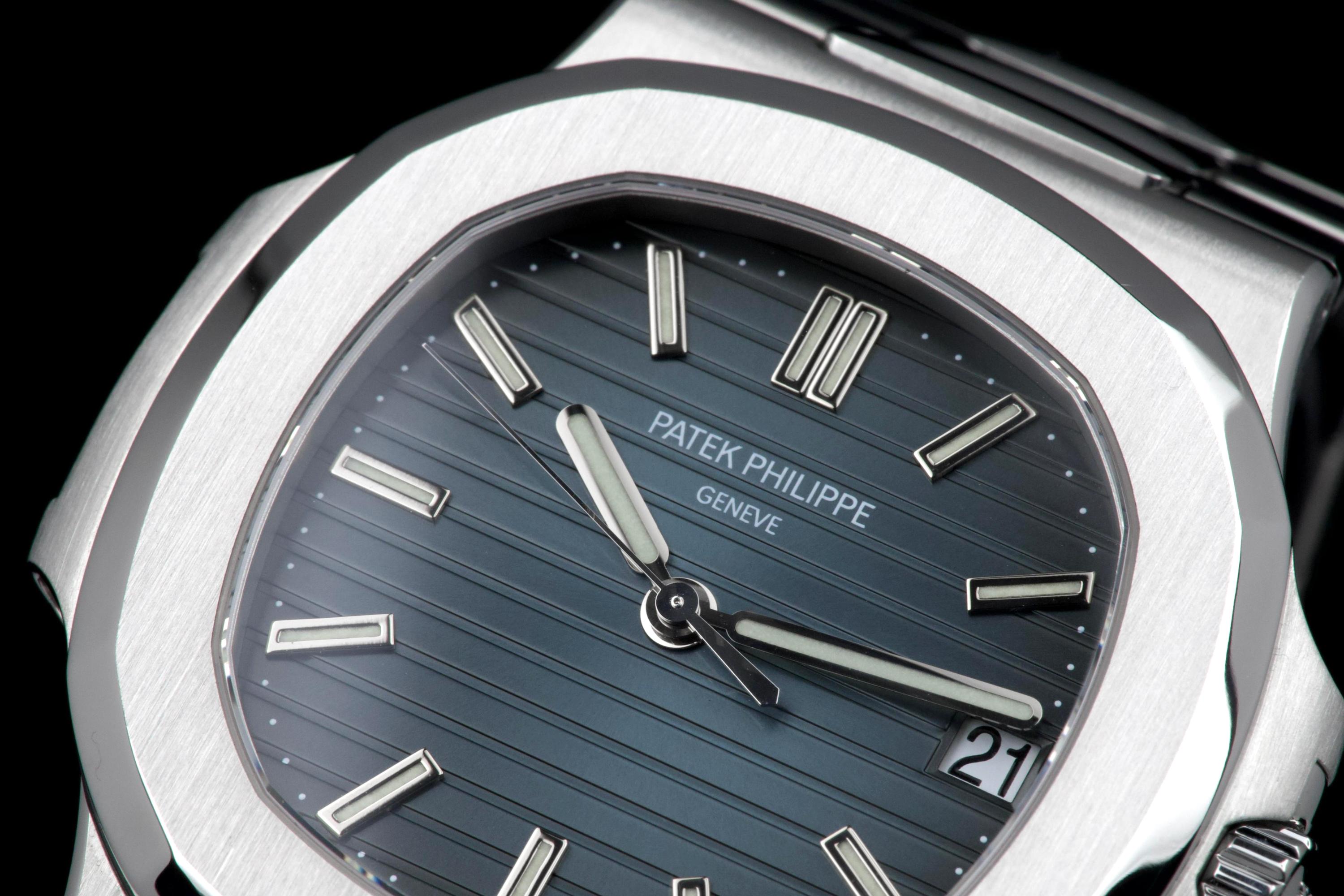 The present Patek Philippe Nautilus reference 5711/1A, fitted with the highly desirable blue dial, dating to 2012, is offered here as a complete full set and represents one of the most iconic and sought-after luxury sports watches of the modern era. Originally sold new in Oklahoma in 2012, this example combines strong provenance with excellent overall presentation. The stainless-steel case has been recently polished and is preserved in very attractive condition, showing crisp lines and a clean overall appearance. The integrated bracelet is in excellent condition with no visible stretch, an important and increasingly rare attribute for this reference, further underscoring the careful ownership the watch has enjoyed. The watch is powered by the automatic Patek Philippe calibre 324 SC, which is in perfect working order at the time of cataloguing. While no service history accompanies the watch, its mechanical performance is excellent. The signature blue dial remains superb, offering the rich, horizontally embossed finish that has become emblematic of the 5711 and a key driver of its enduring desirability. Delivered as a full set, this Nautilus 5711 from 2012 represents a compelling opportunity to acquire a cornerstone modern Patek Philippe, combining timeless Gérald Genta design, outstanding wearability, and continued strong collector demand.