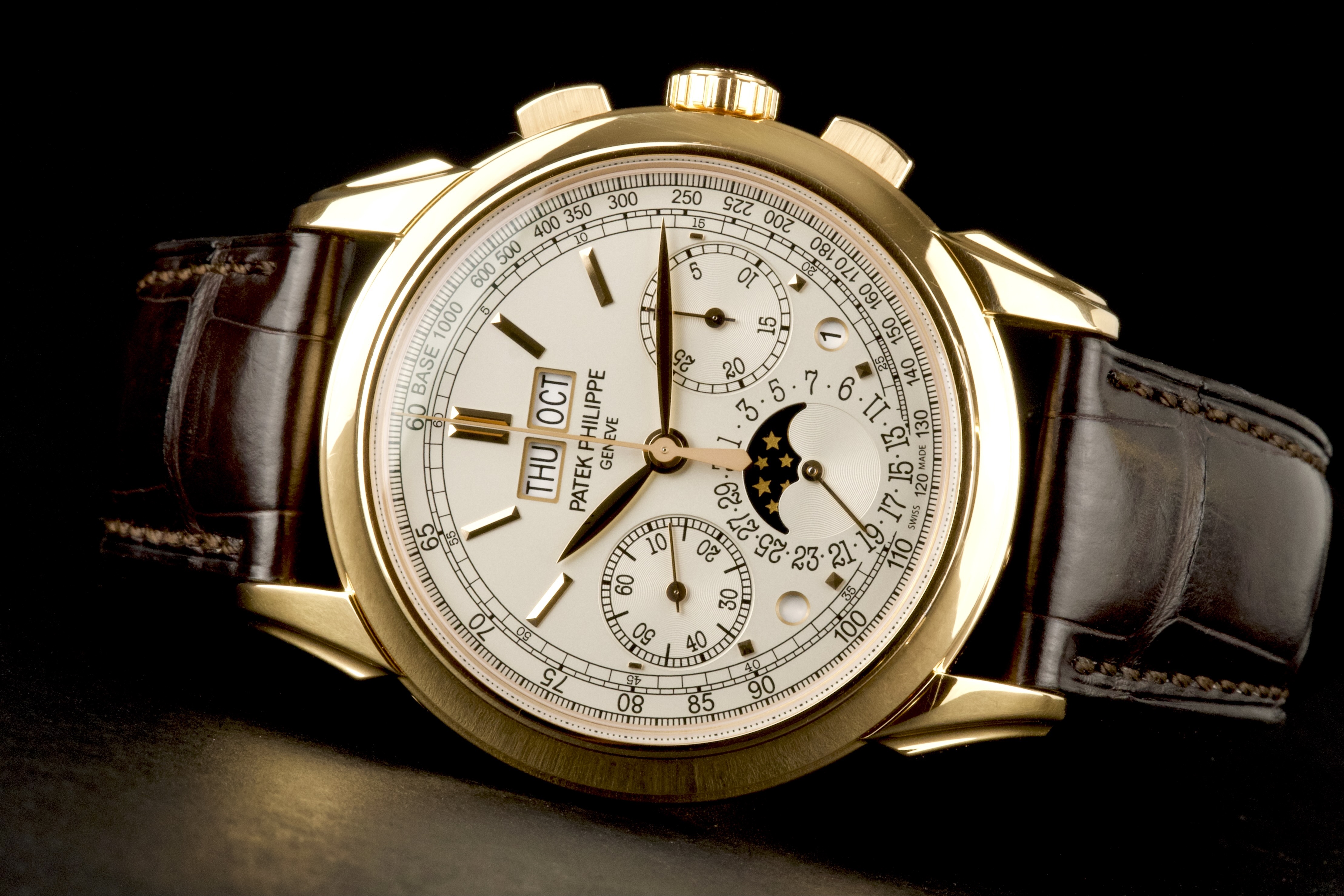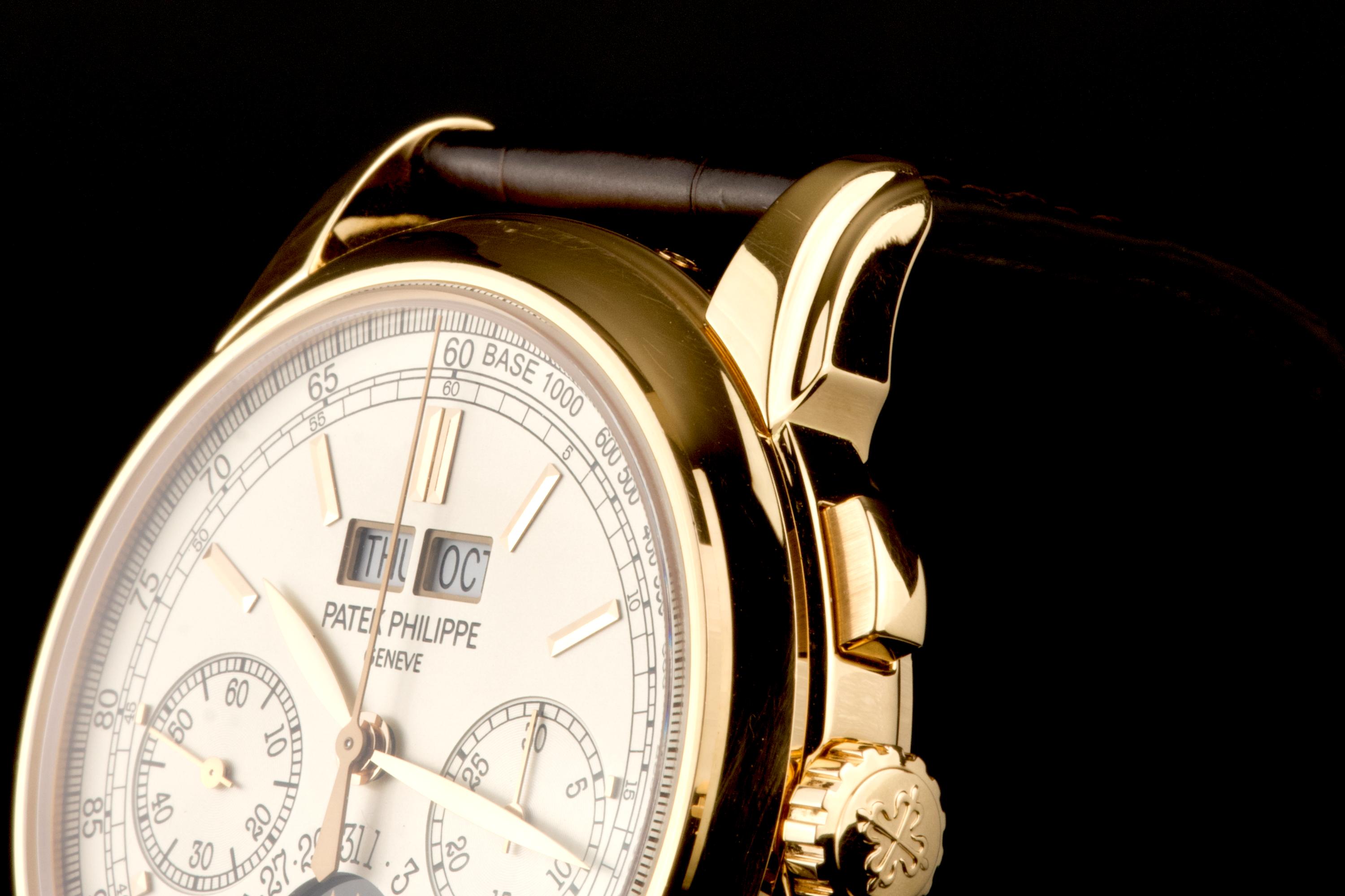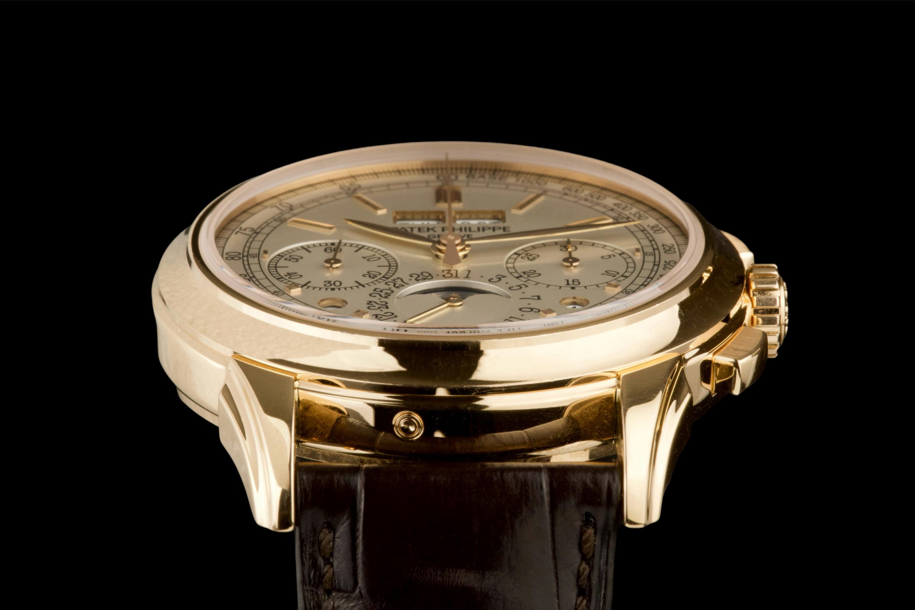 This Patek Philippe 5270R combines two of the brand’s most iconic complications in an elegant 41mm rose gold case: the perpetual calendar and the chronograph. Sold in 2015 and offered as a full set with box and papers (as shown in the photos), the watch is in excellent overall condition, showing only very light signs of wear. A cornerstone reference in modern Patek Philippe grand complication collecting.