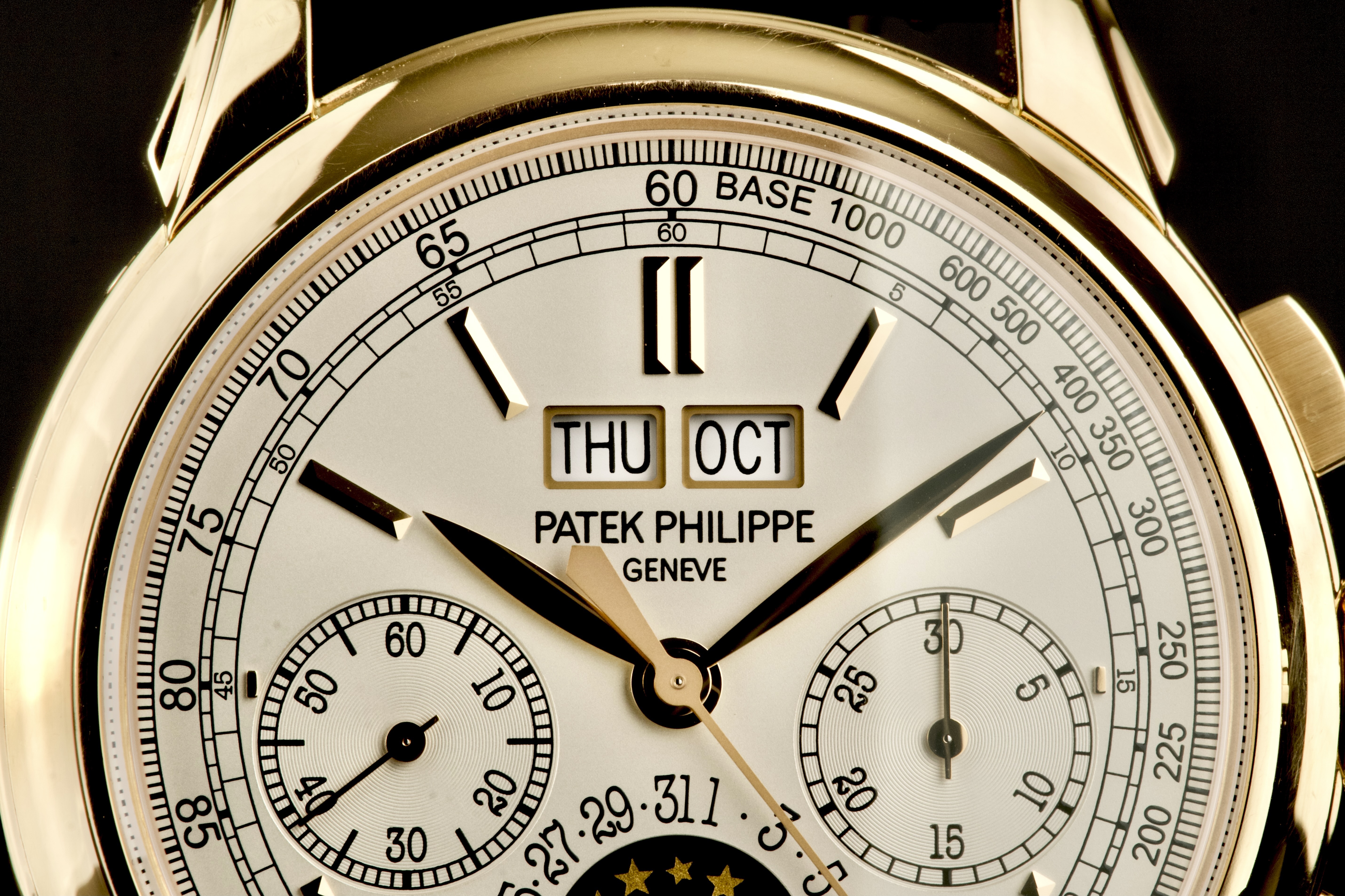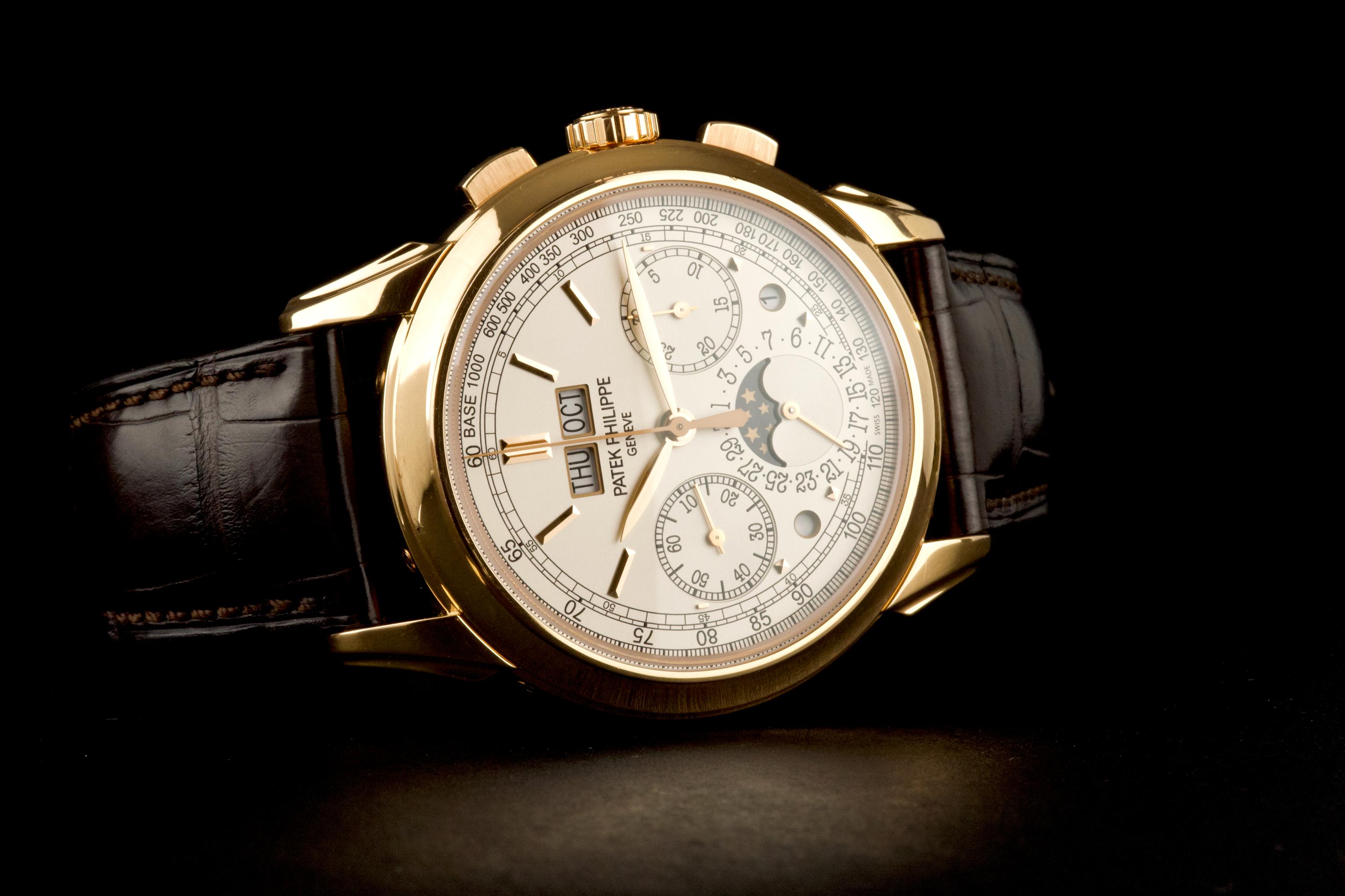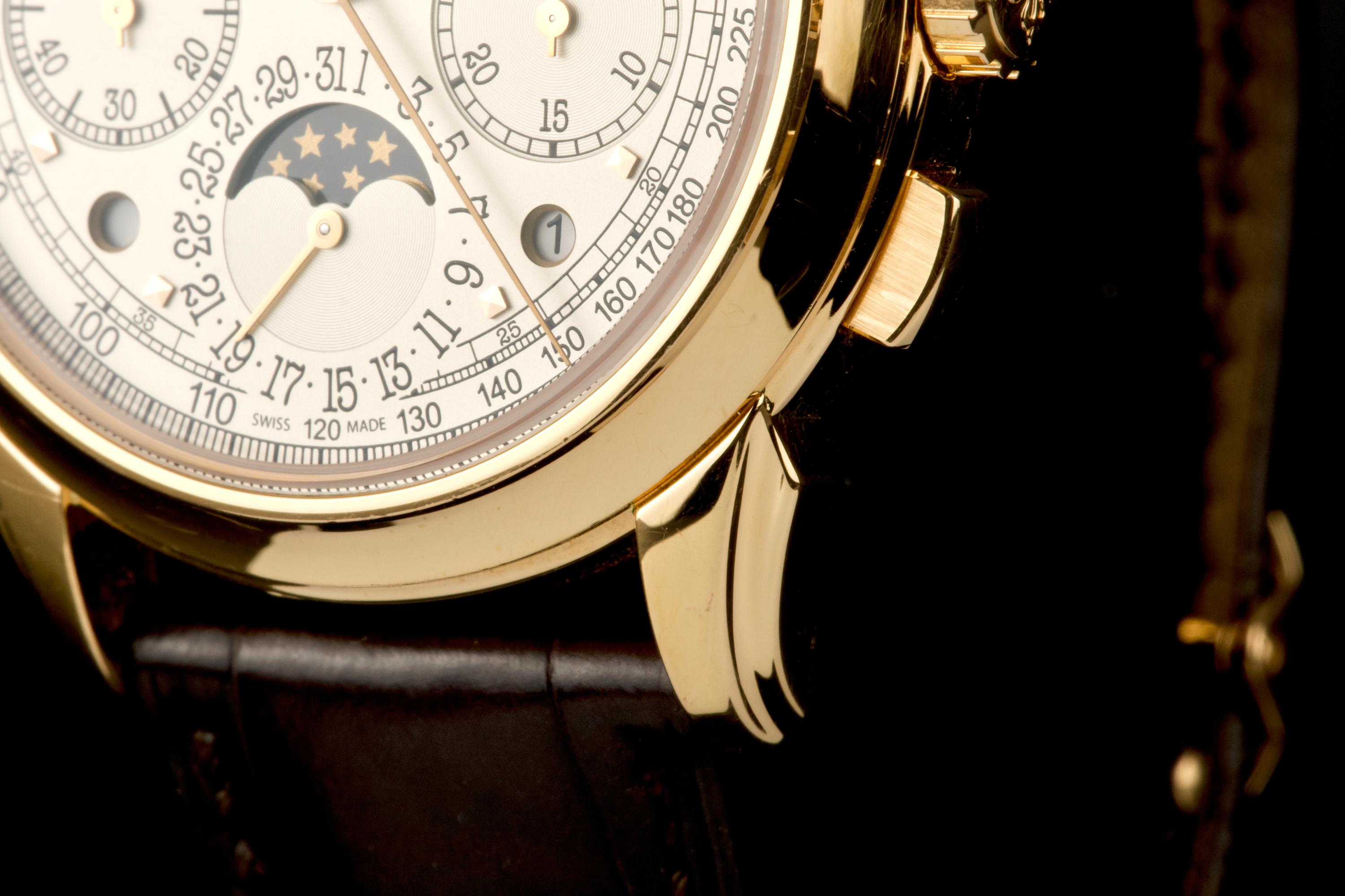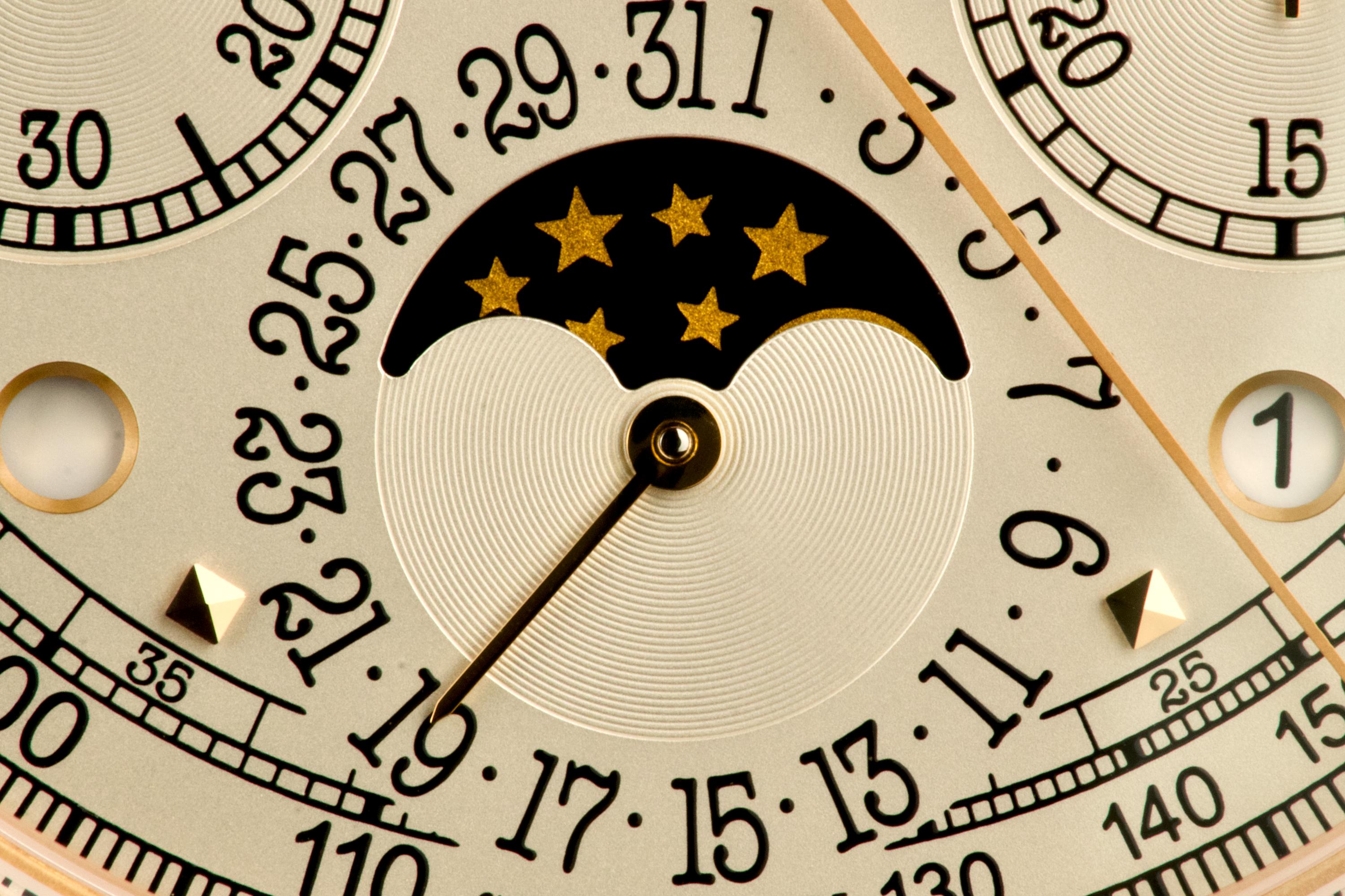 This Patek Philippe 5270R combines two of the brand’s most iconic complications in an elegant 41mm rose gold case: the perpetual calendar and the chronograph. Sold in 2015 and offered as a full set with box and papers (as shown in the photos), the watch is in excellent overall condition, showing only very light signs of wear. A cornerstone reference in modern Patek Philippe grand complication collecting.
