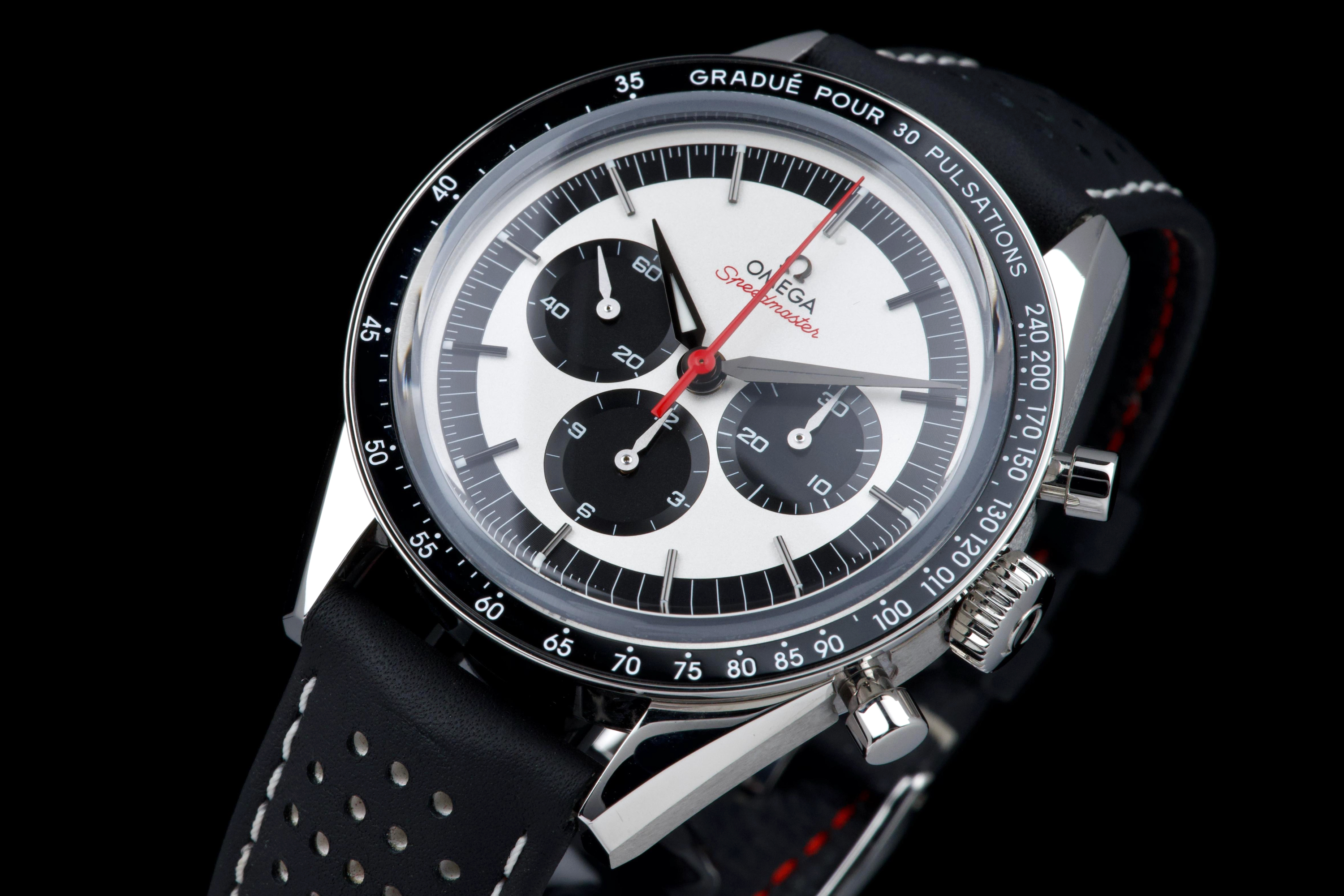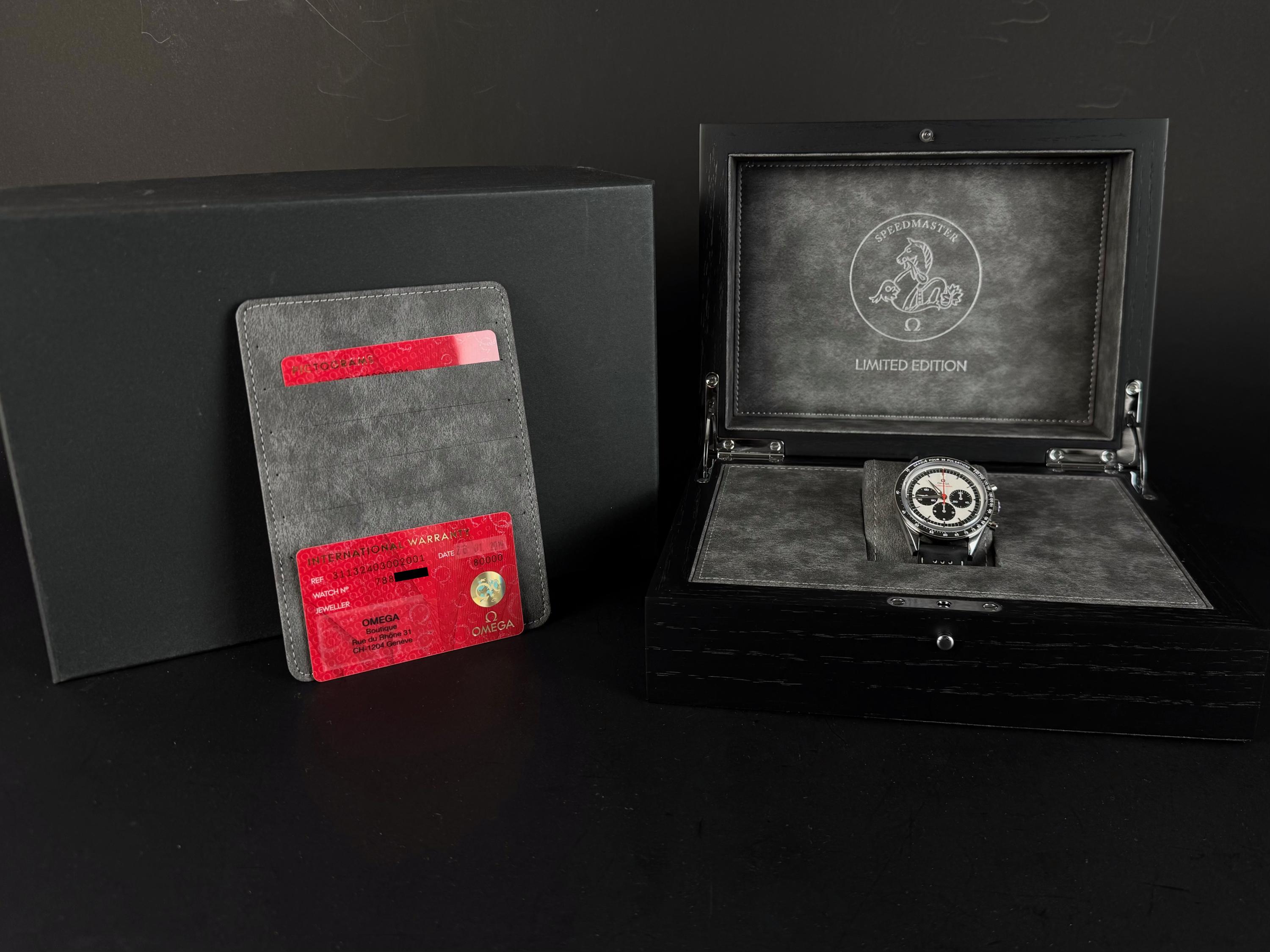 The present Omega Speedmaster Professional Moonwatch “CK2998” reference 311.23.40.30.02.001, dating to 2019, is a highly attractive and collectible limited-edition reinterpretation of one of the earliest Speedmaster references. Offered as a complete full set and coming from the original owner, this watch combines strong provenance with excellent overall condition, showing only very light wear from use. Inspired by the historic CK2998 of 1959, this modern tribute features a 39.7 mm stainless-steel case, closely reflecting the proportions of the original model and offering a refined vintage presence on the wrist. The watch is part of a limited edition of 2,998 pieces, a direct reference to the original CK2998 designation, making it particularly appealing to Speedmaster collectors. The dial features a beautiful silvered opaline finish with contrasting blue sub-dials, complemented by alpha-style handsand a blue ceramic tachymeter bezel, all details inspired by early Speedmaster aesthetics. These elements give the watch a distinctive vintage character while maintaining modern build quality. The watch is powered by Omega’s renowned manual-winding chronograph movement, derived from the Moonwatch lineage and celebrated for its robustness and reliability. Delivered as a full set from 2019 and preserved in excellent condition with single-owner provenance, this Speedmaster CK2998 limited edition represents a compelling opportunity to acquire a historically inspired Moonwatch with strong collectability and timeless design.