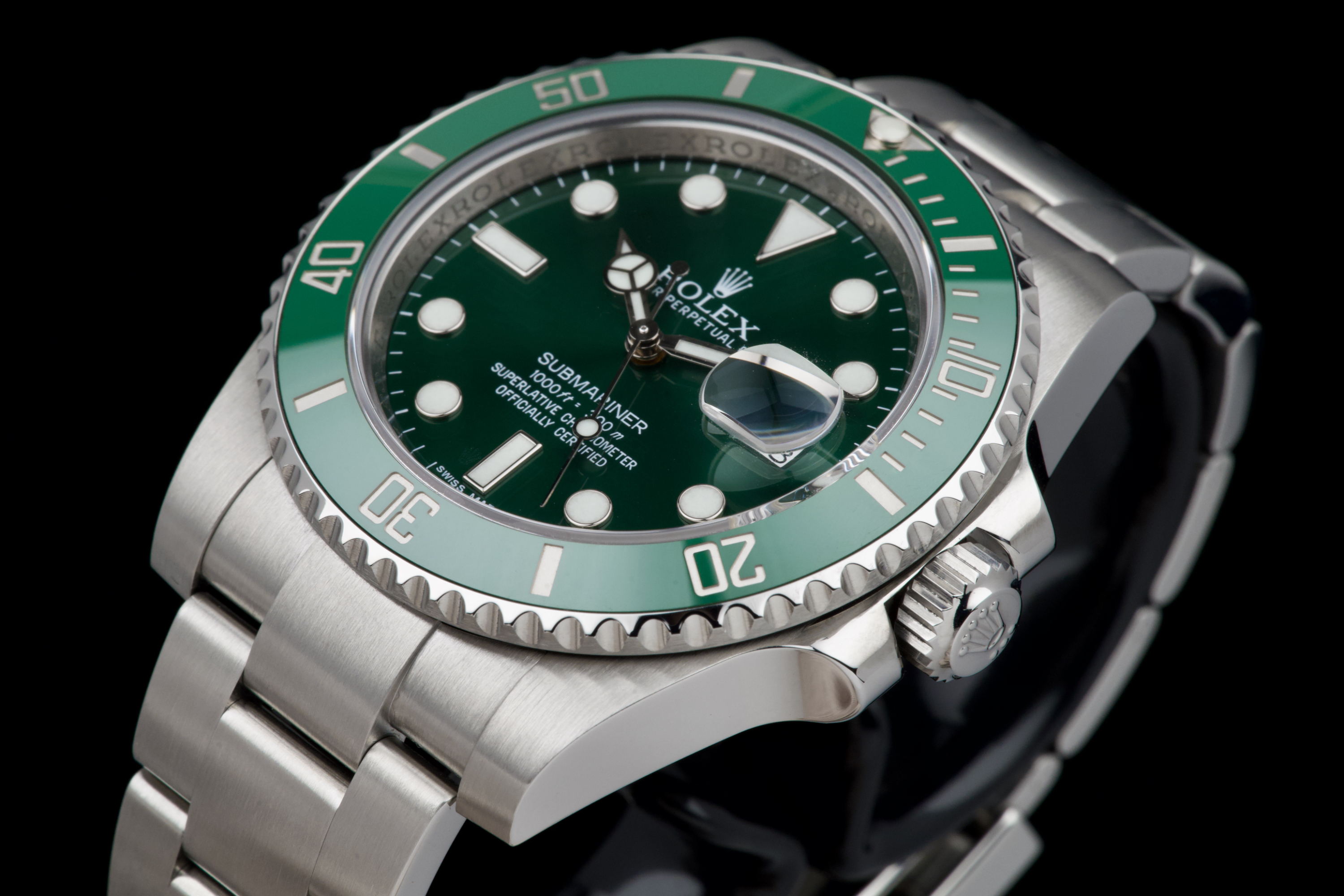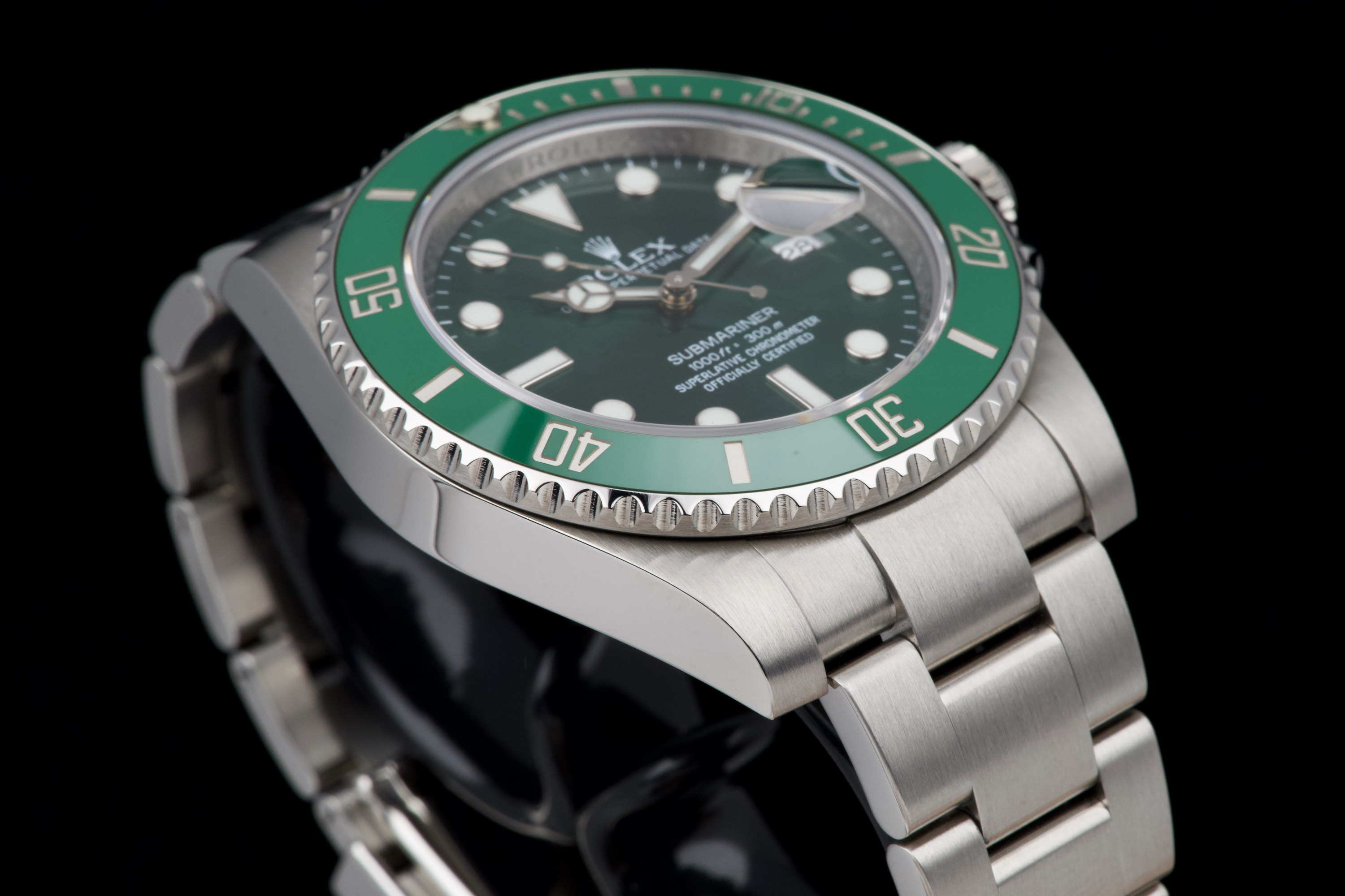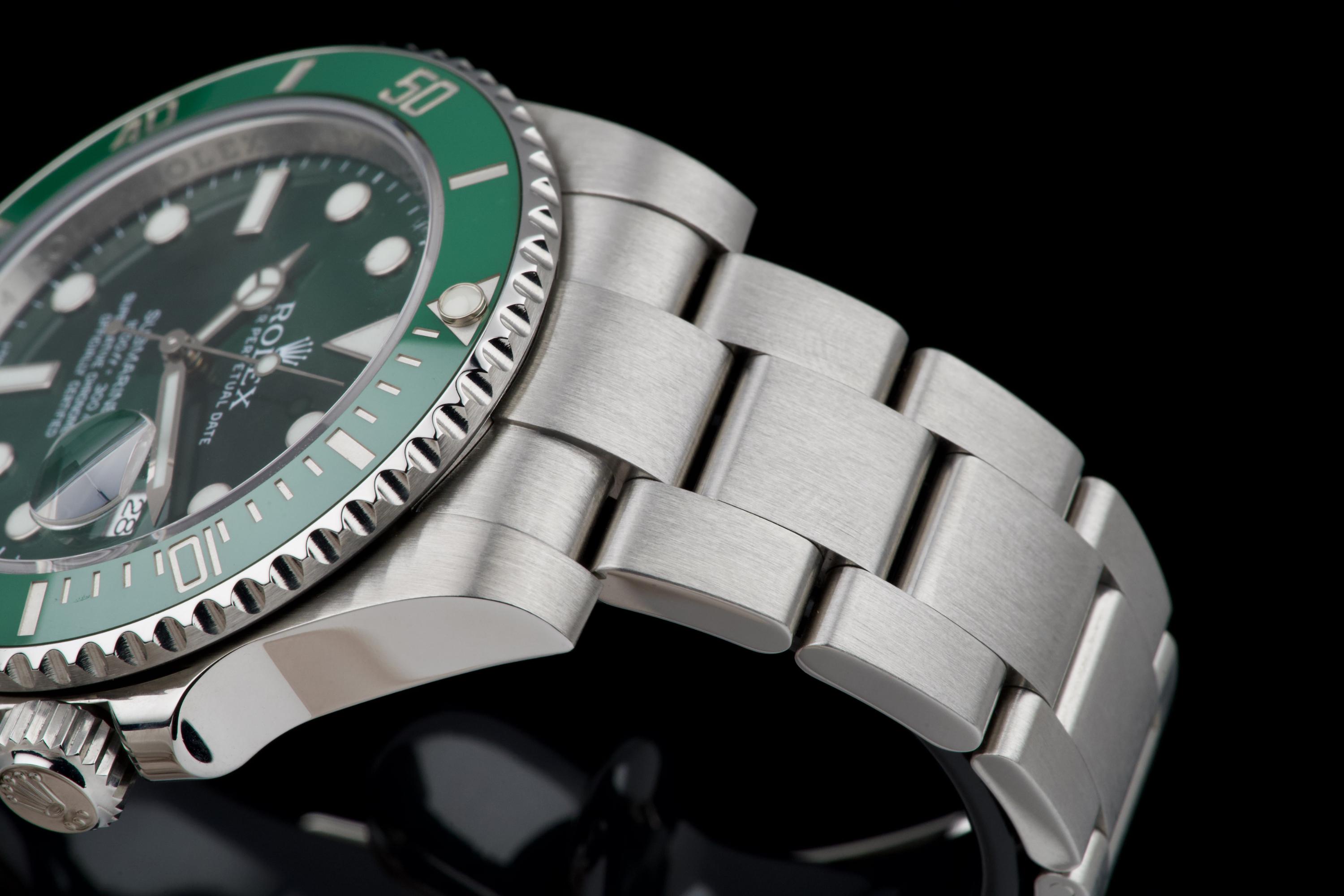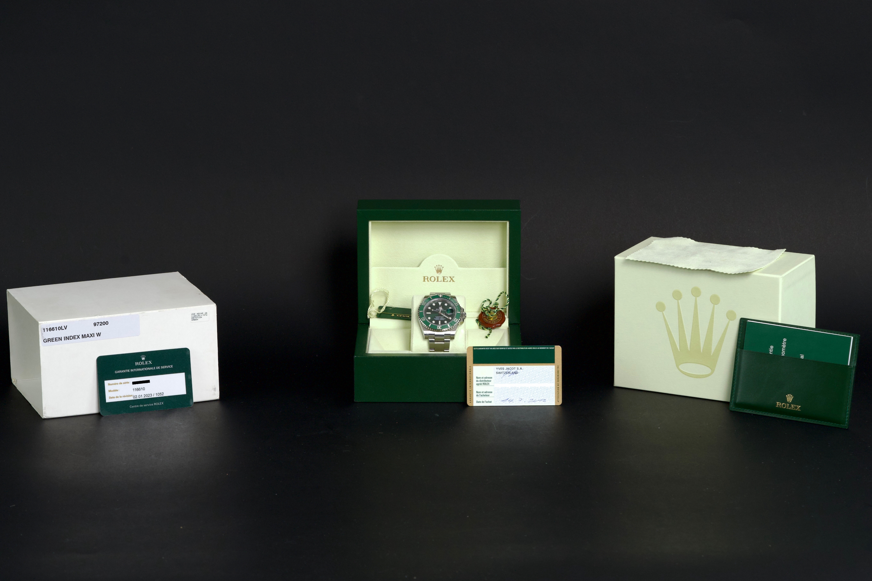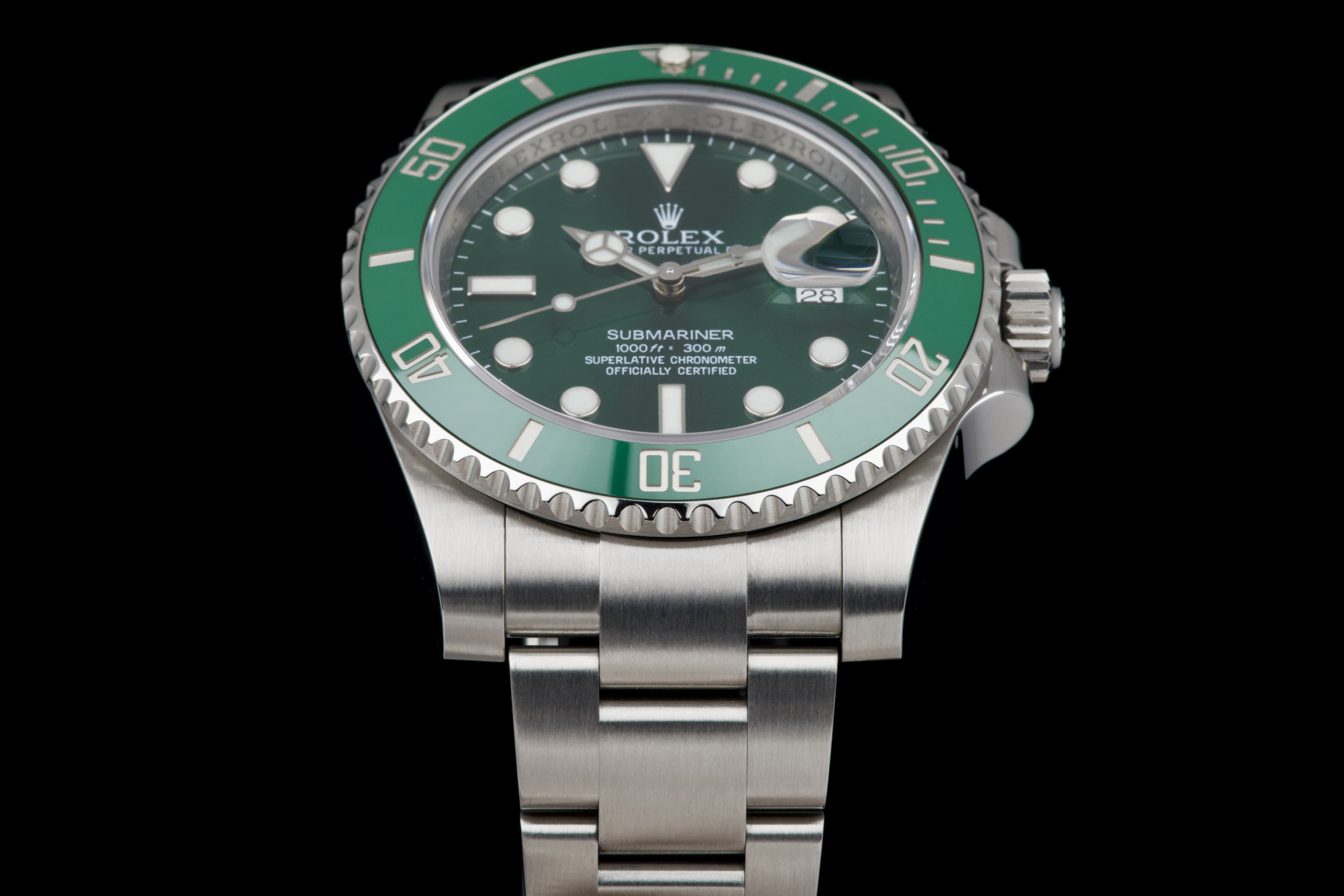 A beautiful example of the iconic Submariner 116610LV, coming from its original owner. The watch has just received its first light polish by our watchmaker and now presents in excellent overall condition. It also comes with a Rolex service card dated January 2023, confirming a factory service at that time (without polishing). Delivered as a full set from 2012, this Hulk features its vibrant green sunburst dial and matching ceramic bezel, both in superb condition. A clean, well-preserved early Hulk with documented service history — an increasingly sought-after modern classic.