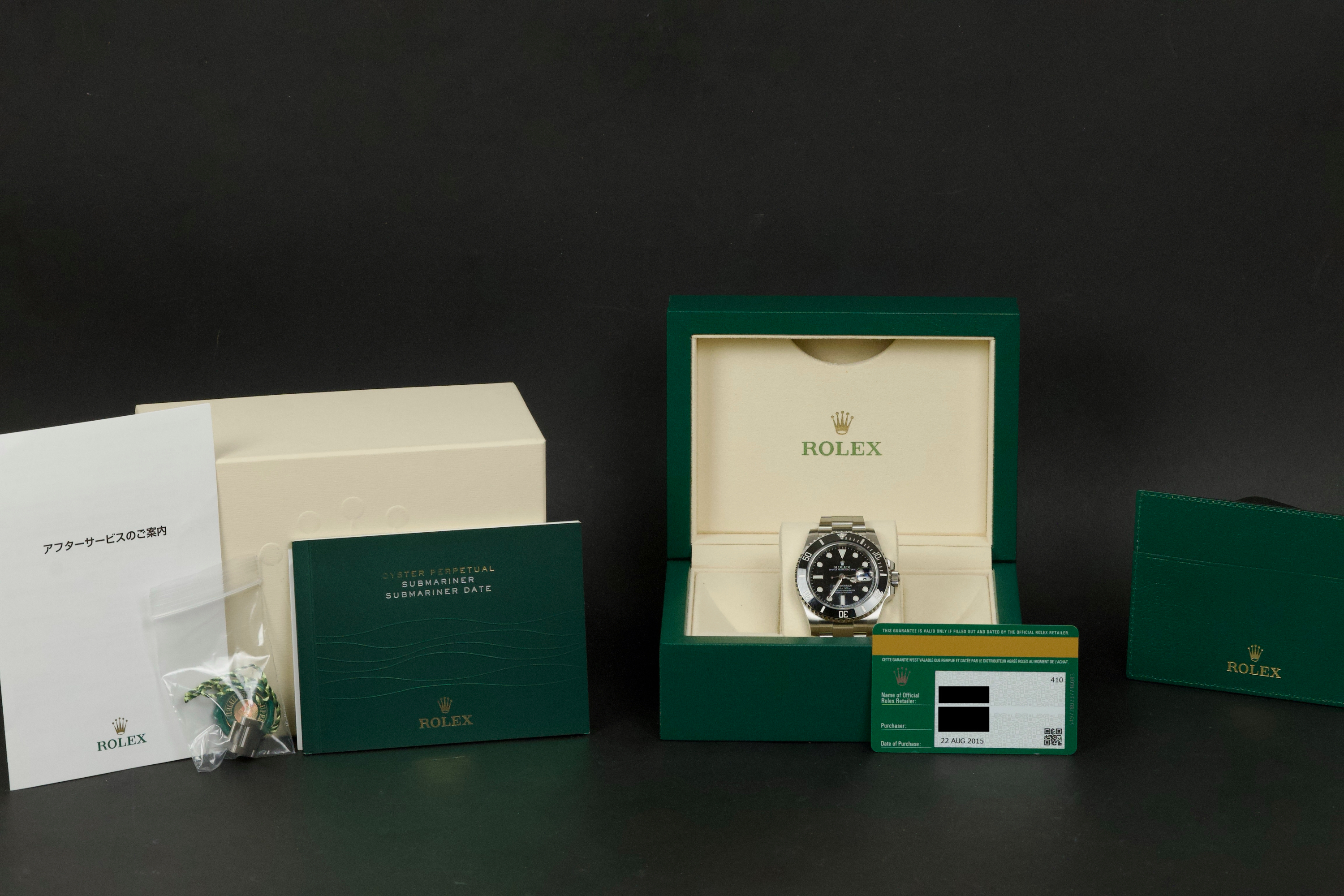 This Rolex Submariner Date 116610LN features a 40mm stainless steel case with a black dial and ceramic bezel. A modern classic, this reference offers robust construction, timeless design, and everyday versatility. Originally sold in 2015, the watch comes as a full set with box and papers. It has just returned from a professional polish and is presented in excellent overall condition. The movement has been fully inspected by our watchmaker and is running flawlessly.