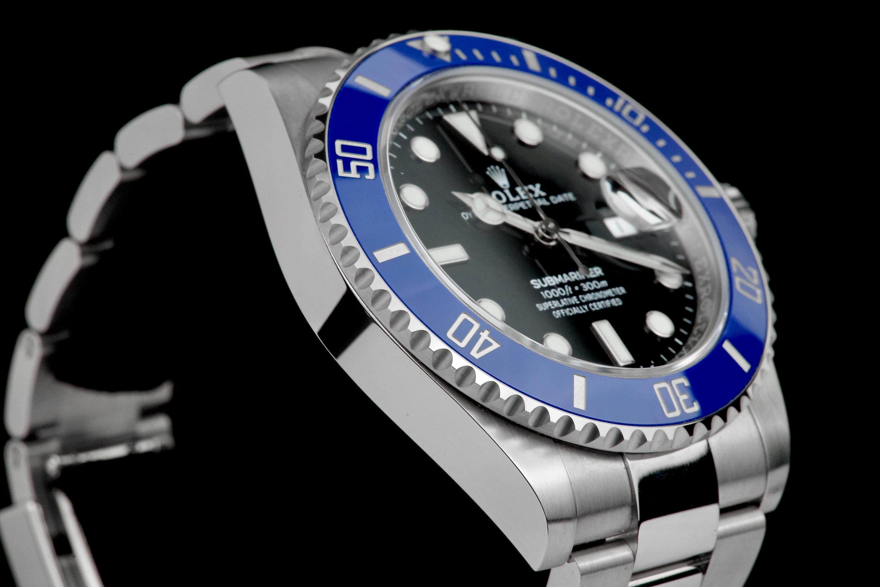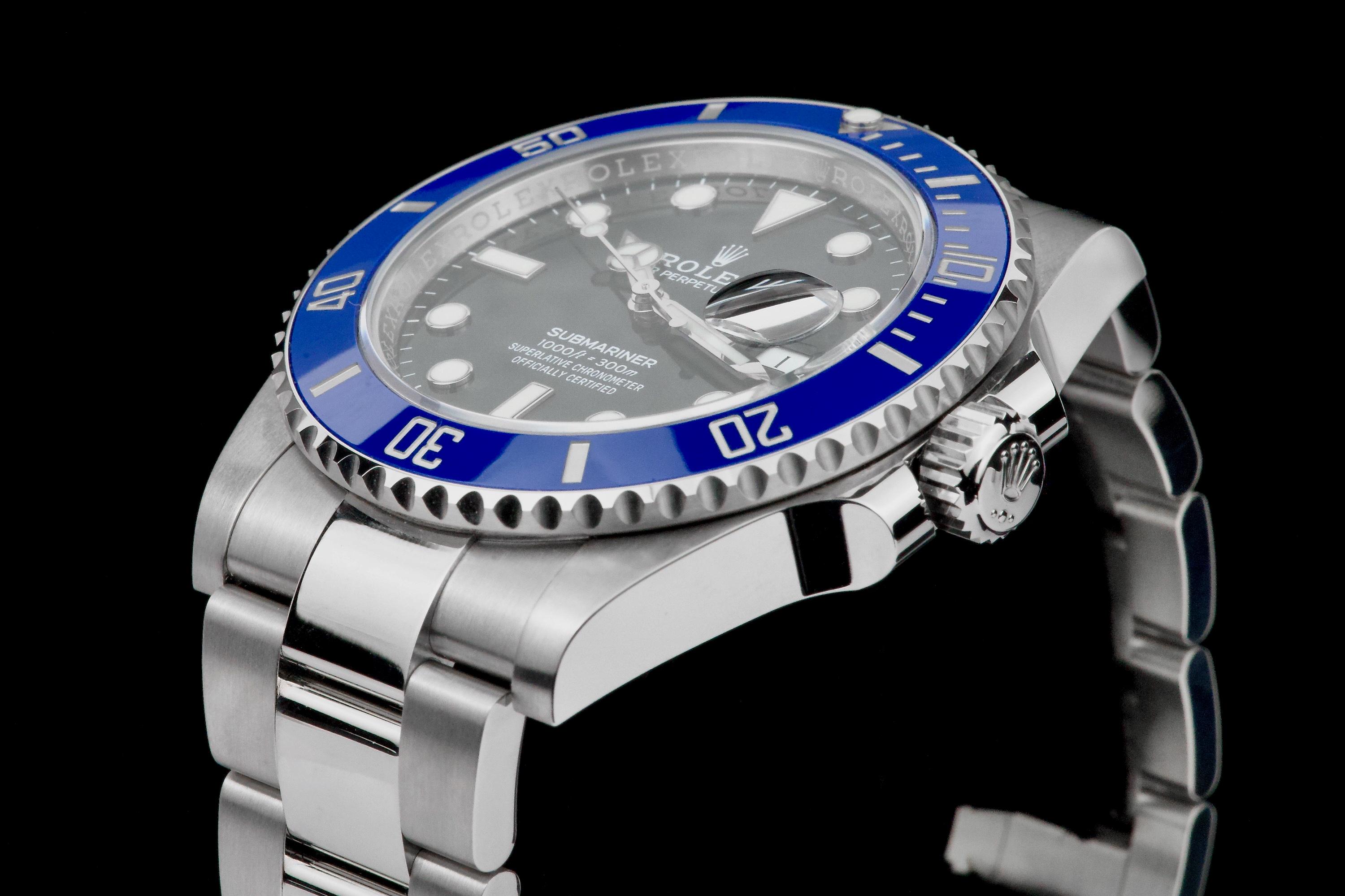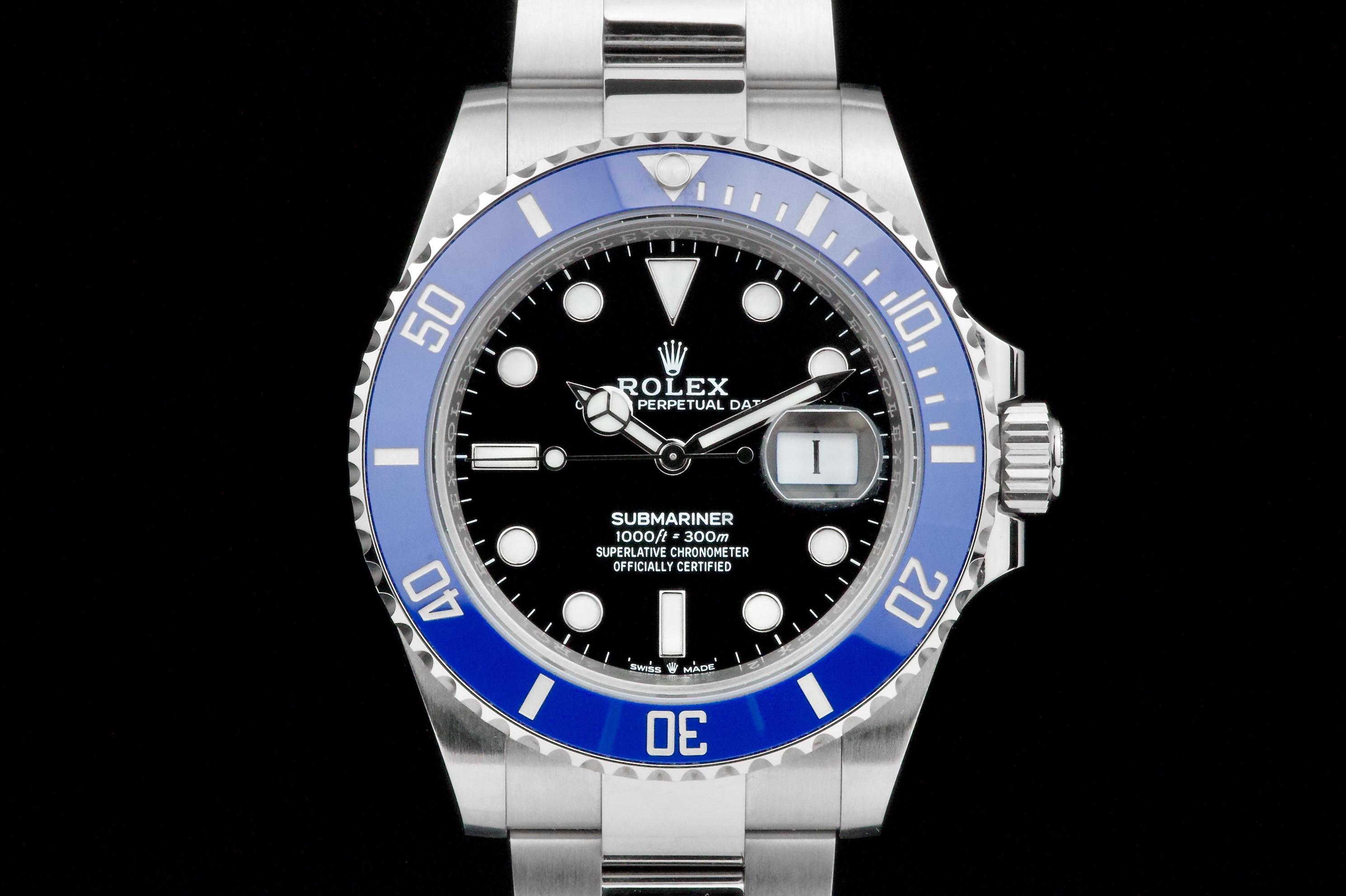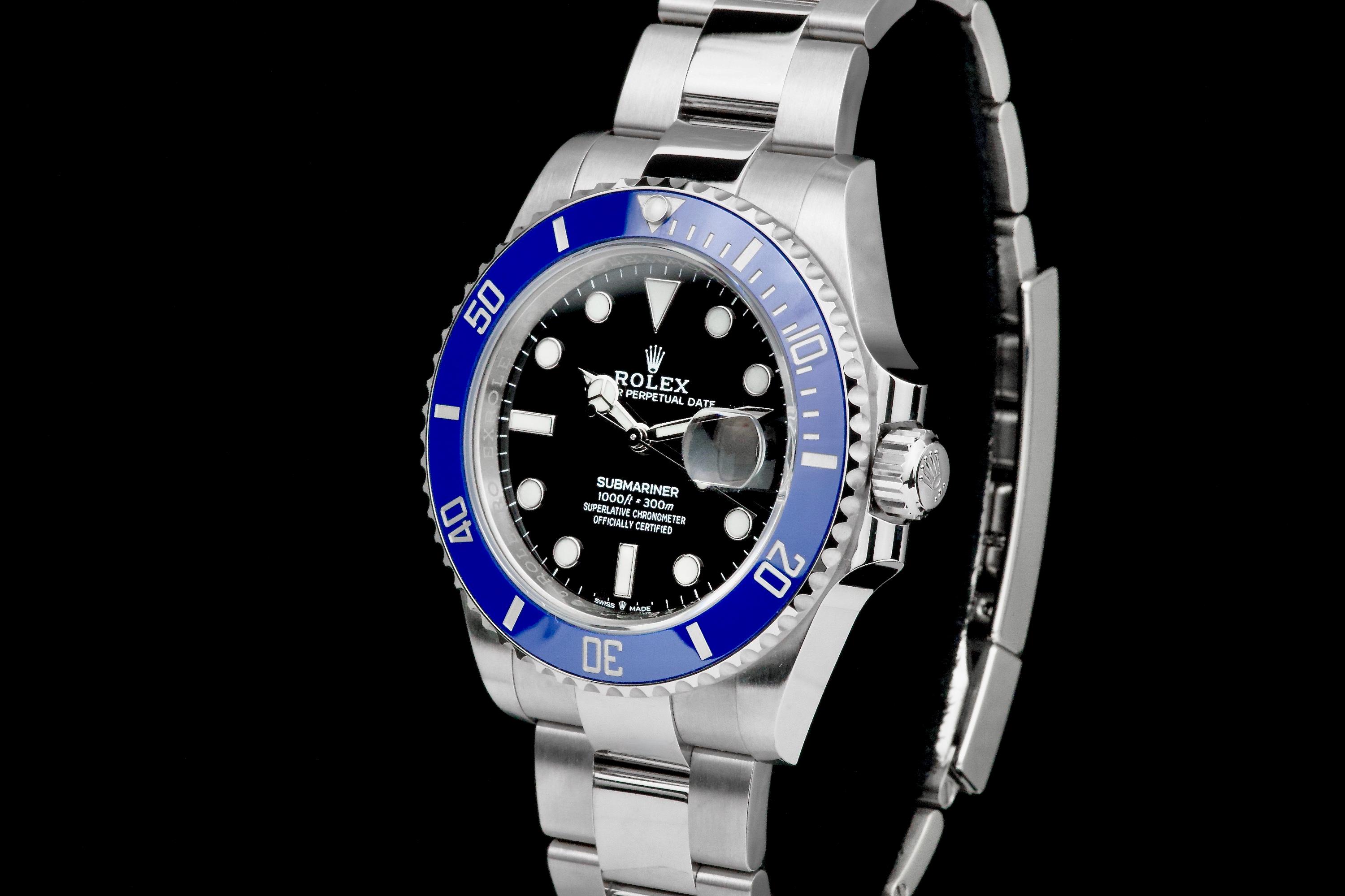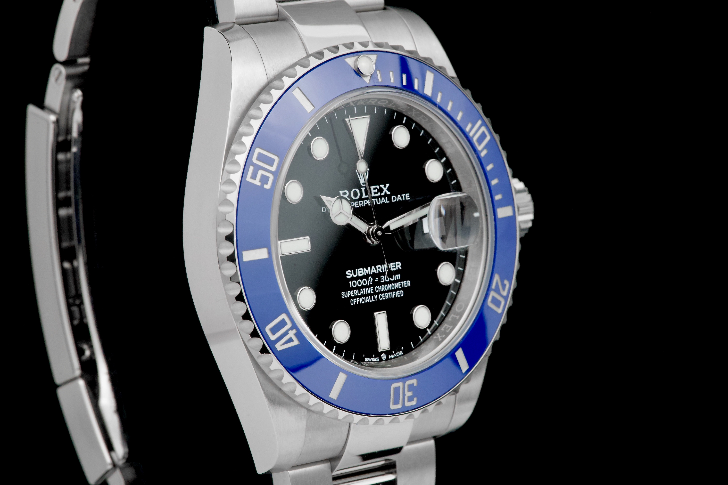 A beautiful example of the white gold Submariner Date 126619LB, coming from its first and only owner. Originally sold by Bucherer Crans-Montana in February 2022, as confirmed by the included Bucherer sales document. The watch has been professionally polished by our watchmaker and is now presented in excellent overall condition. The blue Cerachrom bezel and black dial remain pristine and vibrant. Powered by the automatic Rolex caliber 3235 with 70-hour power reserve and Chronergy escapement, the movement is in perfect working order. The watch comes with its original Rolex box but no warranty card. An elegant and highly desirable version of the modern white gold Submariner, combining exceptional condition, confirmed provenance, and superb wrist presence.