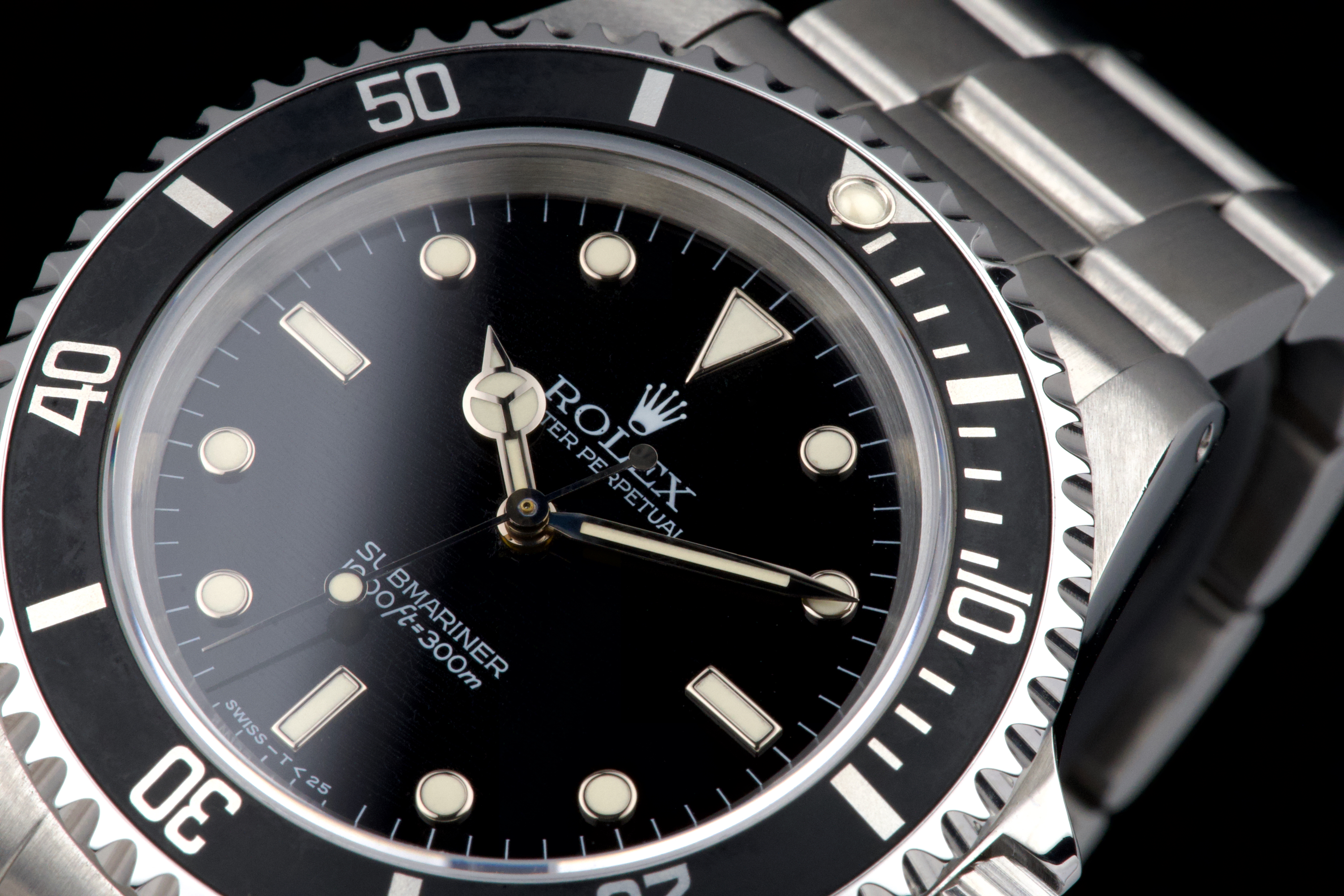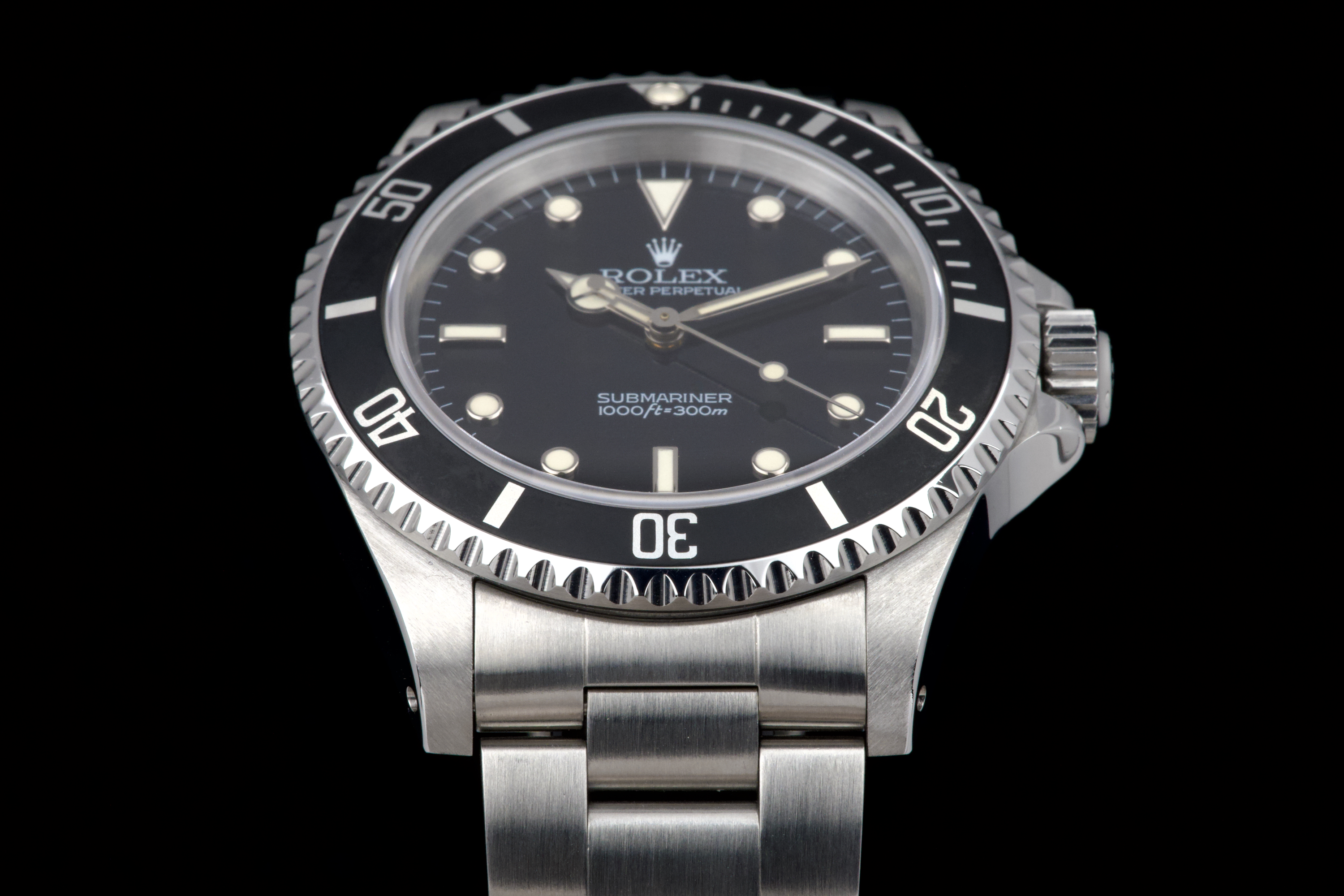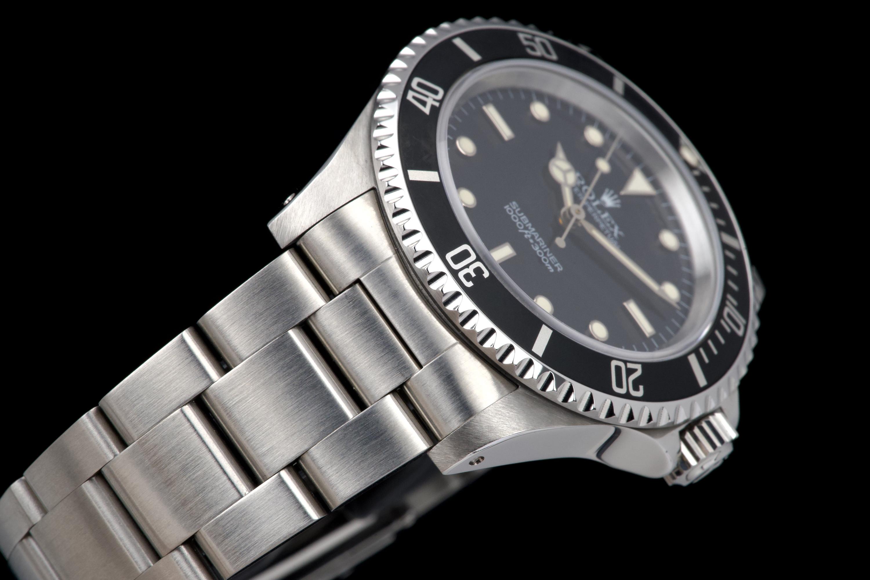 A superb example of the classic Submariner 14060 W Serial, freshly polished and serviced by our watchmaker. The original tritium dial displays a beautiful warm patina on both the hour markers and hands, giving the watch a truly vintage character. The black bezel insert has naturally faded toward a grey tone, adding even more charm to the piece. The original 93150 bracelet with 501B endlinks and claspcode W5 shows almost no stretch, remarkable for a watch from 1995. Delivered as a full set, this is a truly attractive early 14060 — pure, balanced, and full of vintage appeal.