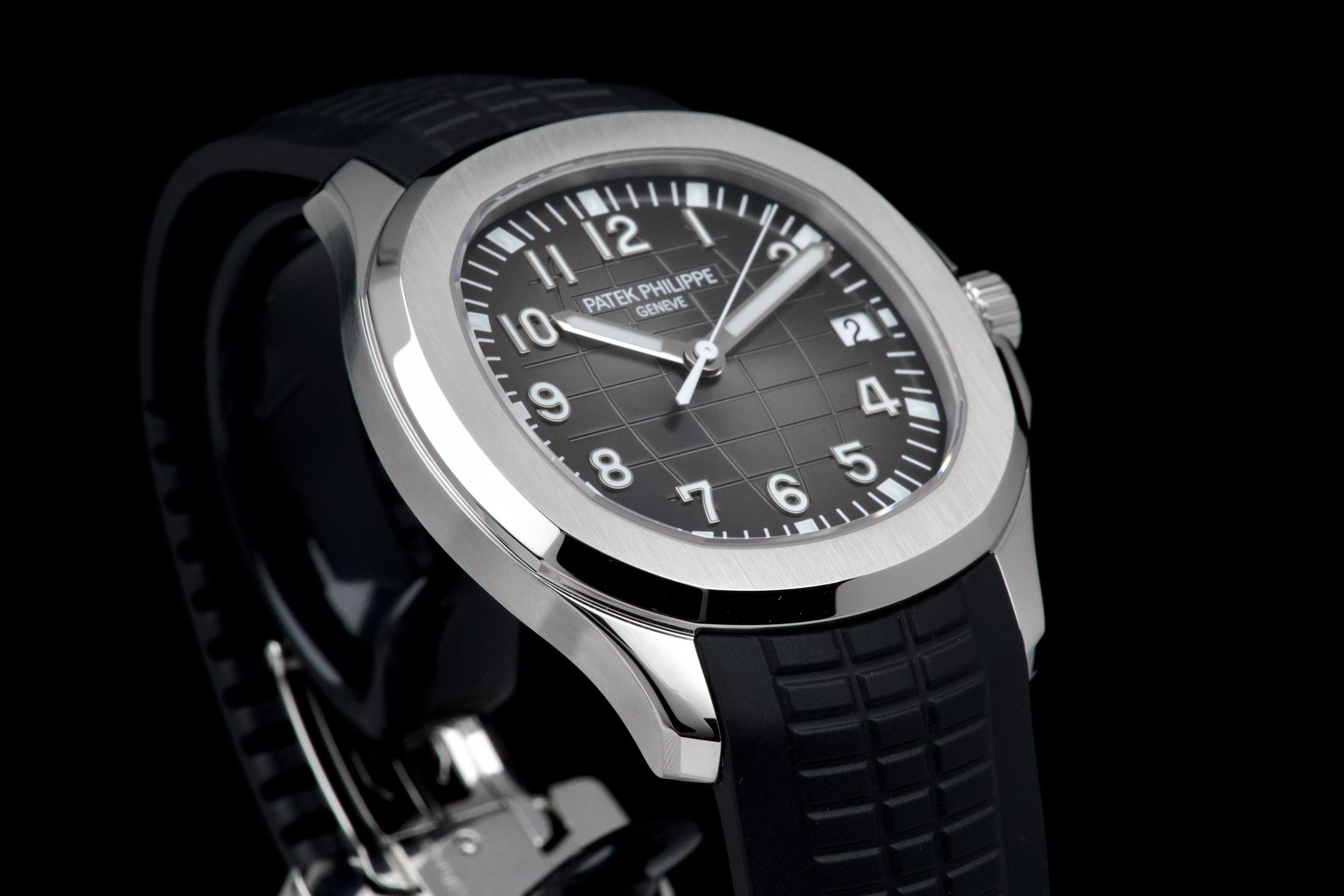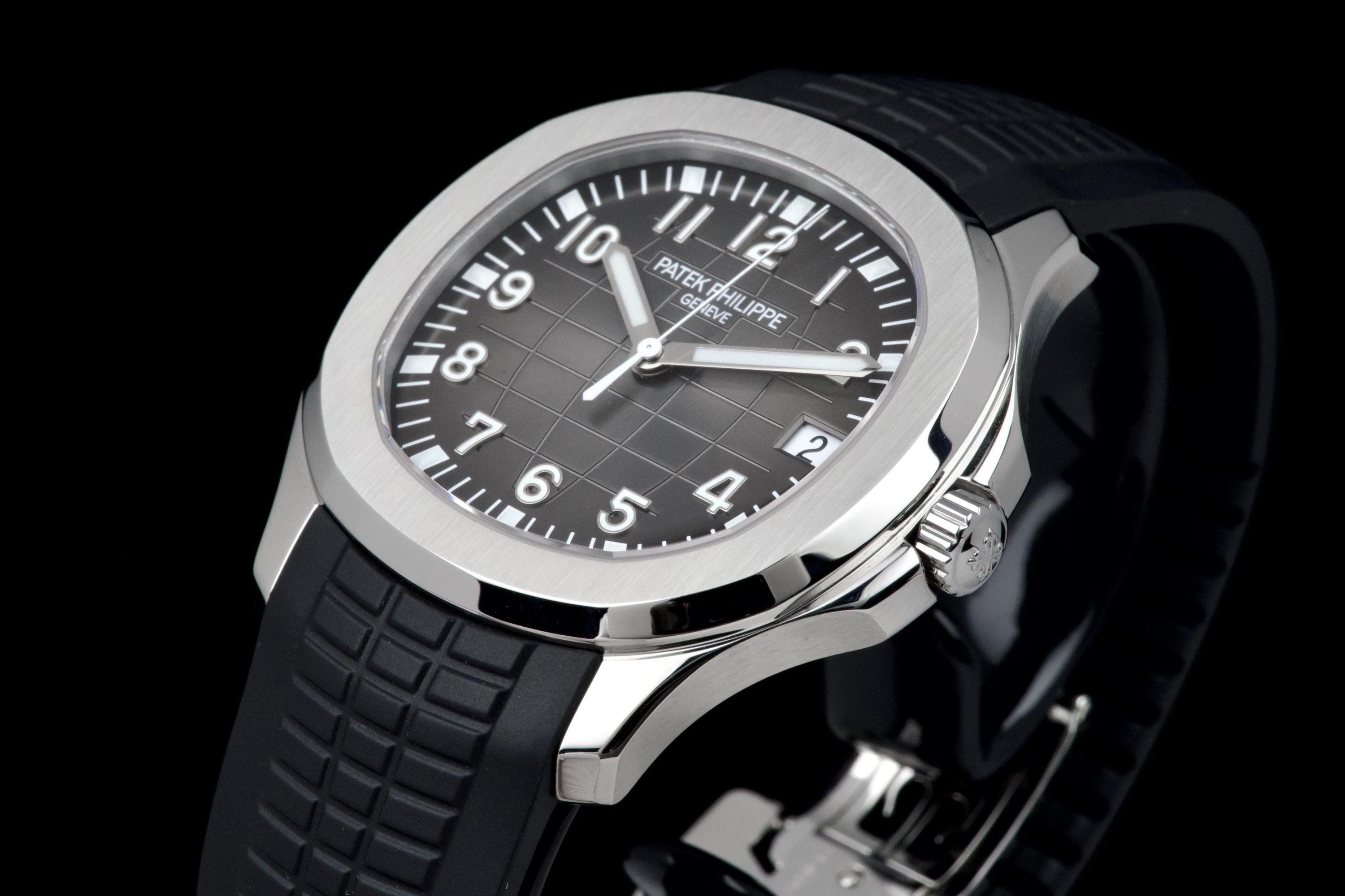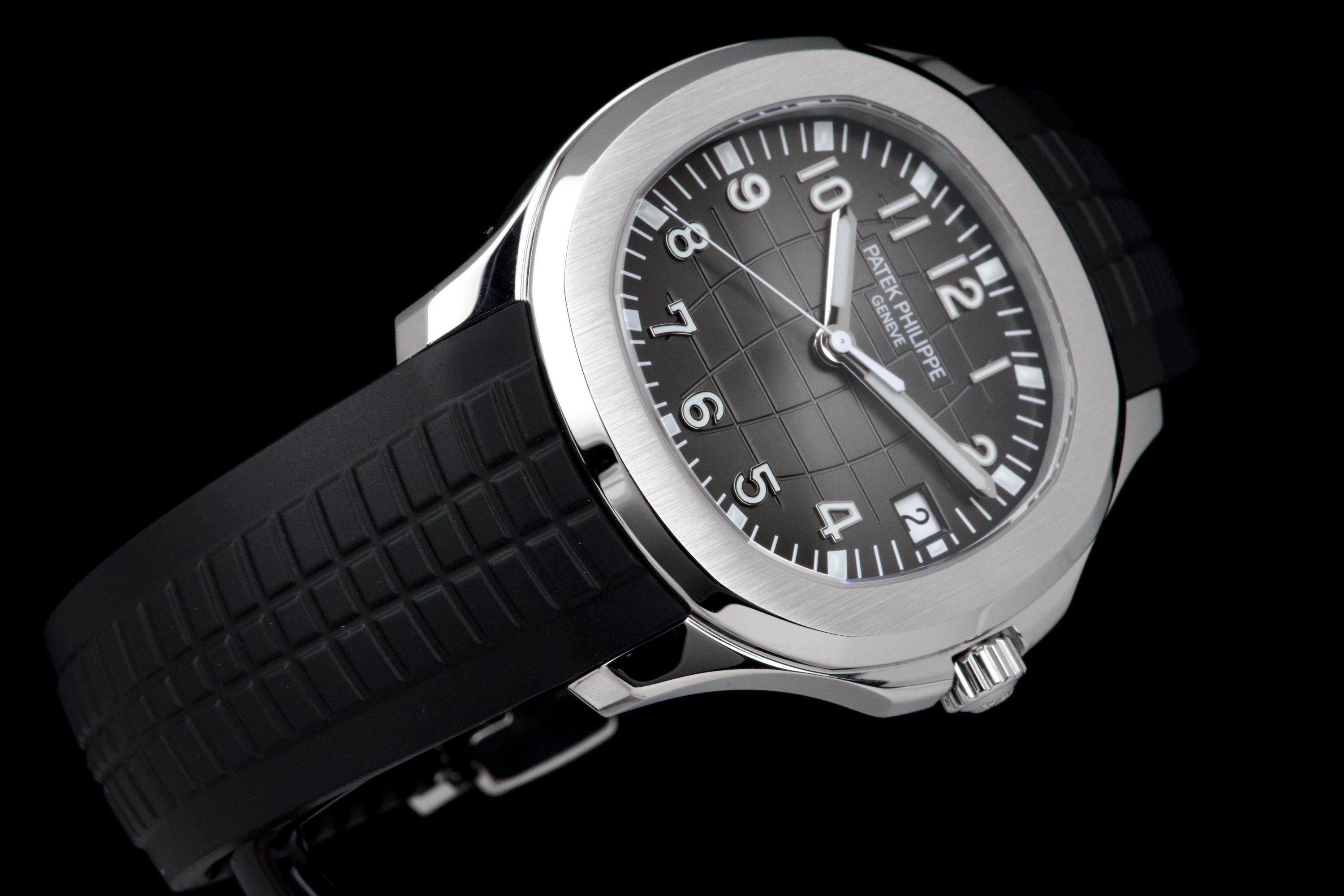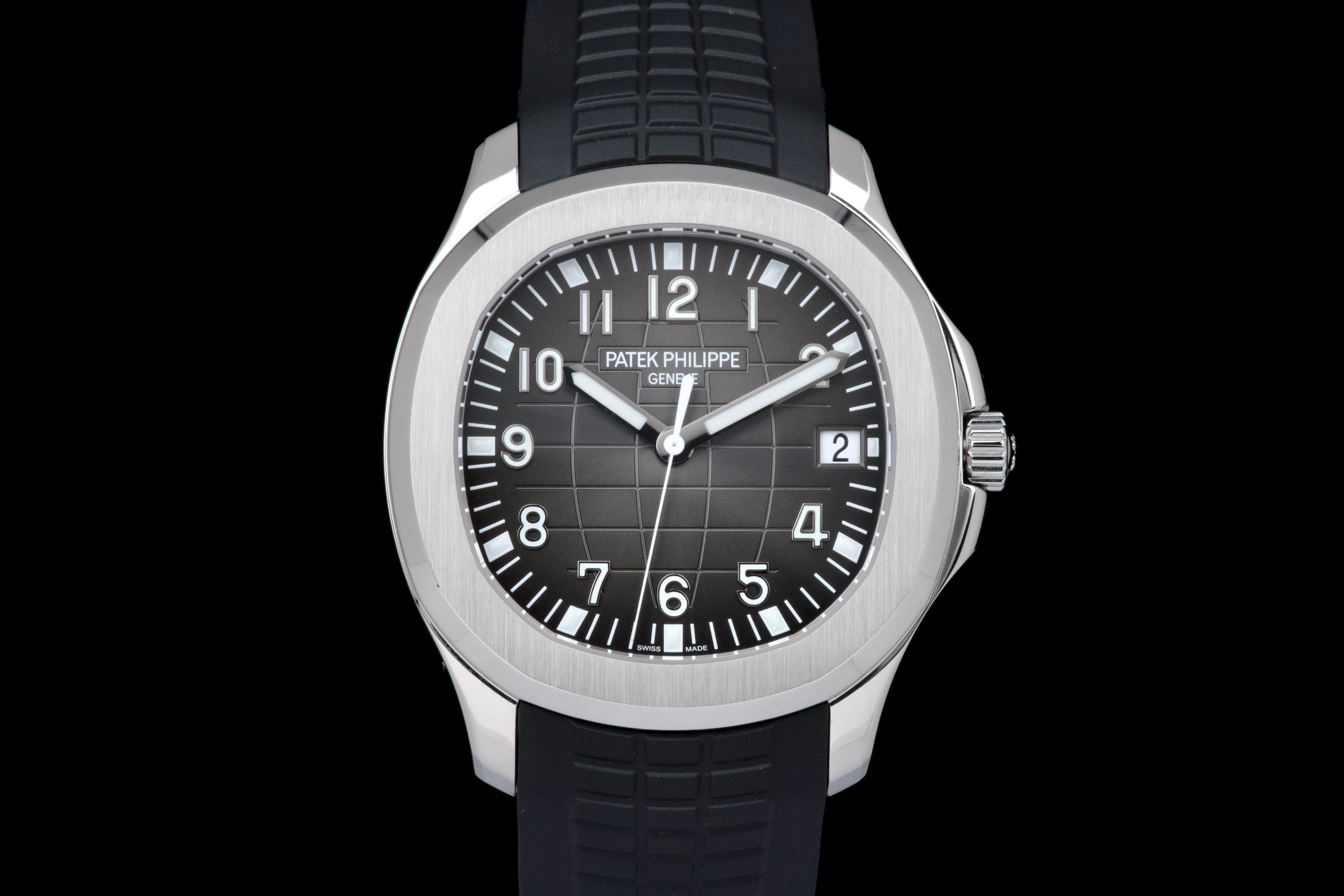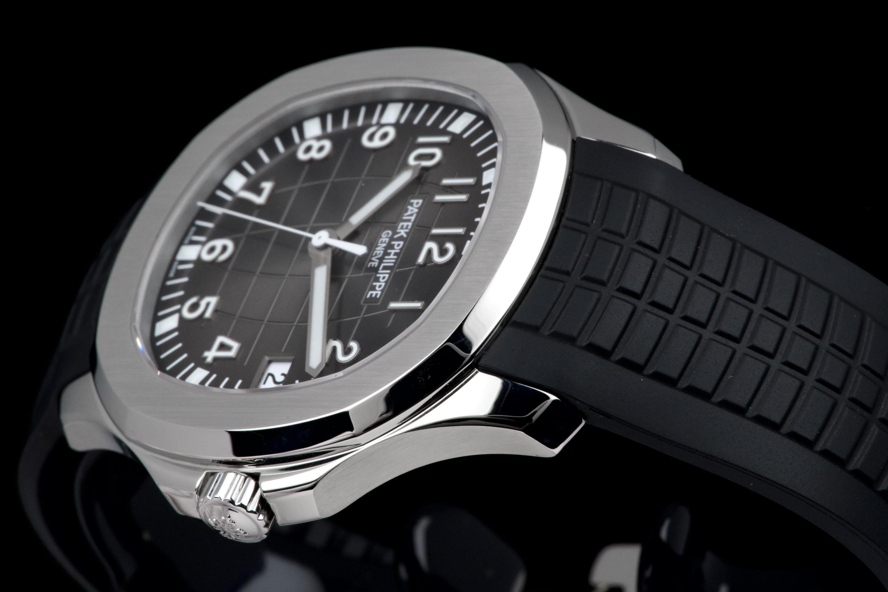 The Patek Philippe Aquanaut reference 5167A-001, one of the brand’s most iconic and sought-after contemporary sport models, is offered here as a complete full set dating to 2026 and presented in unworn condition. The watch features a 40.8 mm stainless steel case with a slim and well-balanced profile, combining sporty character with refined elegance. Its rounded octagonal bezel and alternating polished and satin-brushed finishes create the distinctive aesthetic that defines the Aquanaut collection. It is fitted with the signature black embossed dial with “grenade” pattern, adding depth and texture while maintaining excellent legibility, complemented by applied Arabic numerals and luminescent hands, as well as a date display at 3 o’clock. Powered by the in-house automatic calibre 26-330 SC, the watch delivers reliable and precise performance in line with Patek Philippe’s exacting standards. It is presented on its original black composite “Tropical” strap, offering exceptional comfort and durability. Preserved in like-new, unworn condition, this Aquanaut is offered with its full original set including box, warranty papers, and accessories, representing an outstanding opportunity to acquire a highly desirable modern Patek Philippe in pristine condition.
