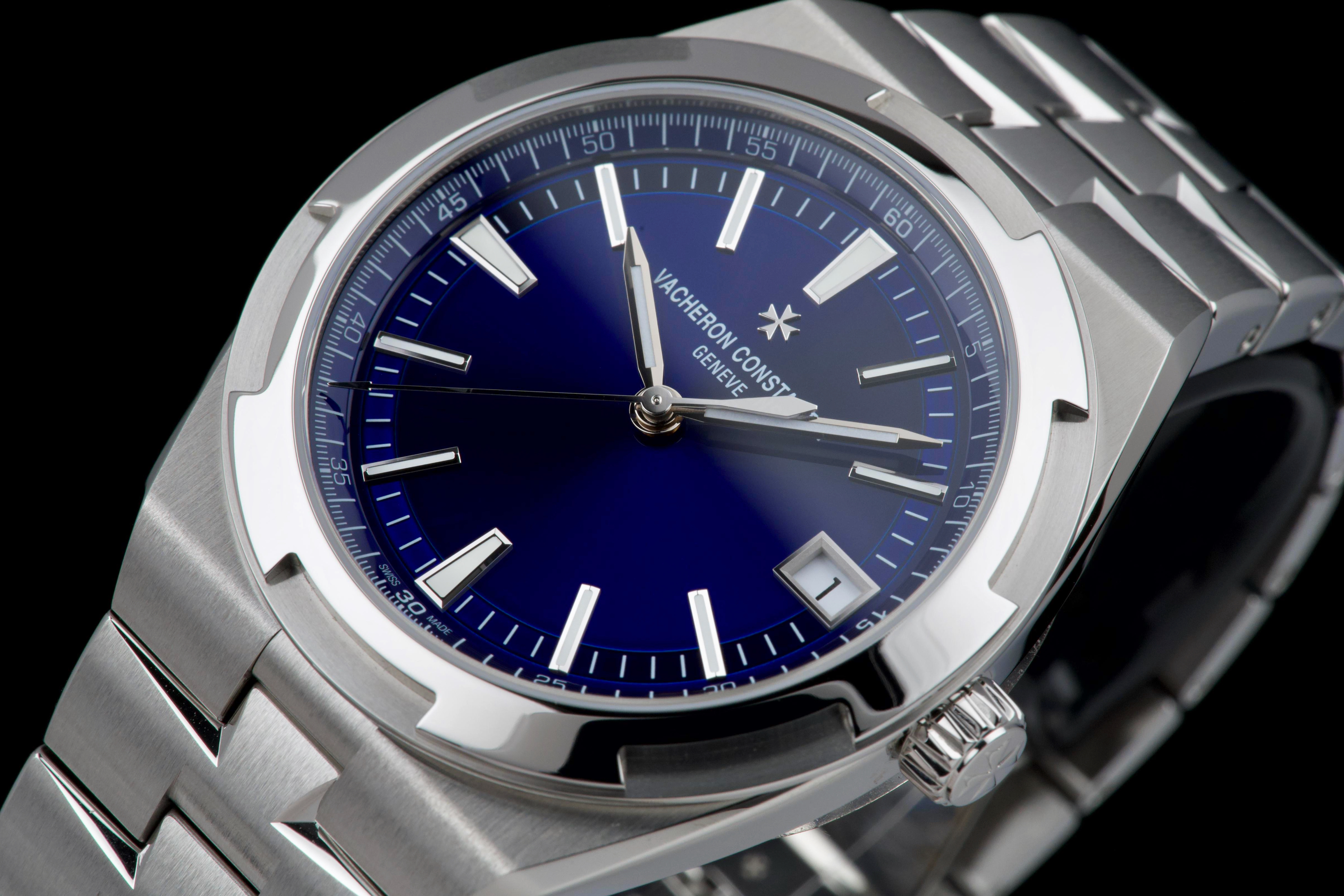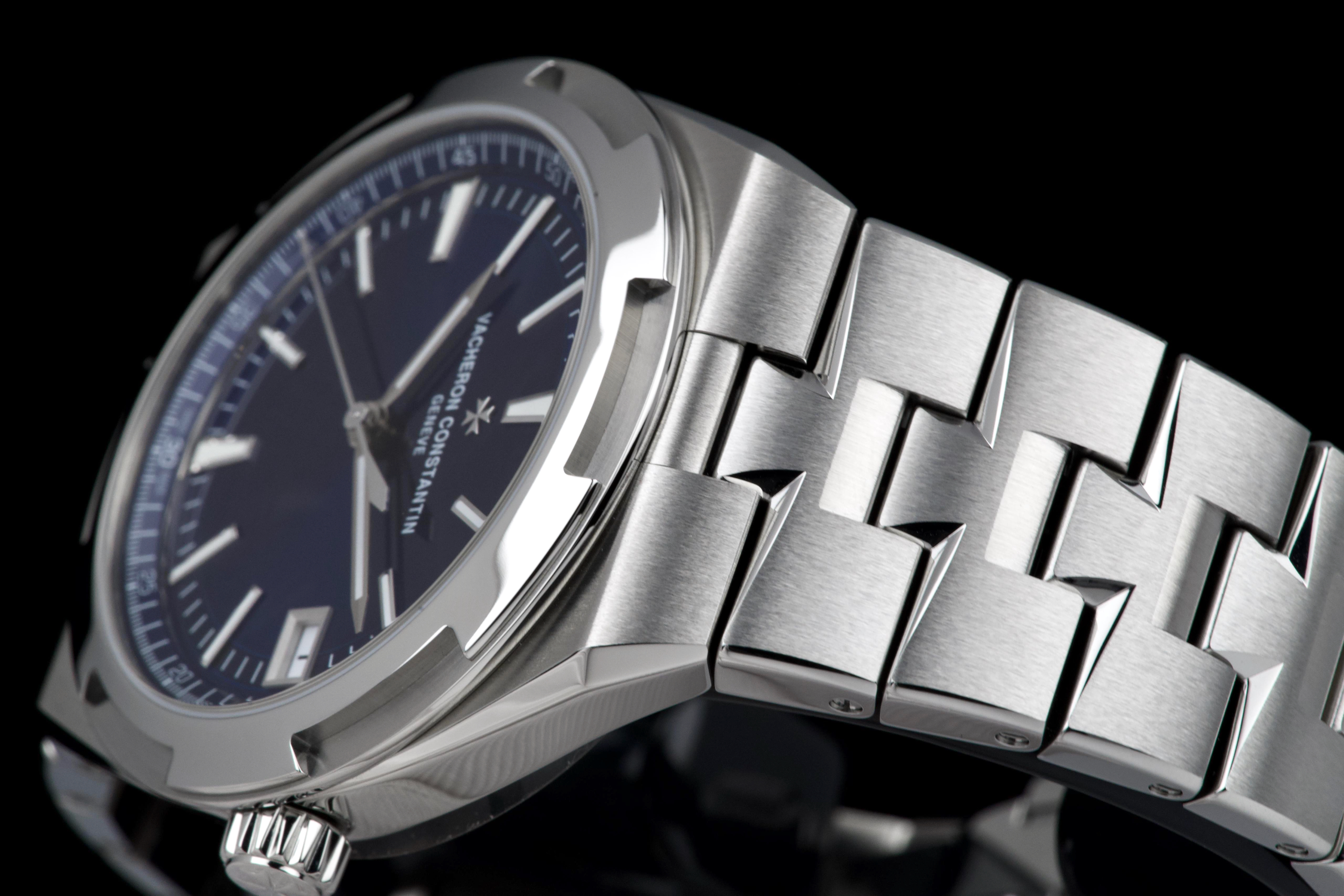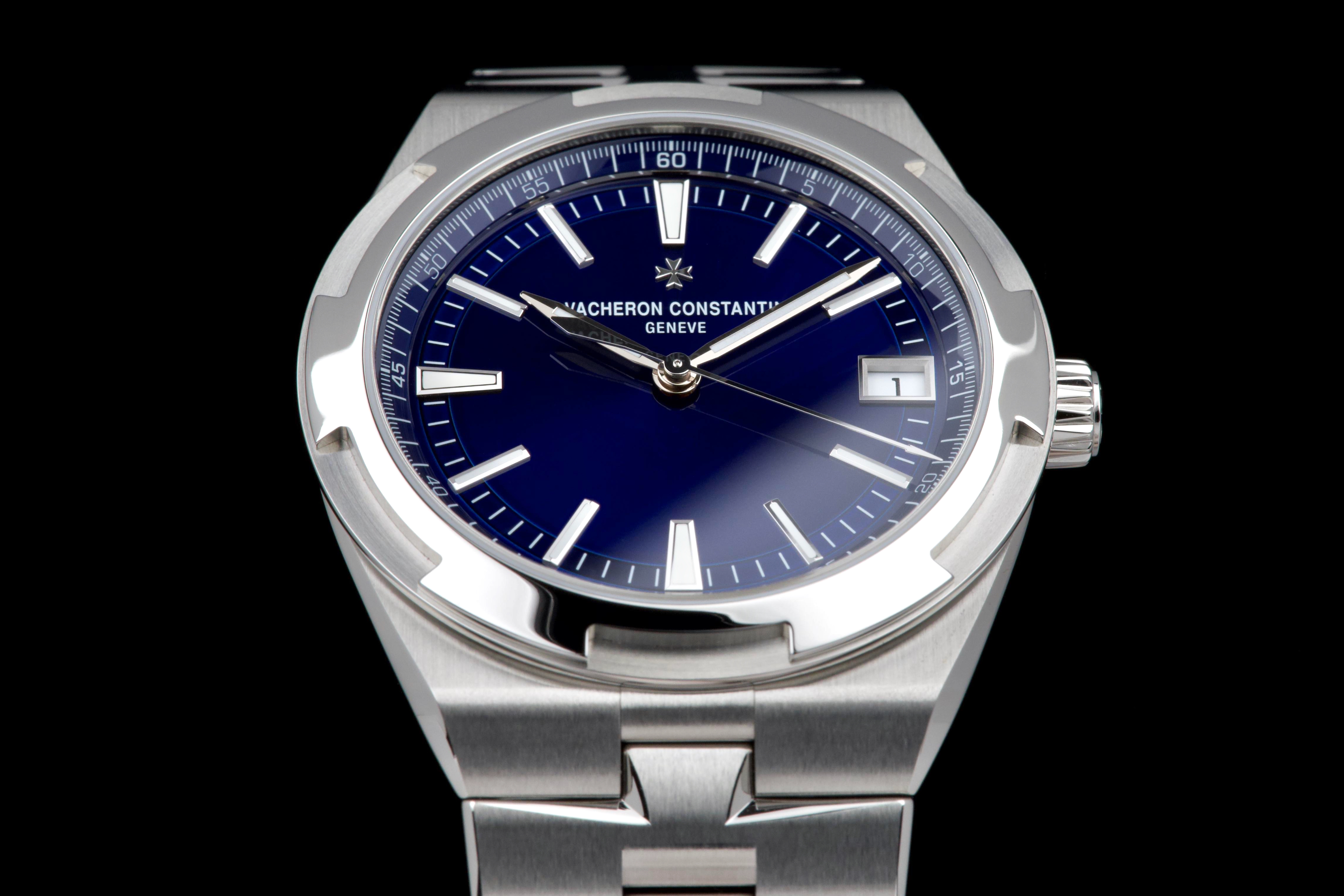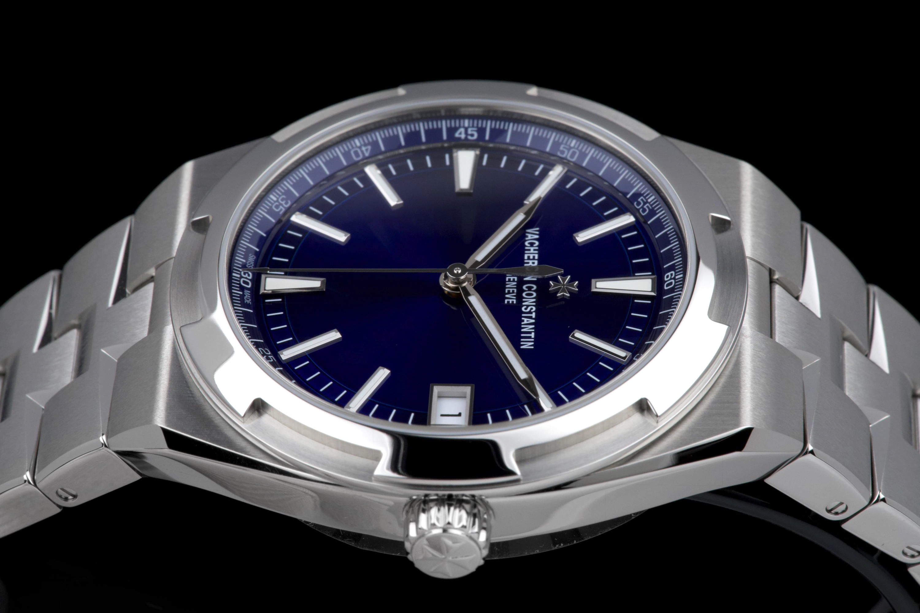 The present Vacheron Constantin Overseas reference 4520V/210A-B128, fitted with the highly desirable blue dial, dates to 2026 and is offered here as a complete full set in unworn condition. Representing the latest evolution of the Overseas collection, this reference features a 41 mm stainless-steel case with the signature Maltese cross–inspired bezel and beautifully executed alternating brushed and polished finishes. The case and integrated bracelet remain pristine, reflecting its untouched state. The vibrant sunburst blue dial, one of the most sought-after configurations within the Overseas range, offers remarkable depth and clarity, with applied hour markers and luminous hands ensuring excellent legibility. The watch is powered by Vacheron Constantin’s in-house automatic calibre 5100, delivering robust performance, refined finishing, and a comfortable power reserve. Delivered as a full set from 2026 and preserved in unworn condition, this Overseas 4520V represents an outstanding opportunity to acquire a current-production Vacheron Constantin sports model in immaculate state, combining modern engineering, timeless design, and strong collector appeal.