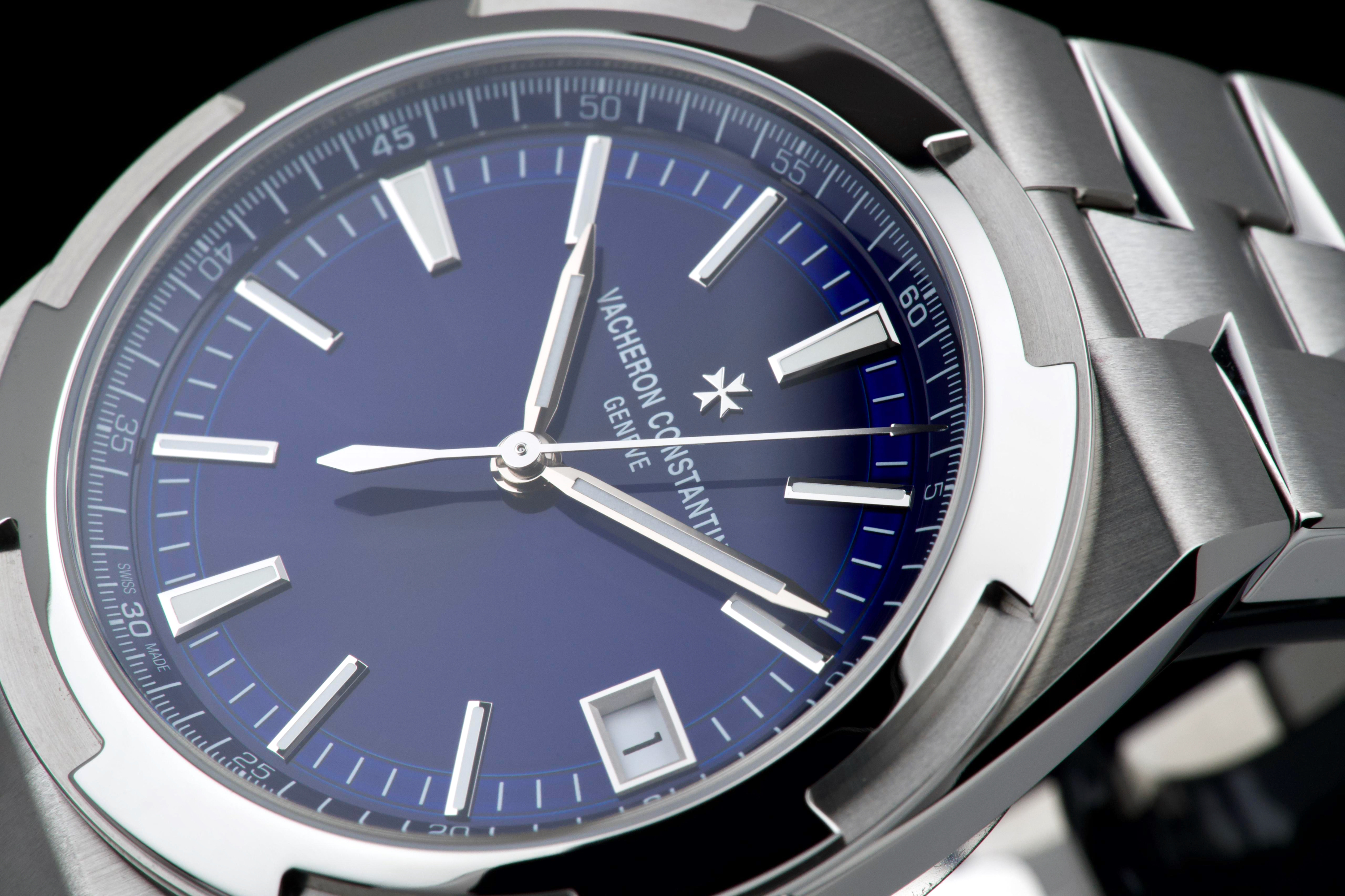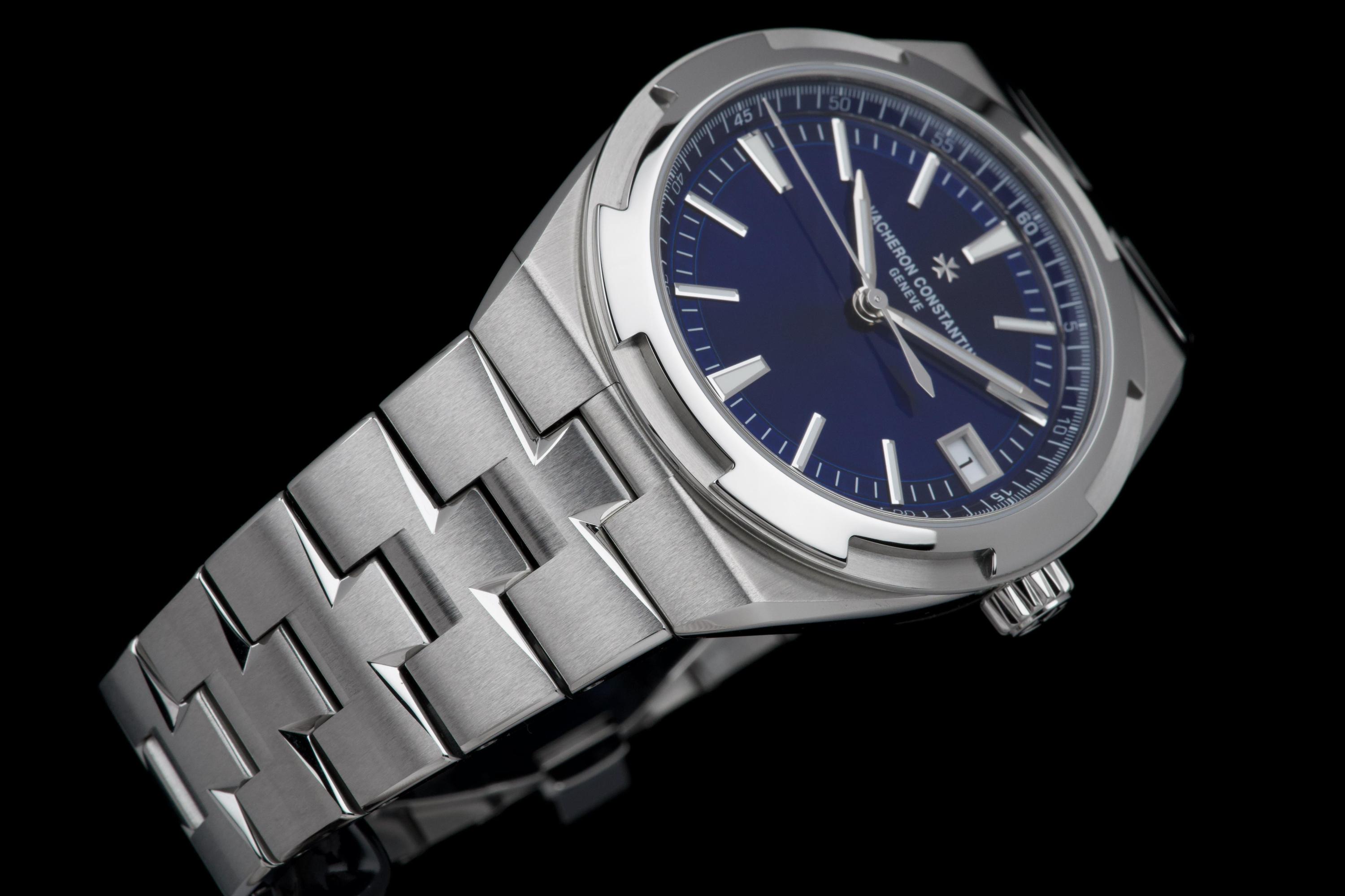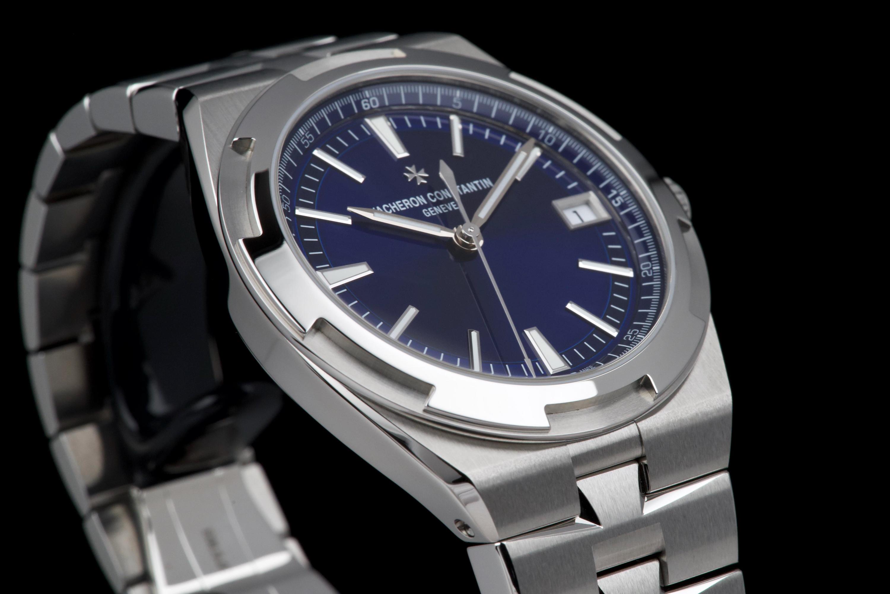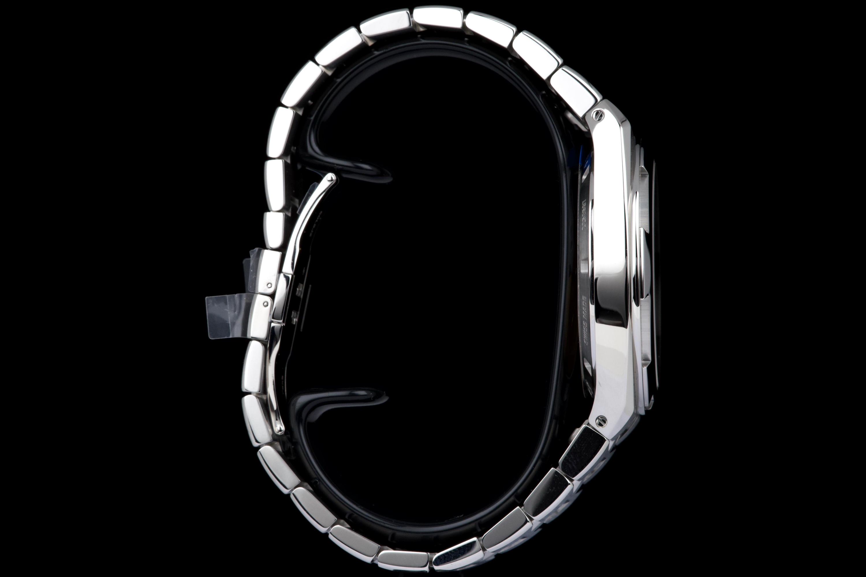 The present Vacheron Constantin Overseas reference 4520V/210A-B128, fitted with the highly desirable blue dial, dates to 2026 and is offered here as a complete full set in unworn condition. Representing the latest evolution of the Overseas collection, this reference features a 41 mm stainless-steel case with the signature Maltese cross–inspired bezel and beautifully executed alternating brushed and polished finishes. The case and integrated bracelet remain pristine, reflecting its untouched state. The vibrant sunburst blue dial, one of the most sought-after configurations within the Overseas range, offers remarkable depth and clarity, with applied hour markers and luminous hands ensuring excellent legibility. The watch is powered by Vacheron Constantin’s in-house automatic calibre 5100, delivering robust performance, refined finishing, and a comfortable power reserve. Delivered as a full set from 2026 and preserved in unworn condition, this Overseas 4520V represents an outstanding opportunity to acquire a current-production Vacheron Constantin sports model in immaculate state, combining modern engineering, timeless design, and strong collector appeal.